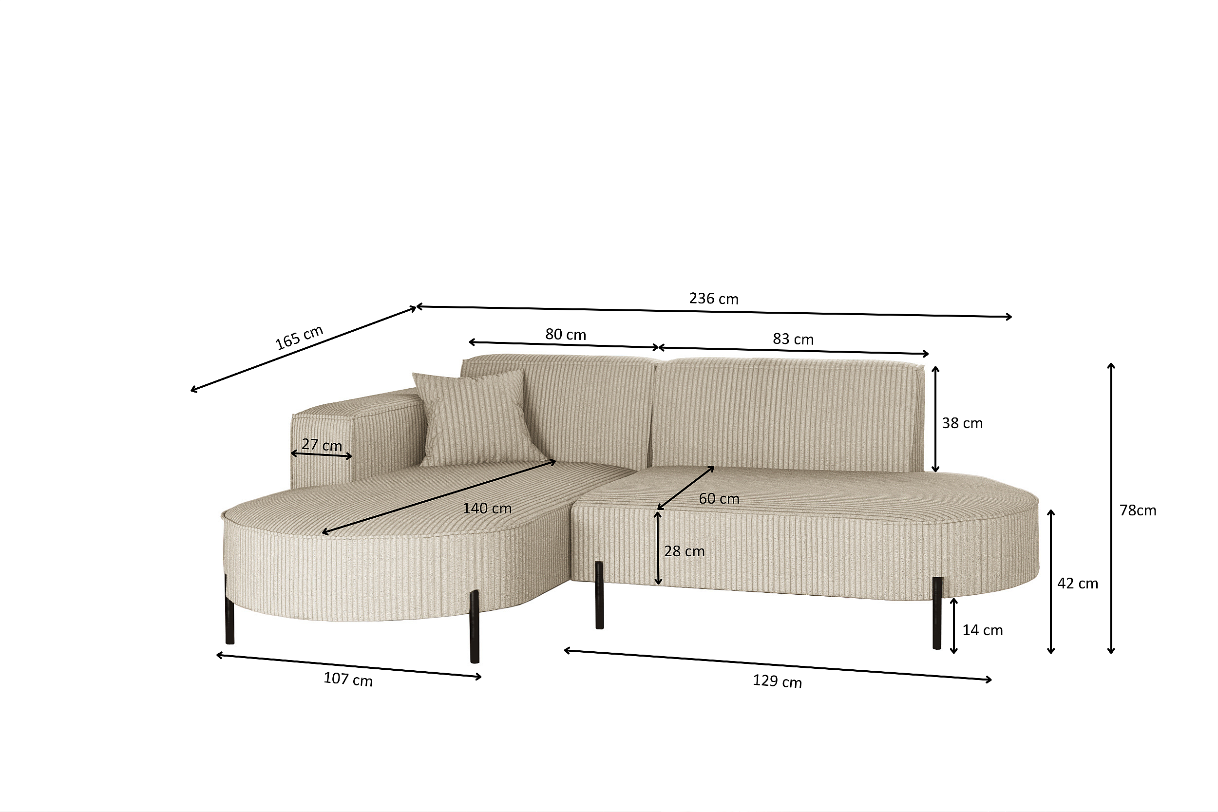 Ecksofa, Sofa L-Form Designer Modena Rein stoff Poso Beige Links