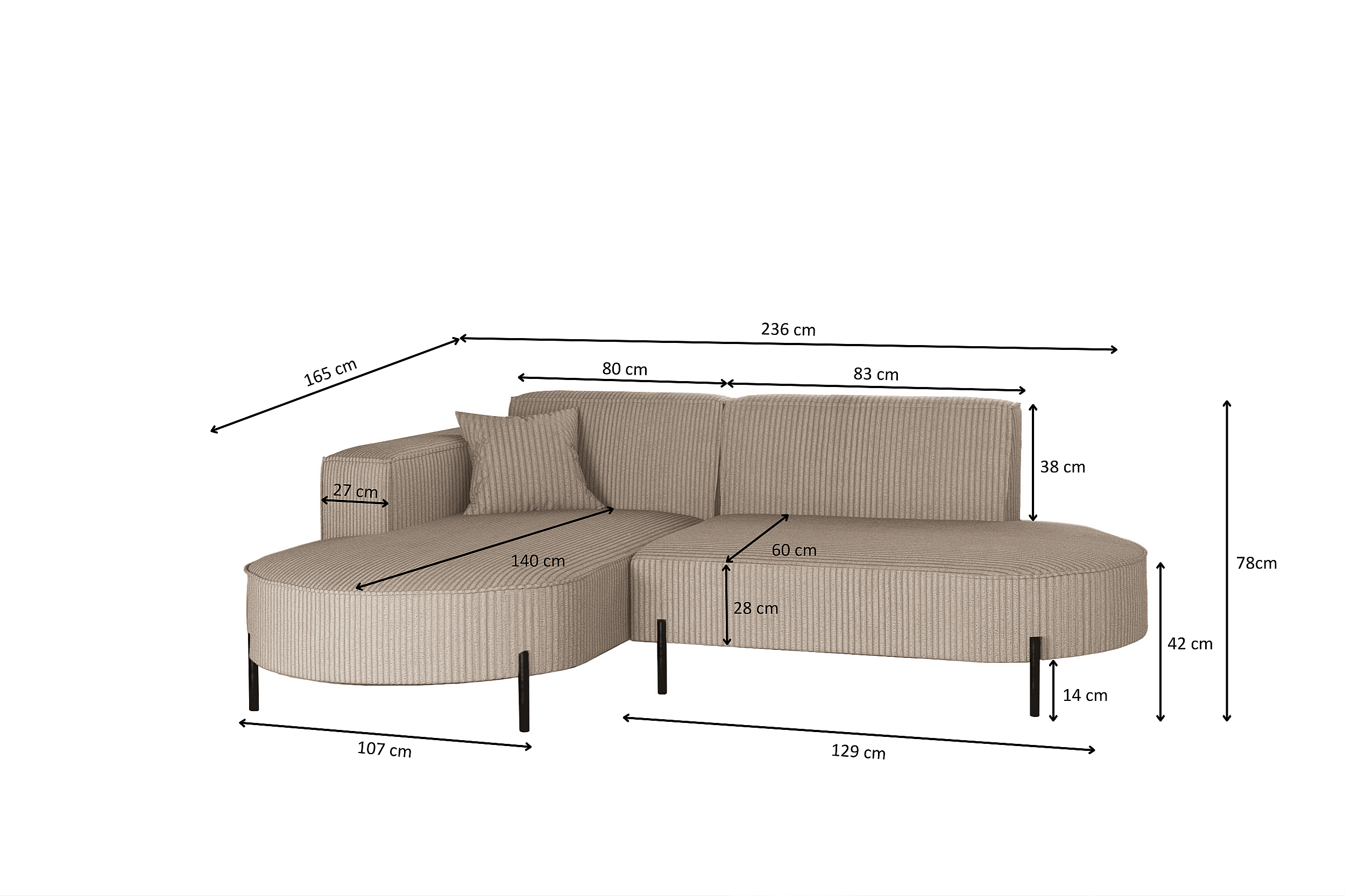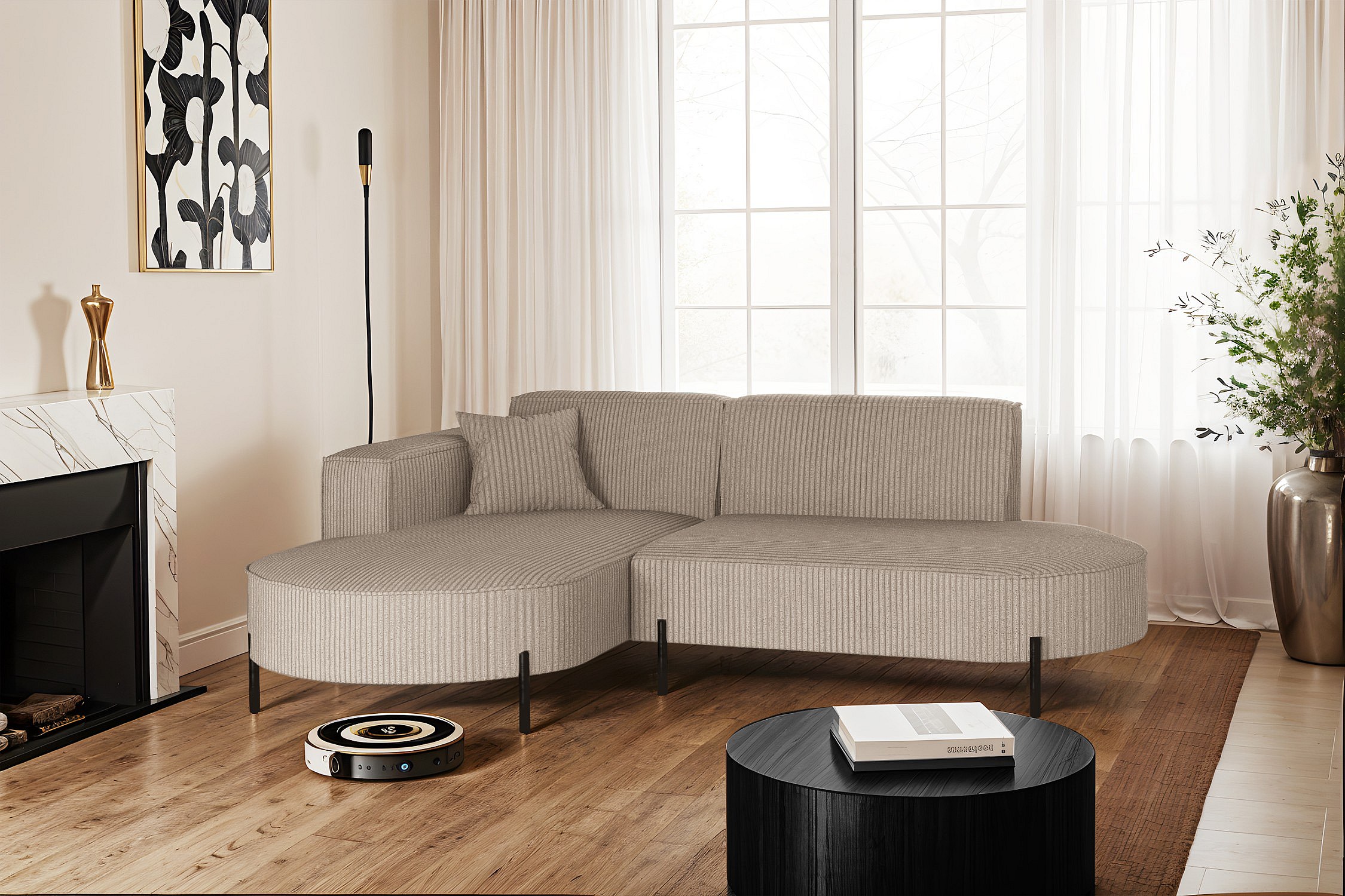 Ecksofa, Sofa L-Form Designer Modena Rein stoff Poso Dunkelbeige Links