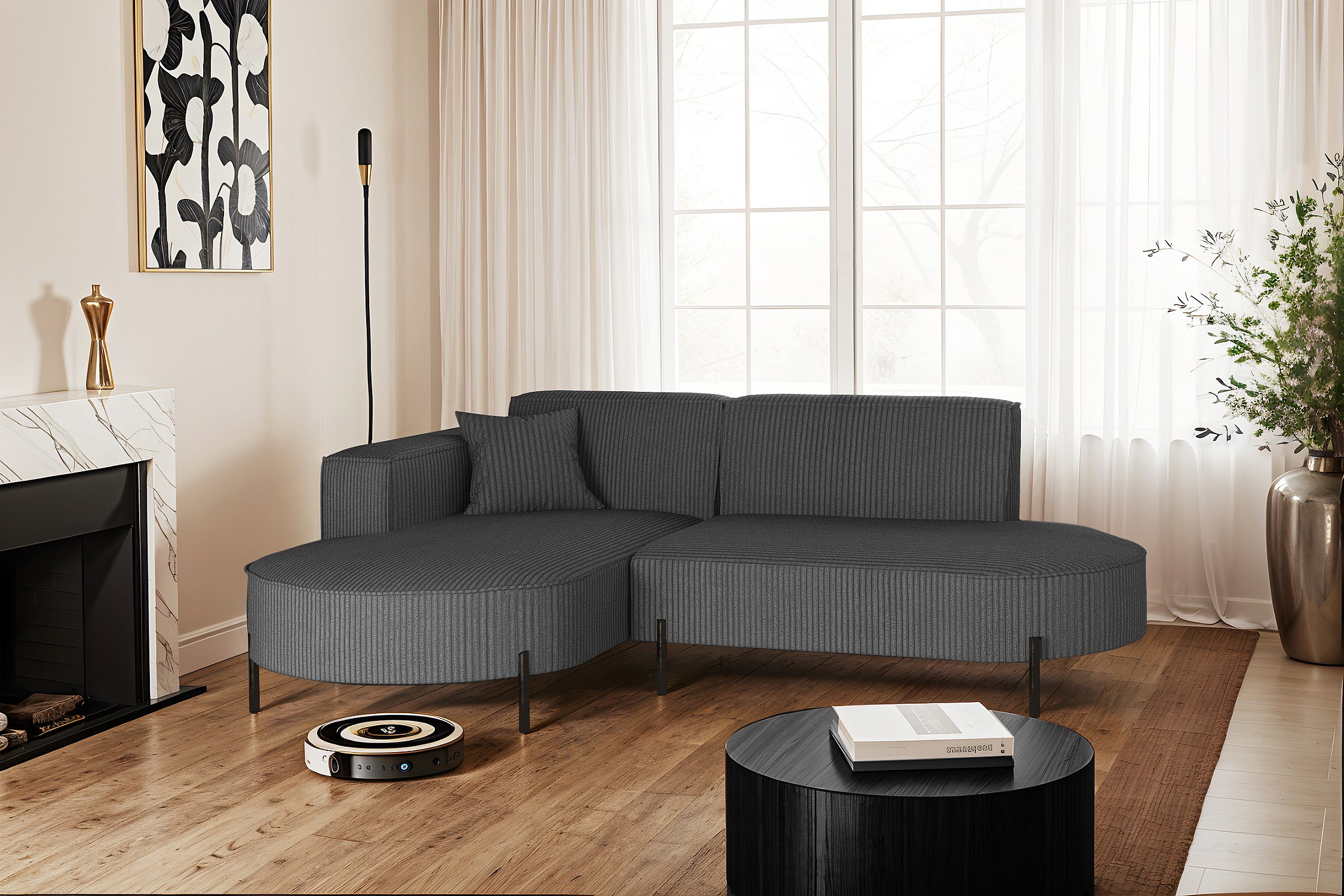 Ecksofa, Sofa L-Form Designer Modena Rein stoff Poso Graphit Links