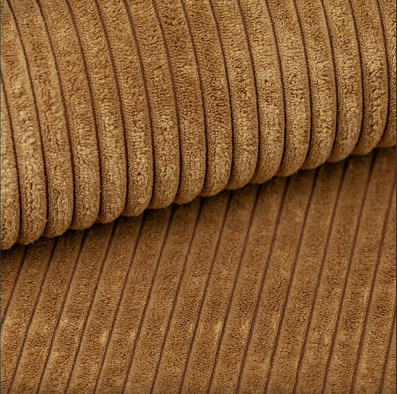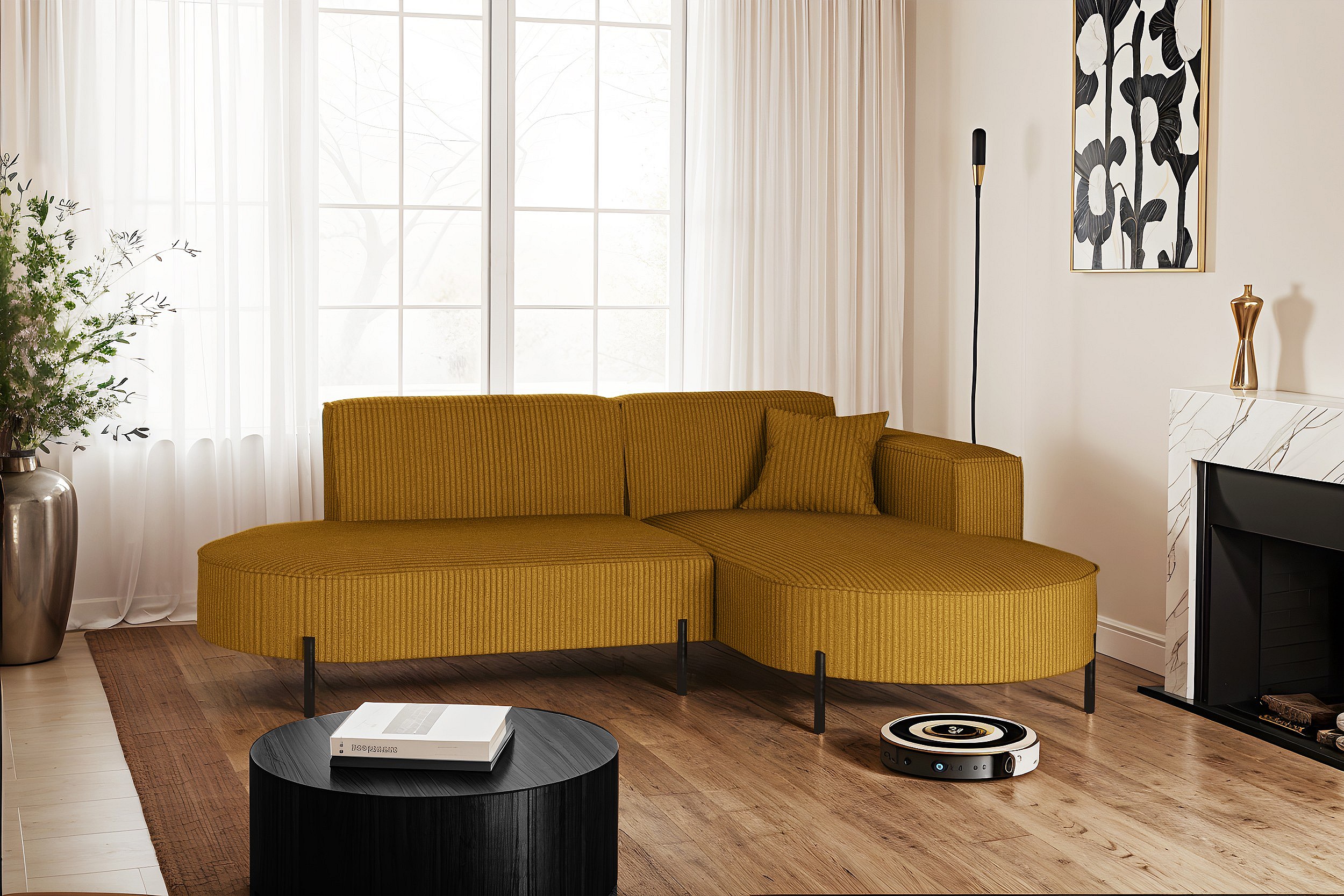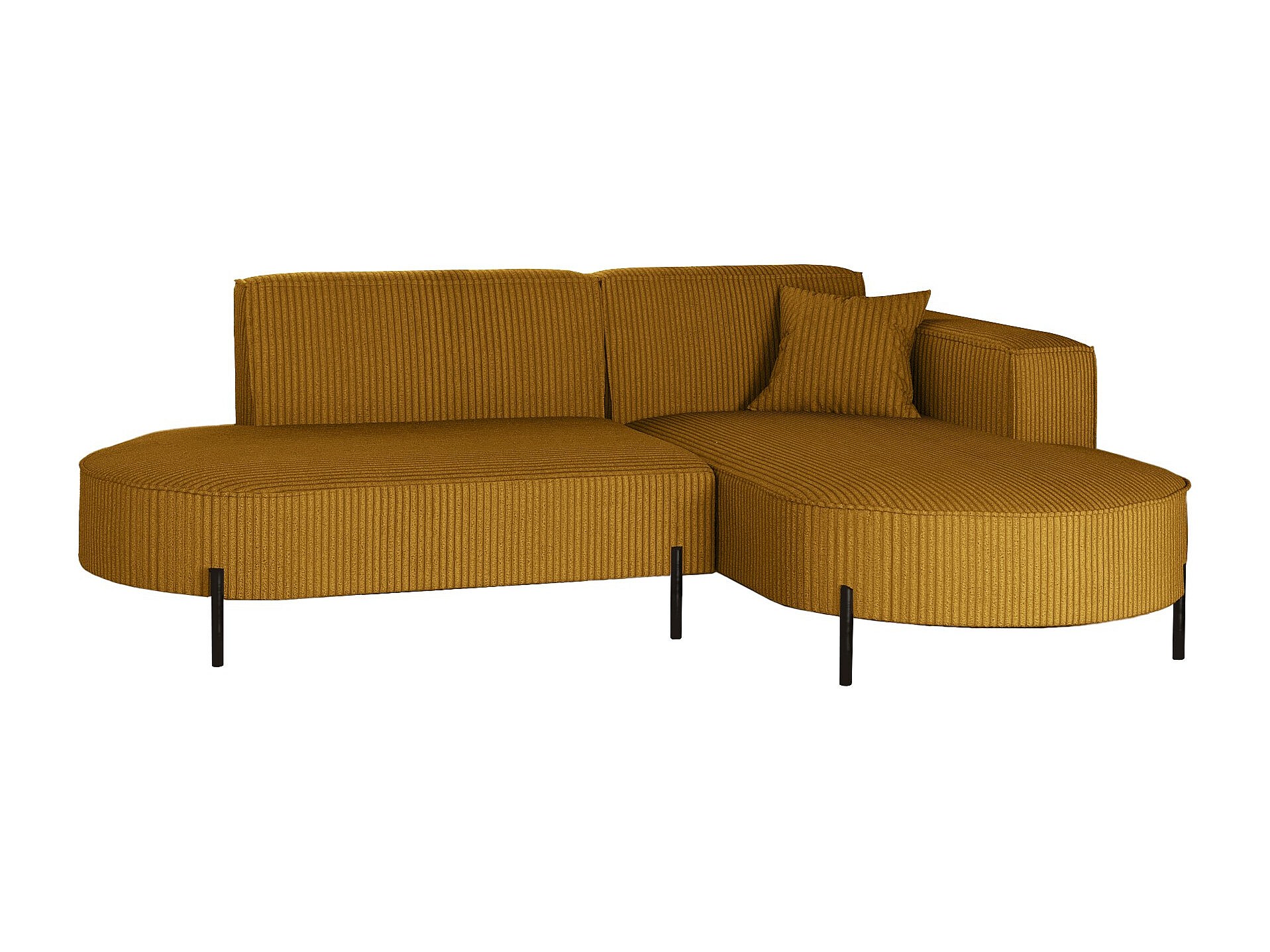 Ecksofa, Sofa L-Form Designer Modena Rein stoff Poso Senffarbe Rechts