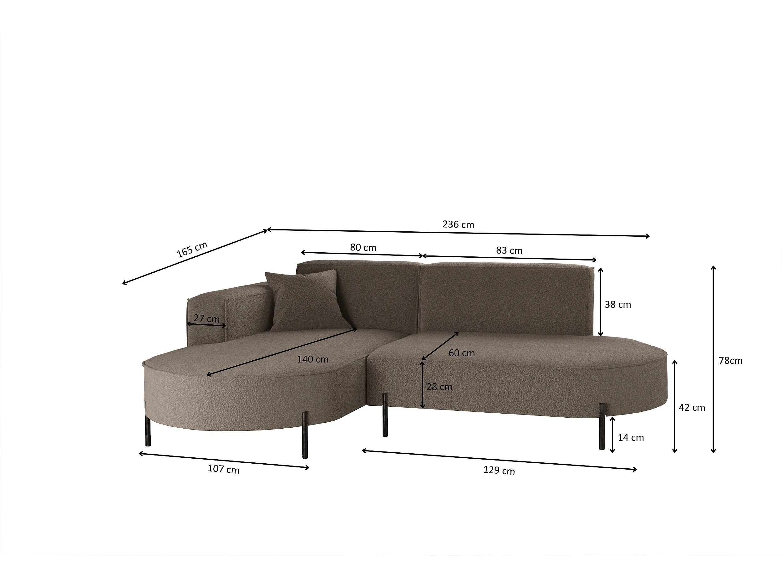 Ecksofa, Sofa L-Form Designer Modena Rein stoff Quelle Braun Links