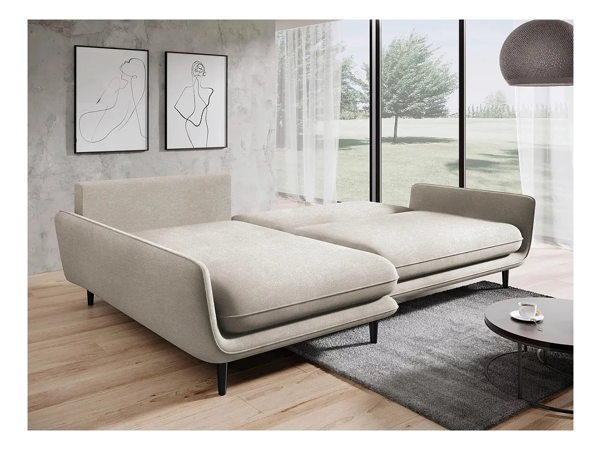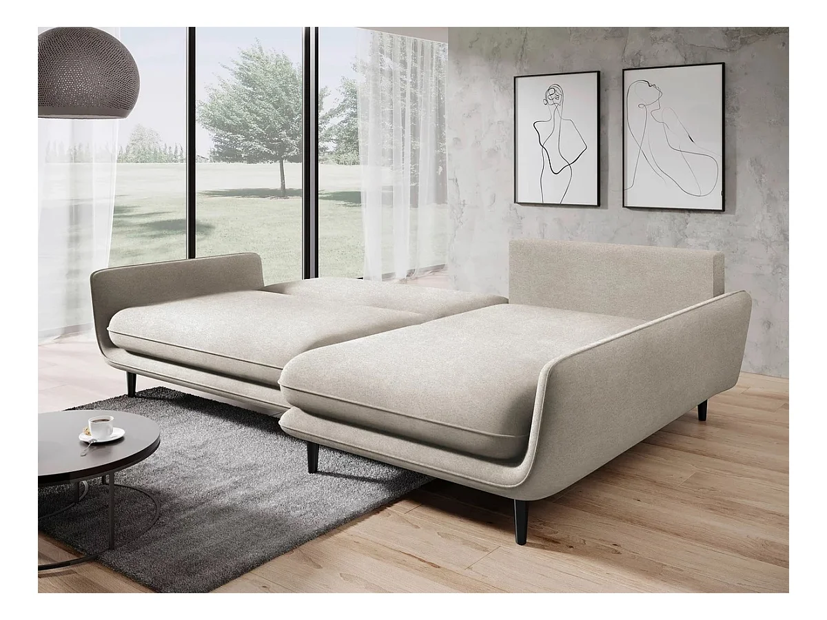 Ecksofa SOLANO mit Bettfunktion - Elegantes skandinavisches Sofa 260x167 cm, Bettkasten und Füße aus Holz, Farbe Weiß, Links
