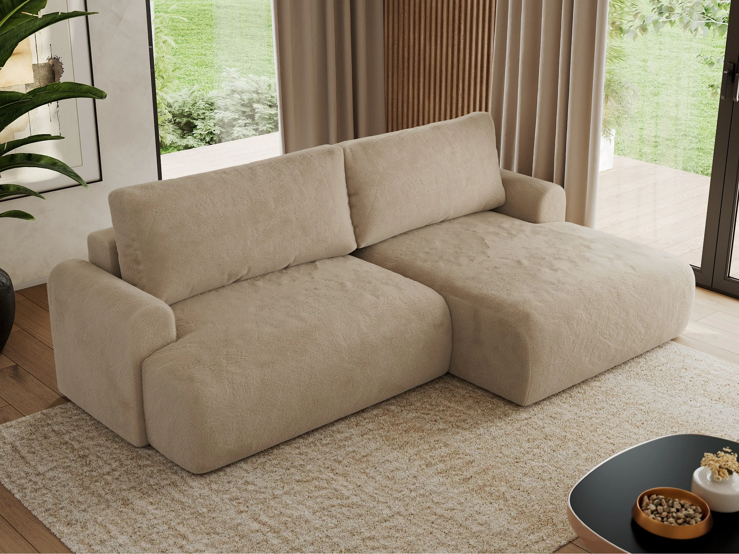 Ecksofa TONO - mit Schlaffunktion und Bettkasten, L-form Ecke, Armlehnen - Beige Plüsch - Ecke Rechts