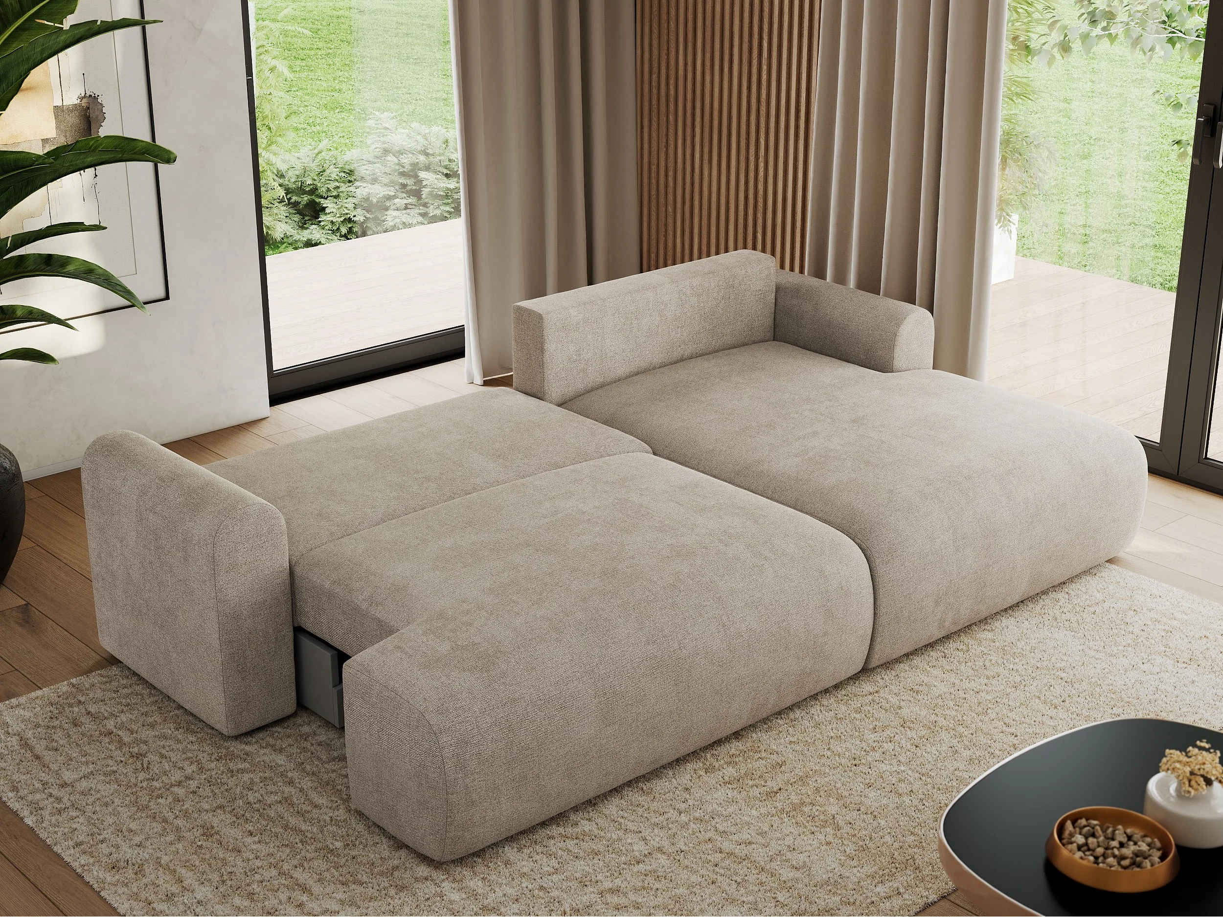 Ecksofa TONO - mit Schlaffunktion und Bettkasten, L-form Ecke, Armlehnen - Beige Struktur - Ecke Rechts