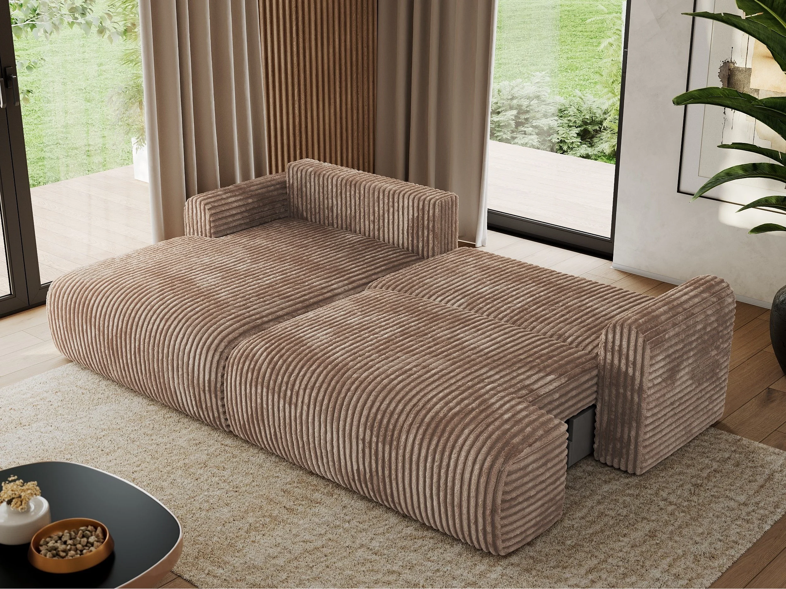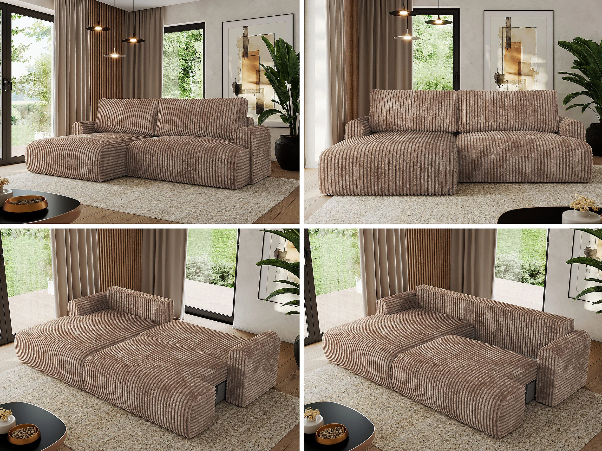 Ecksofa TONO - mit Schlaffunktion und Bettkasten, L-form Ecke, Armlehnen - Braun Cord - Ecke Links