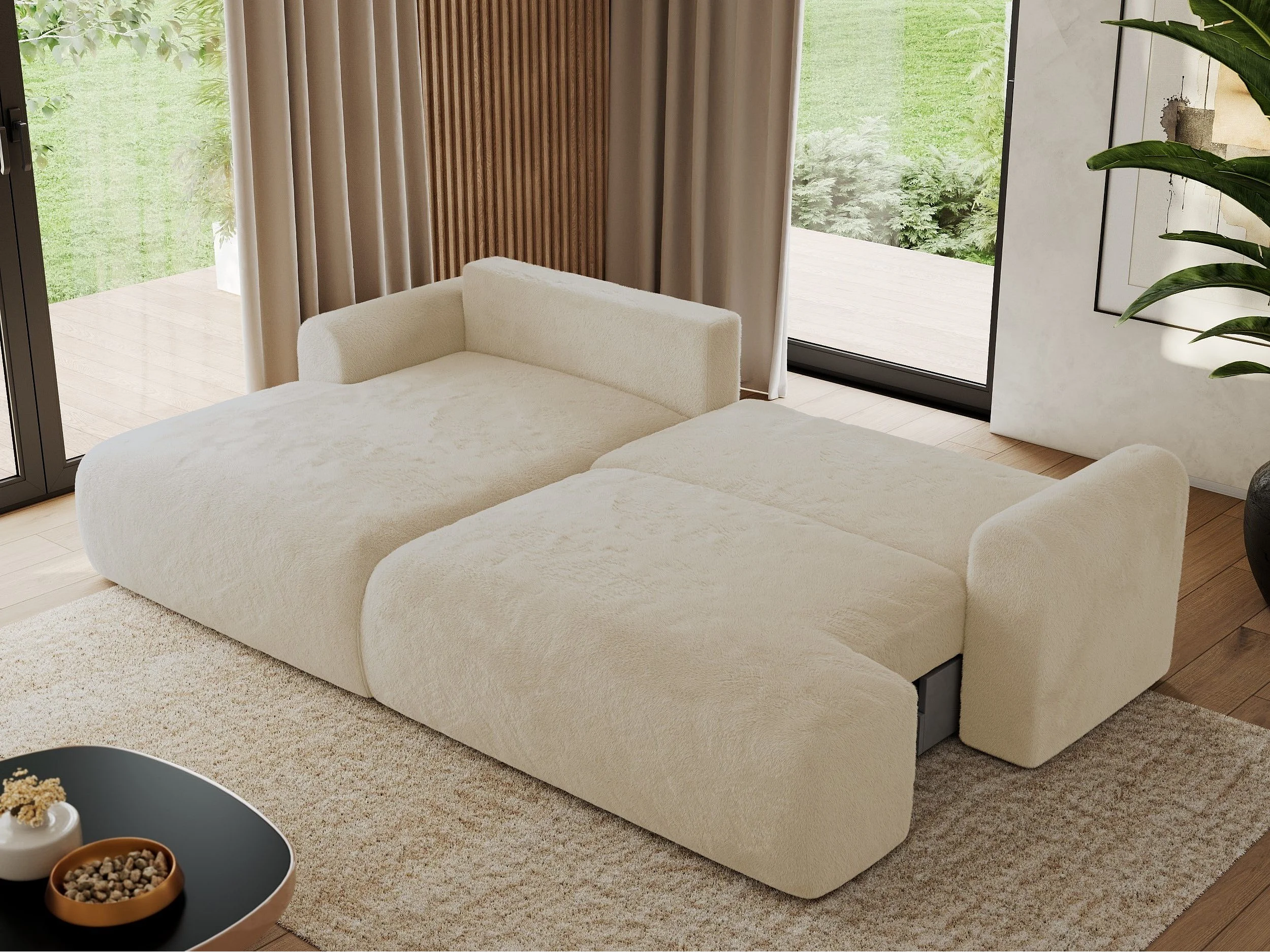 Ecksofa TONO - mit Schlaffunktion und Bettkasten, L-form Ecke, Armlehnen - Creme Plüsch - Ecke Links