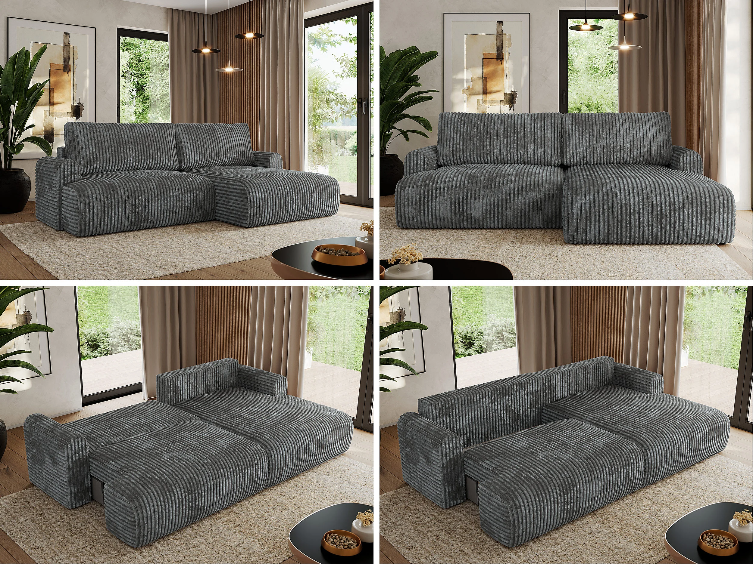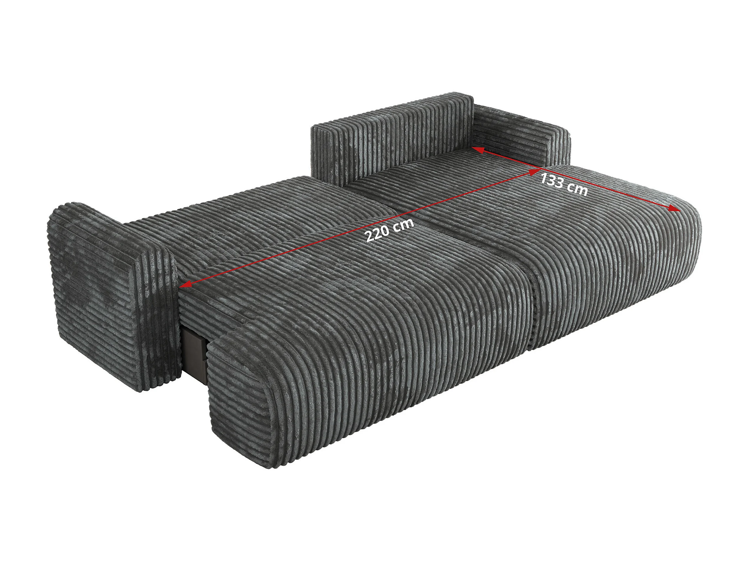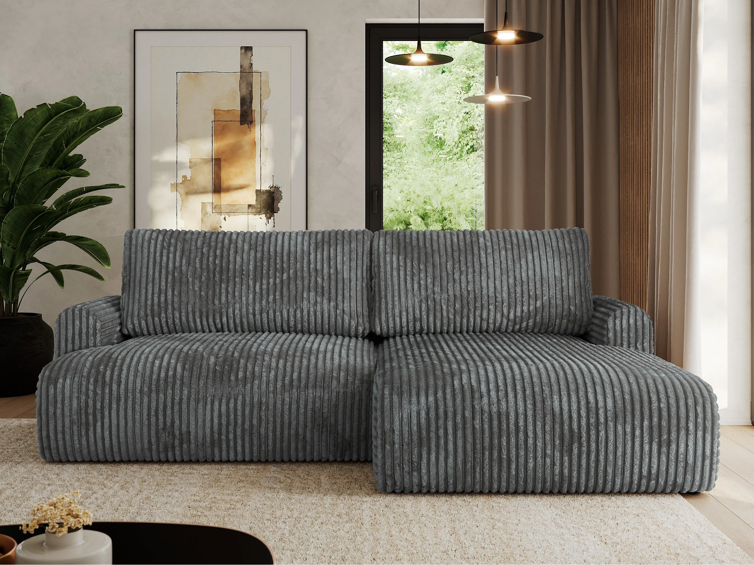 Ecksofa TONO - mit Schlaffunktion und Bettkasten, L-form Ecke, Armlehnen - Dunkelgrau Cord - Ecke Rechts