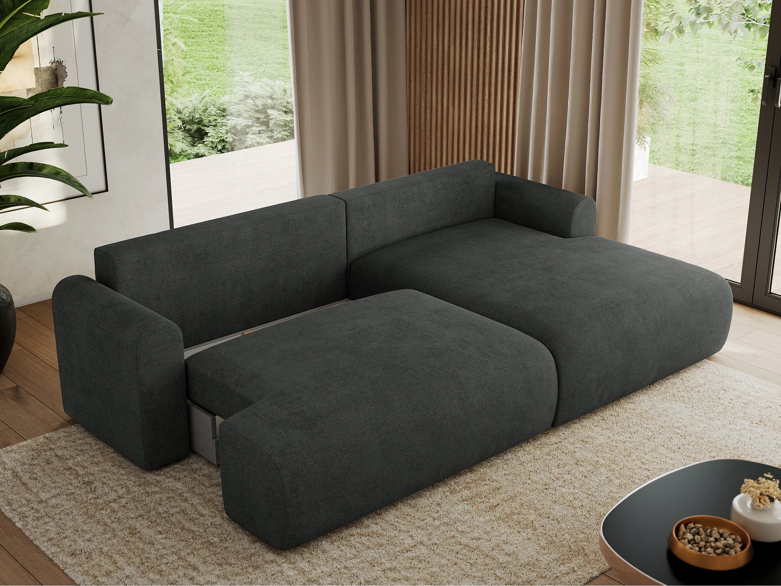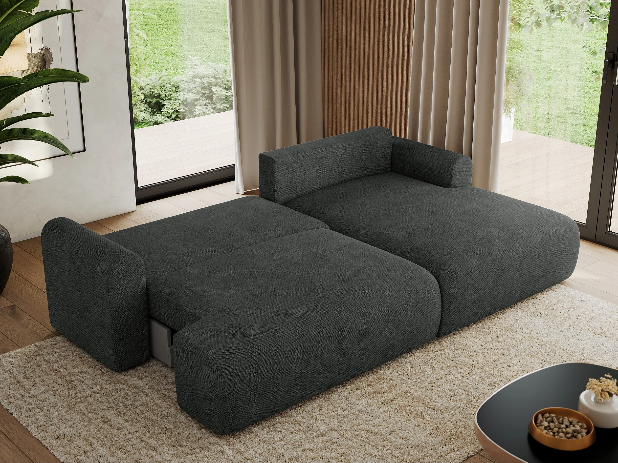 Ecksofa TONO - mit Schlaffunktion und Bettkasten, L-form Ecke, Armlehnen - Dunkelgrau Struktur - Ecke Rechts
