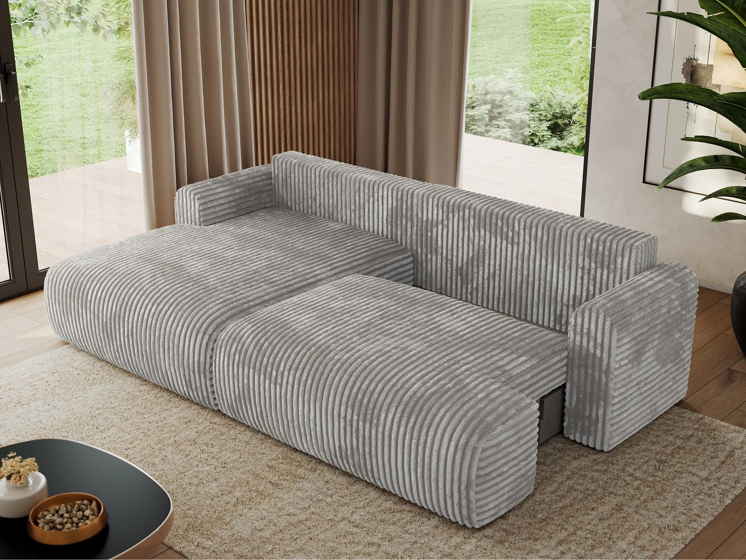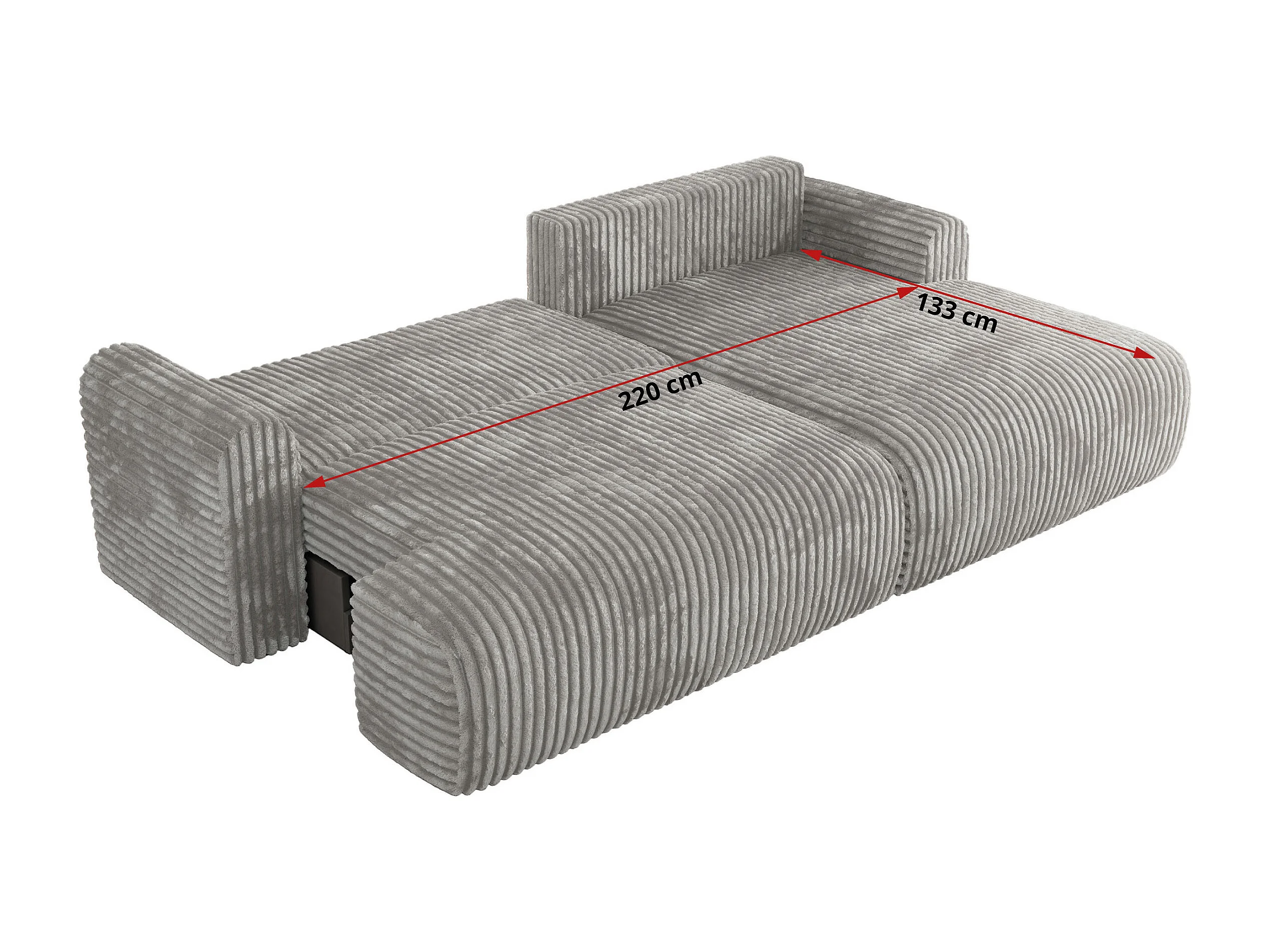 Ecksofa TONO - mit Schlaffunktion und Bettkasten, L-form Ecke, Armlehnen - Grau Cord - Ecke Links