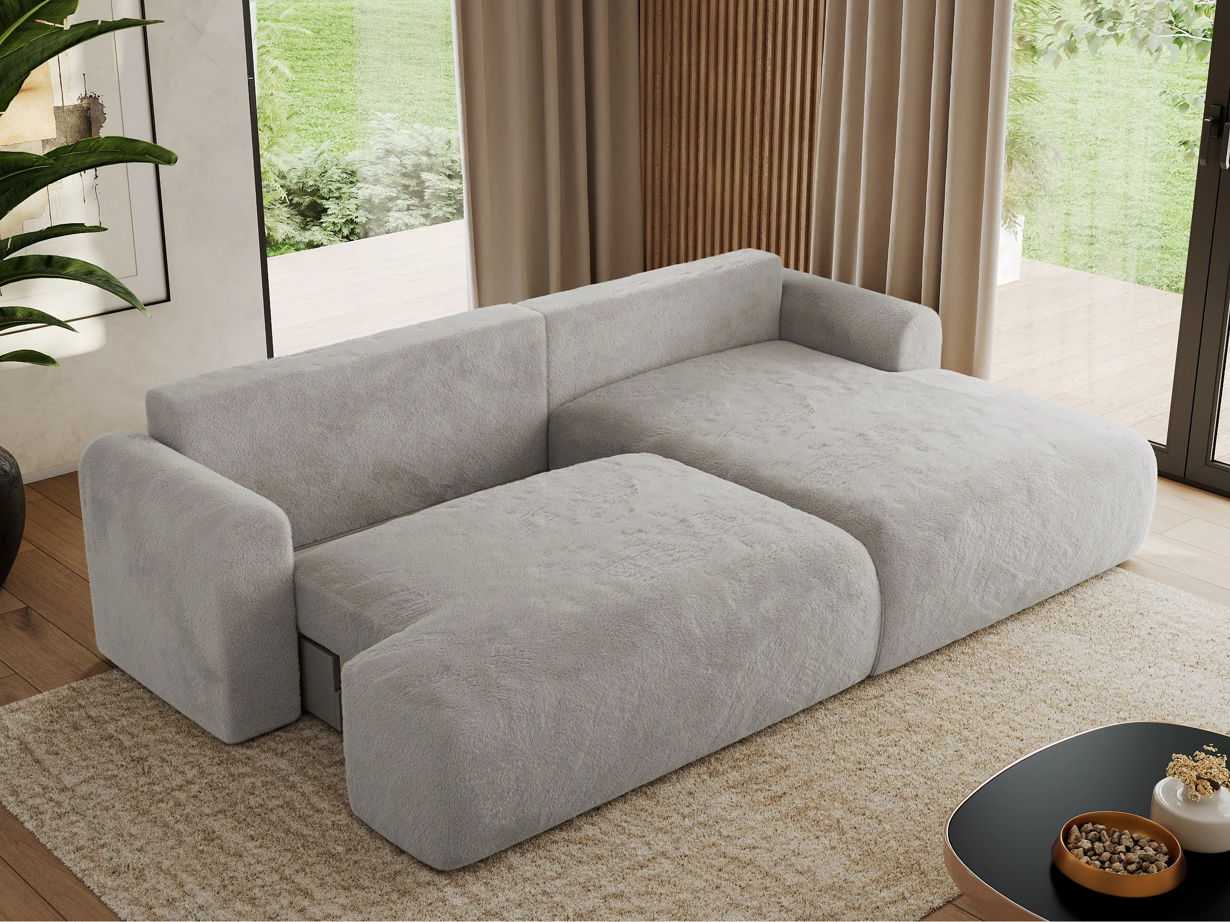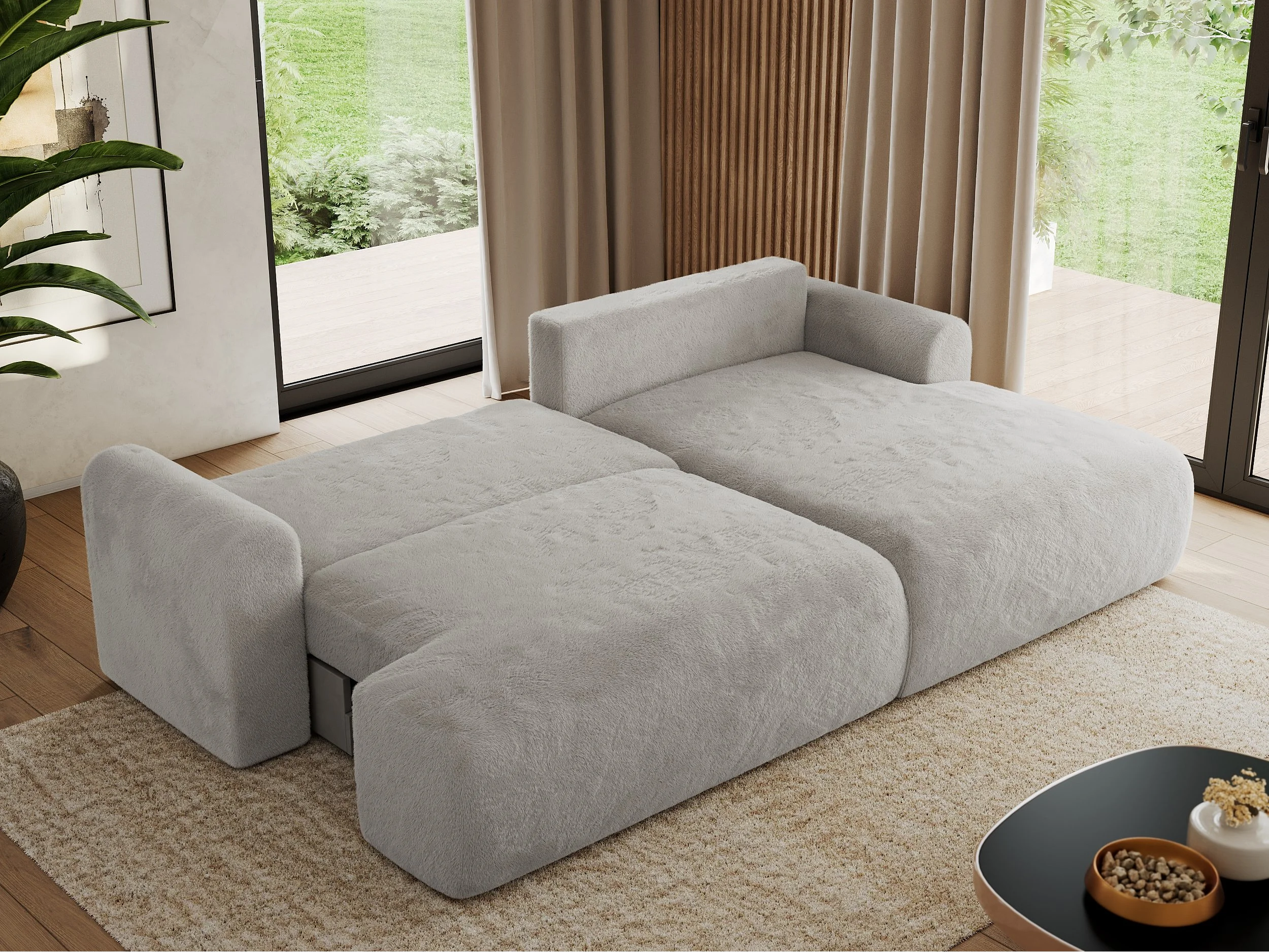 Ecksofa TONO - mit Schlaffunktion und Bettkasten, L-form Ecke, Armlehnen - Hellgrau Plüsch - Ecke Rechts