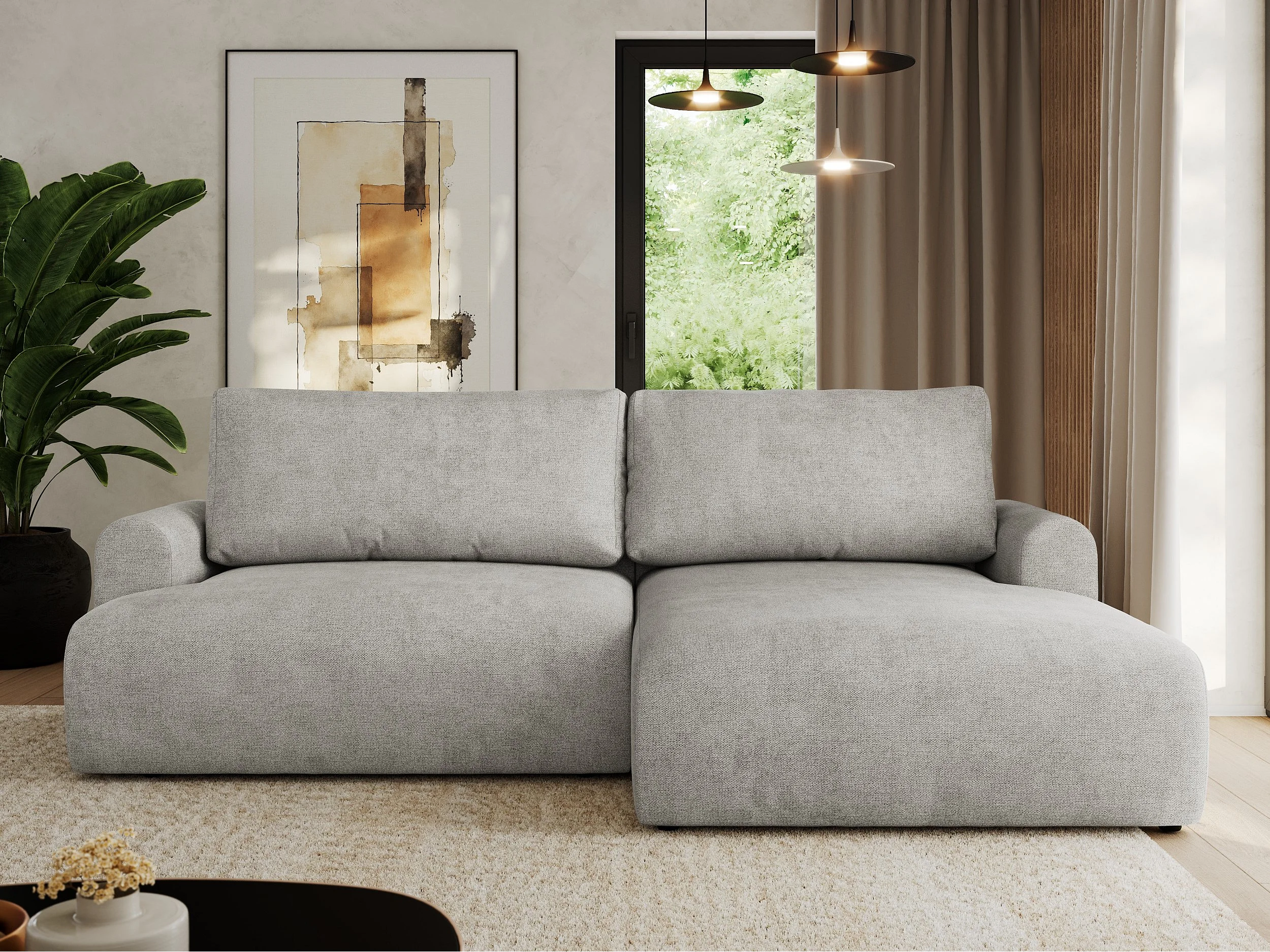 Ecksofa TONO - mit Schlaffunktion und Bettkasten, L-form Ecke, Armlehnen - Hellgrau Struktur - Ecke Rechts