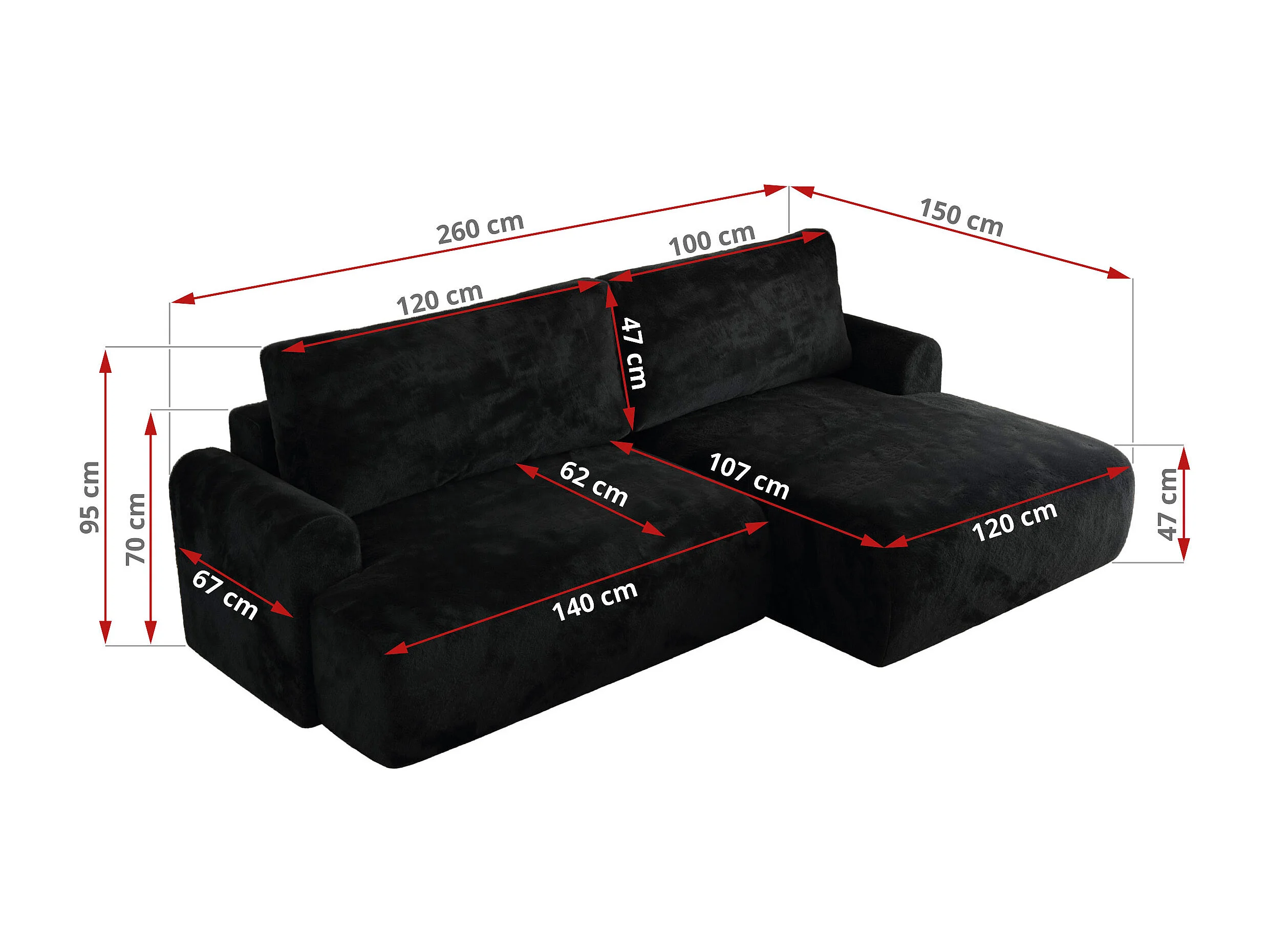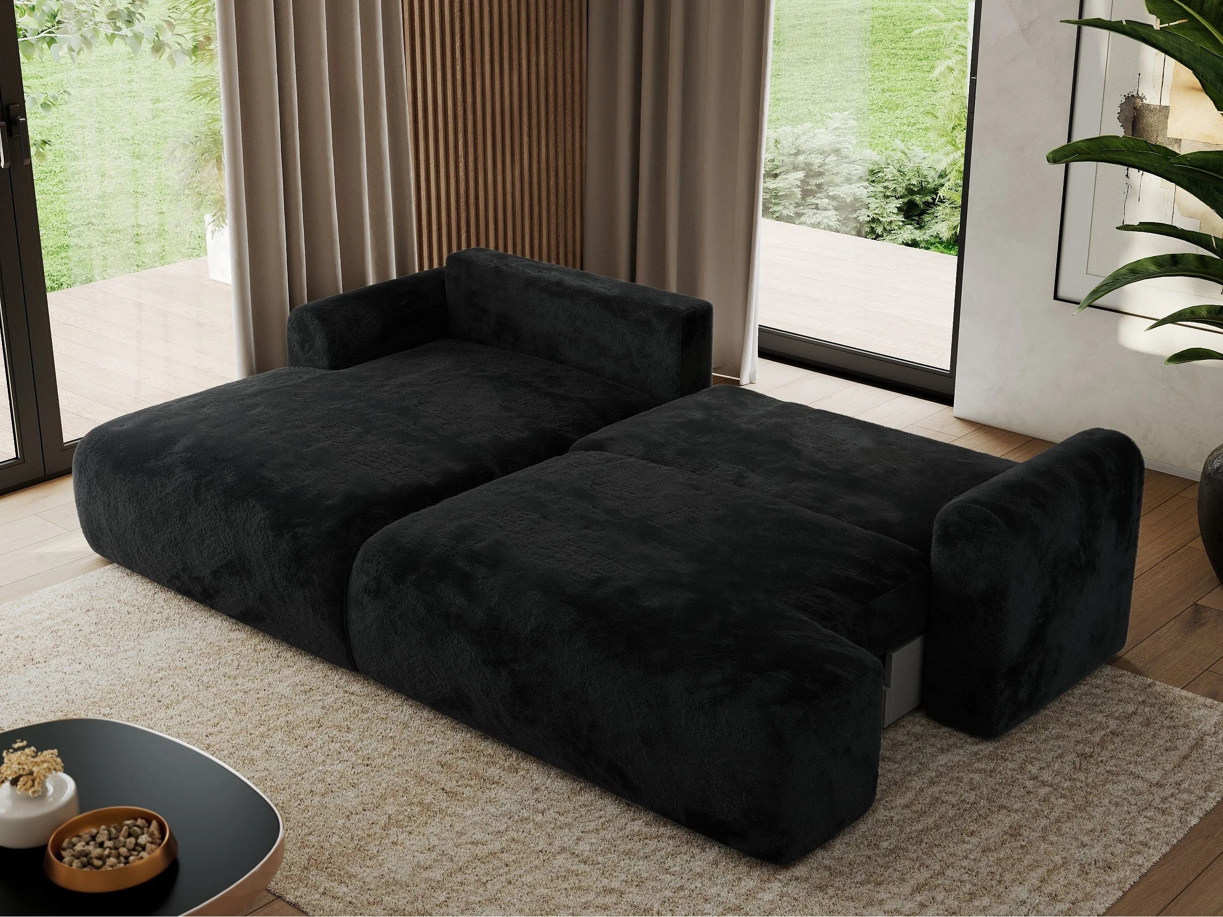 Ecksofa TONO - mit Schlaffunktion und Bettkasten, L-form Ecke, Armlehnen - Schwarz Plüsch - Ecke Links