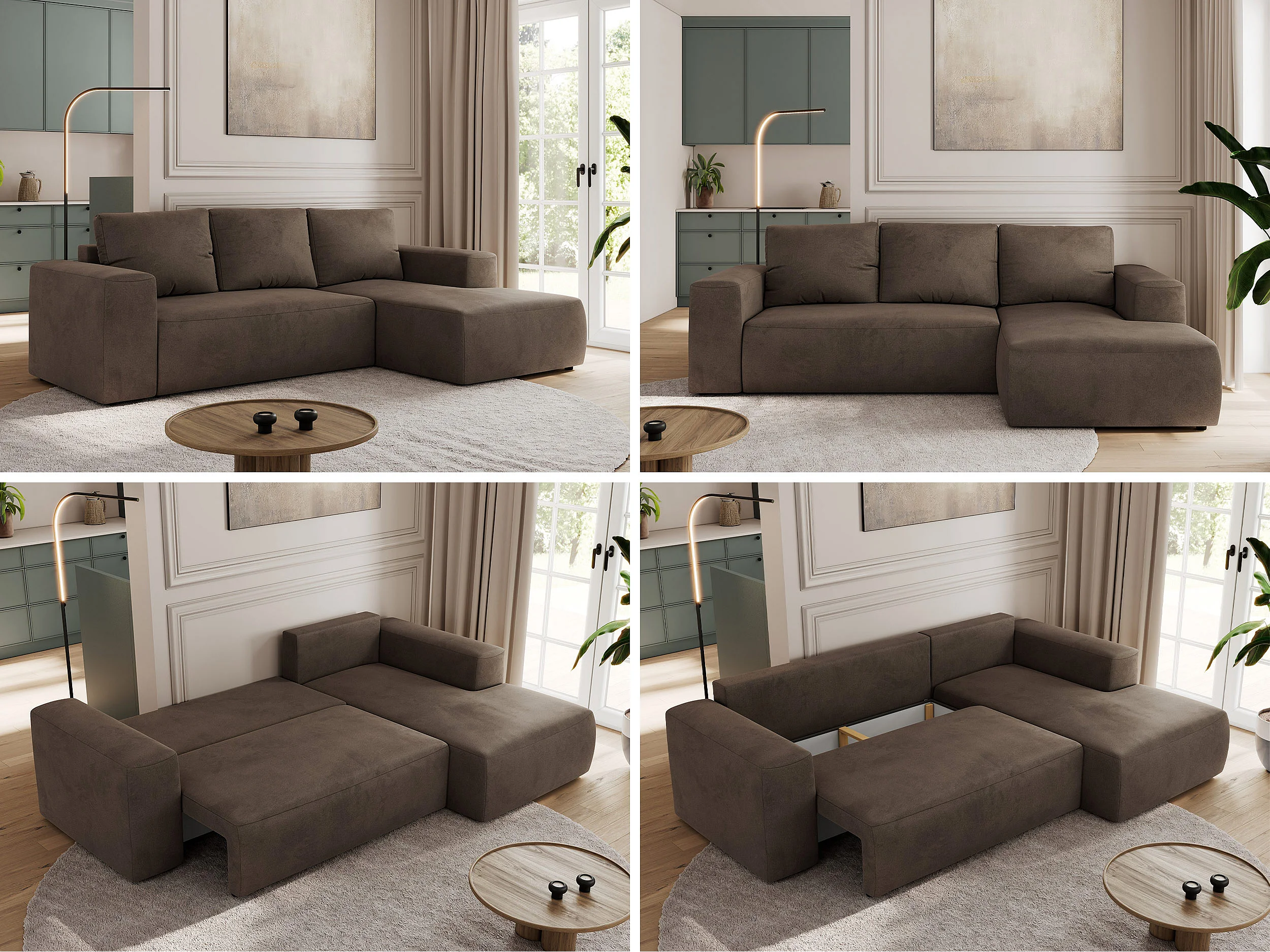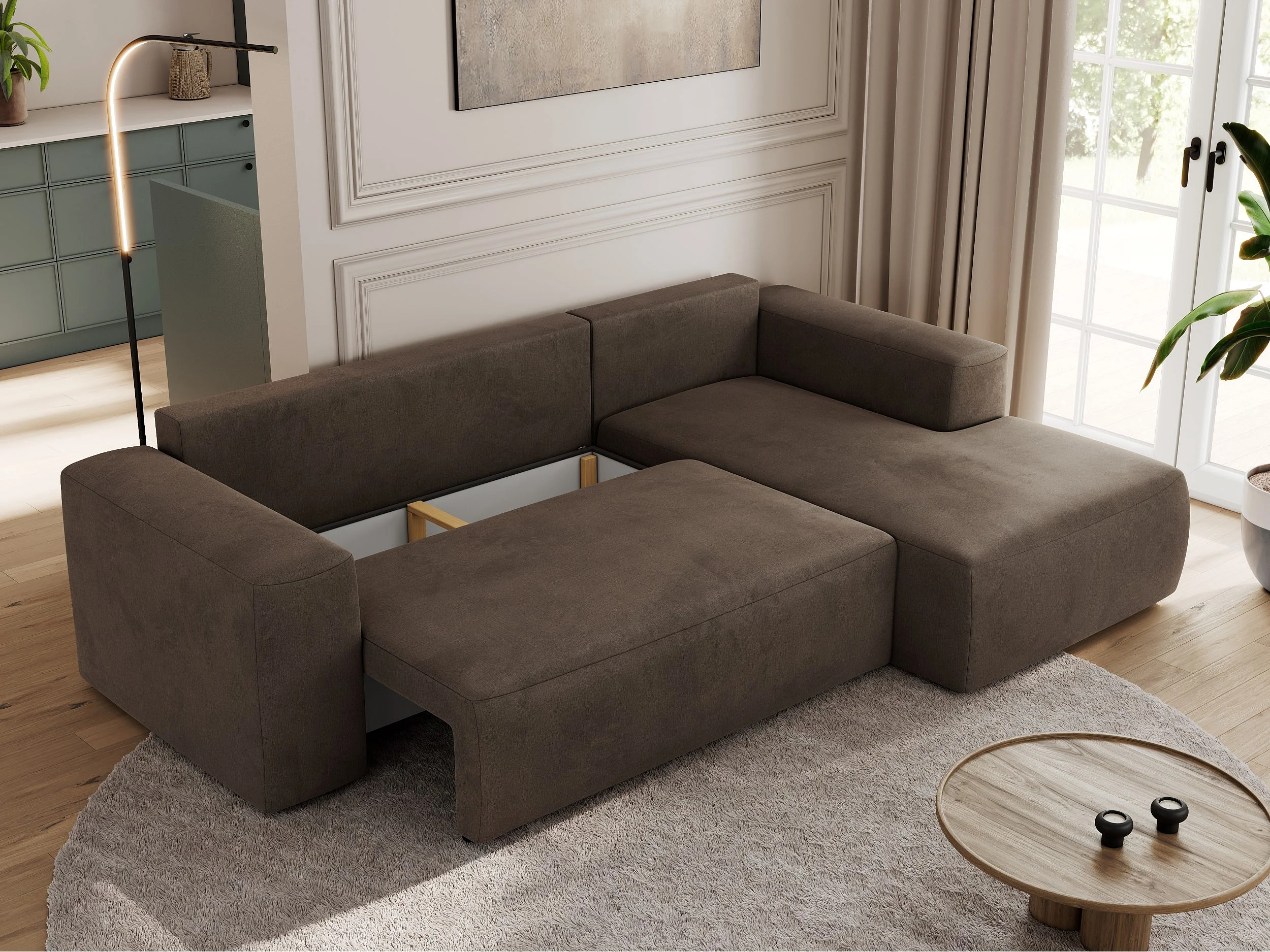 Ecksofa TRENTINO - mit Schlaffunktion und Bettkasten, L-form Couch, lose Kissen und Armlehnen - Braun Velvet - Ecke Rechts