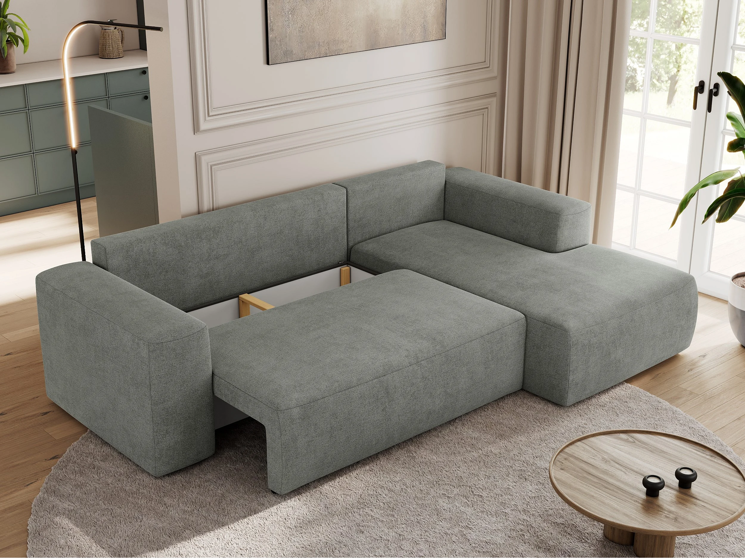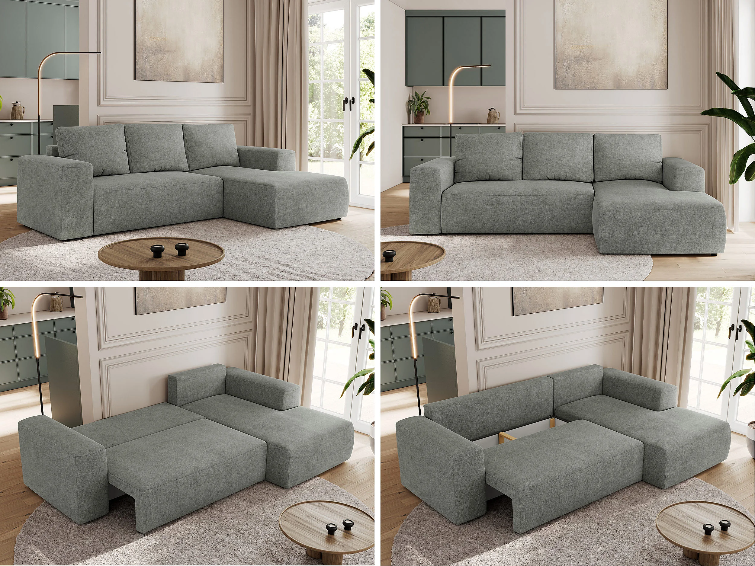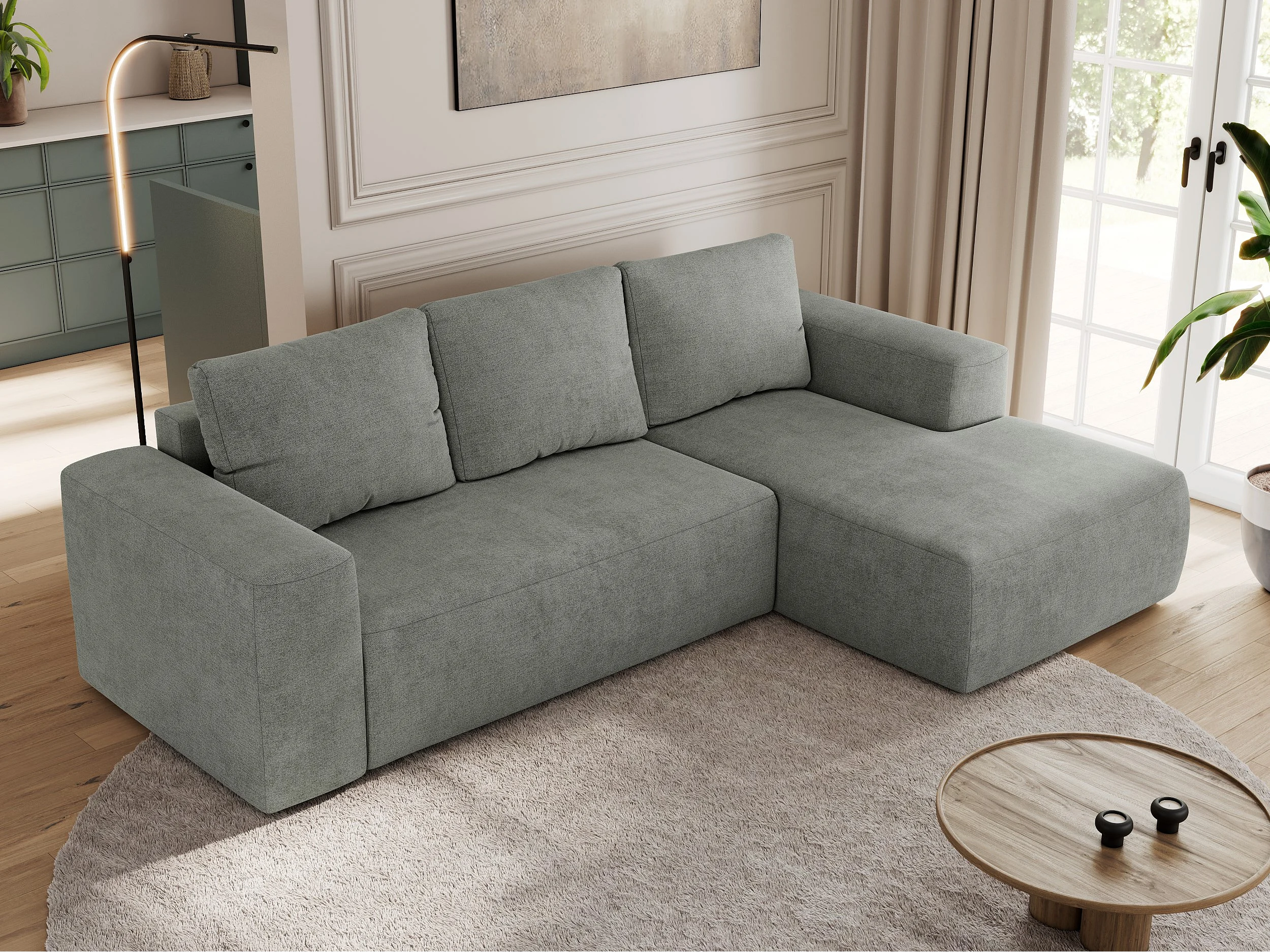 Ecksofa TRENTINO - mit Schlaffunktion und Bettkasten, L-form Couch, lose Kissen und Armlehnen - Grau Stukture - Ecke Rechts