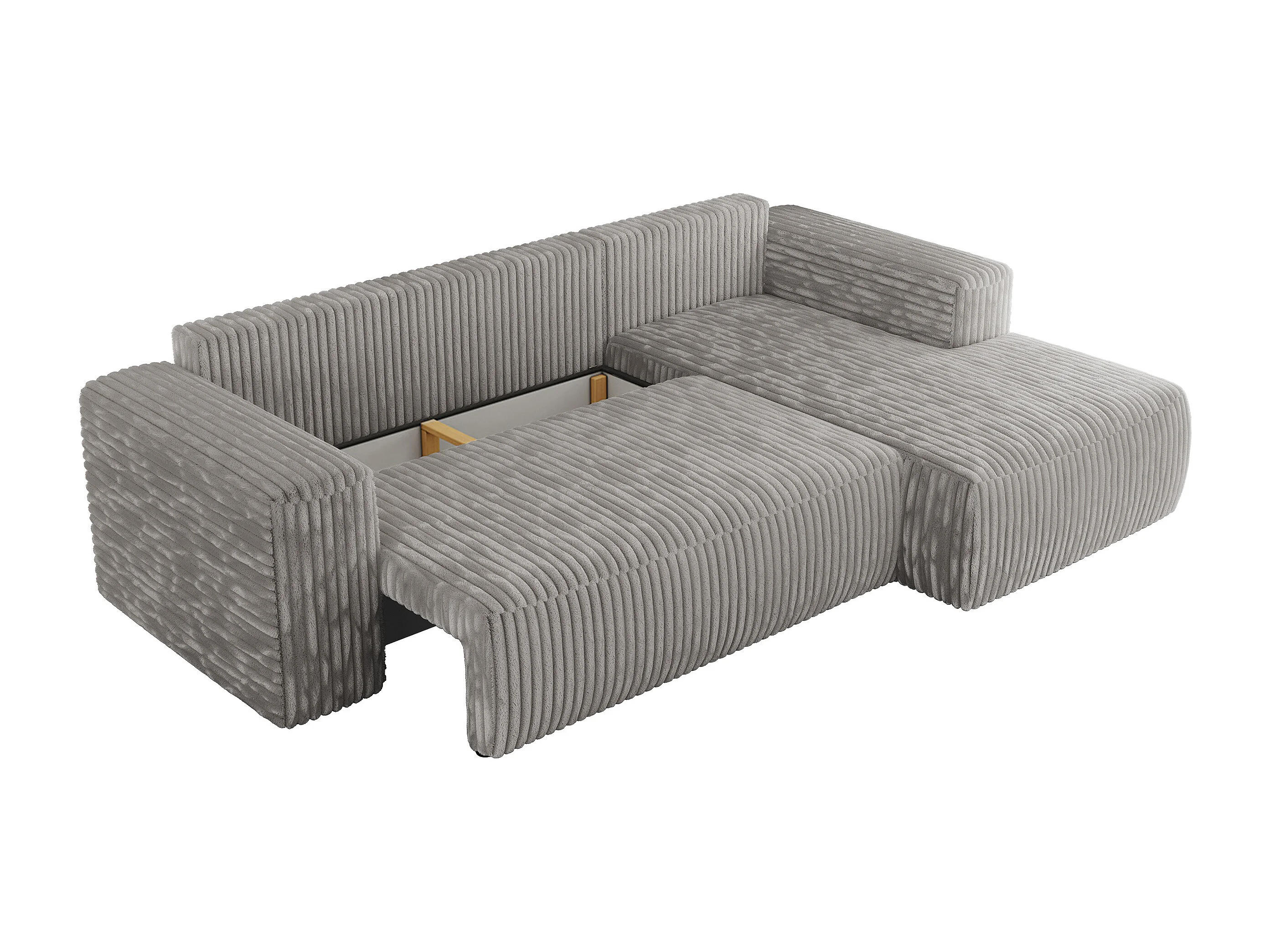 Ecksofa TRENTINO - mit Schlaffunktion und Bettkasten, L-form Couch, lose Kissen und Armlehnen - Hellgrau Cord - Ecke Rechts