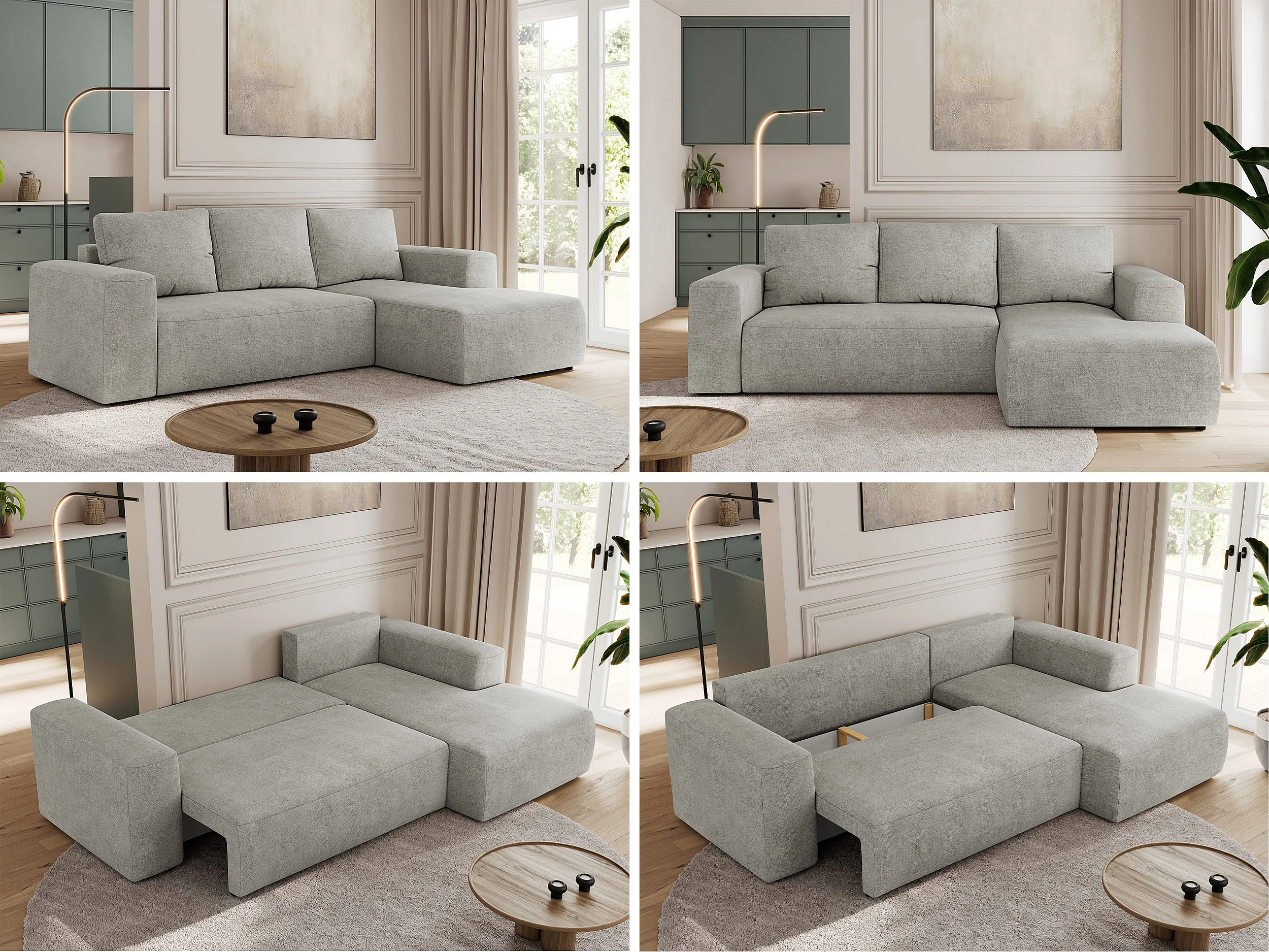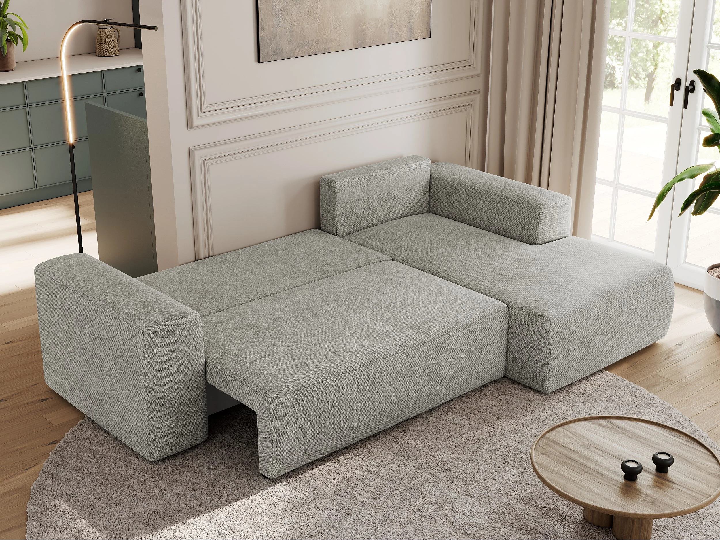 Ecksofa TRENTINO - mit Schlaffunktion und Bettkasten, L-form Couch, lose Kissen und Armlehnen - Hellgrau Stukture - Ecke Rechts