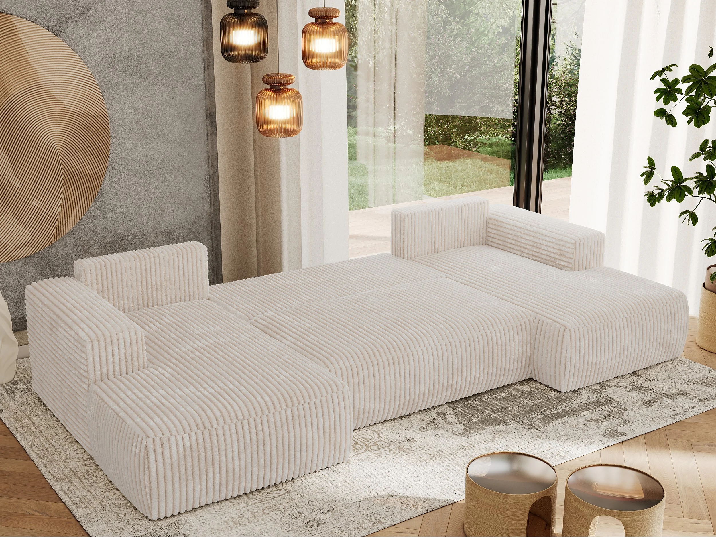 Ecksofa TRENTINO U - mit Schlaffunktion und Bettkasten, U-förmiges Wohnlandschaft, Armlehnen - Beige Cord