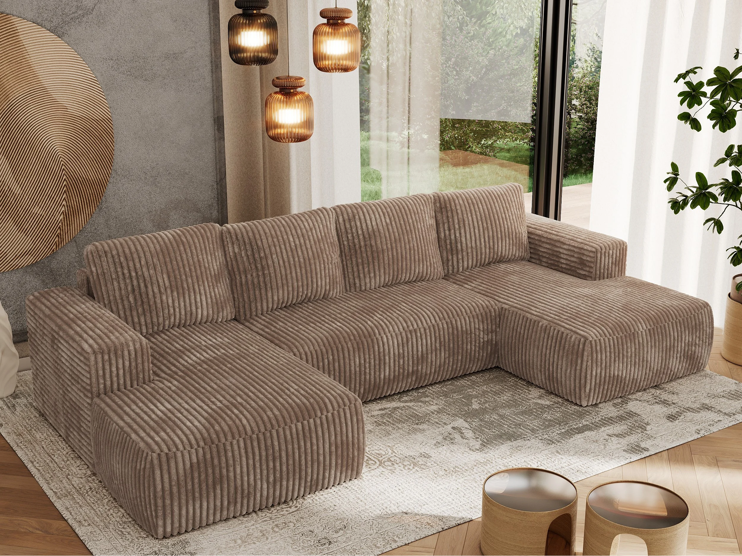 Ecksofa TRENTINO U - mit Schlaffunktion und Bettkasten, U-förmiges Wohnlandschaft, Armlehnen - Braun Cord