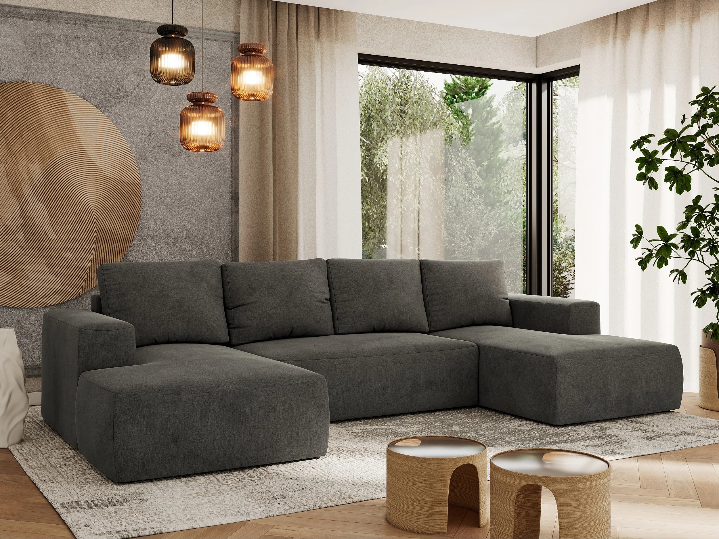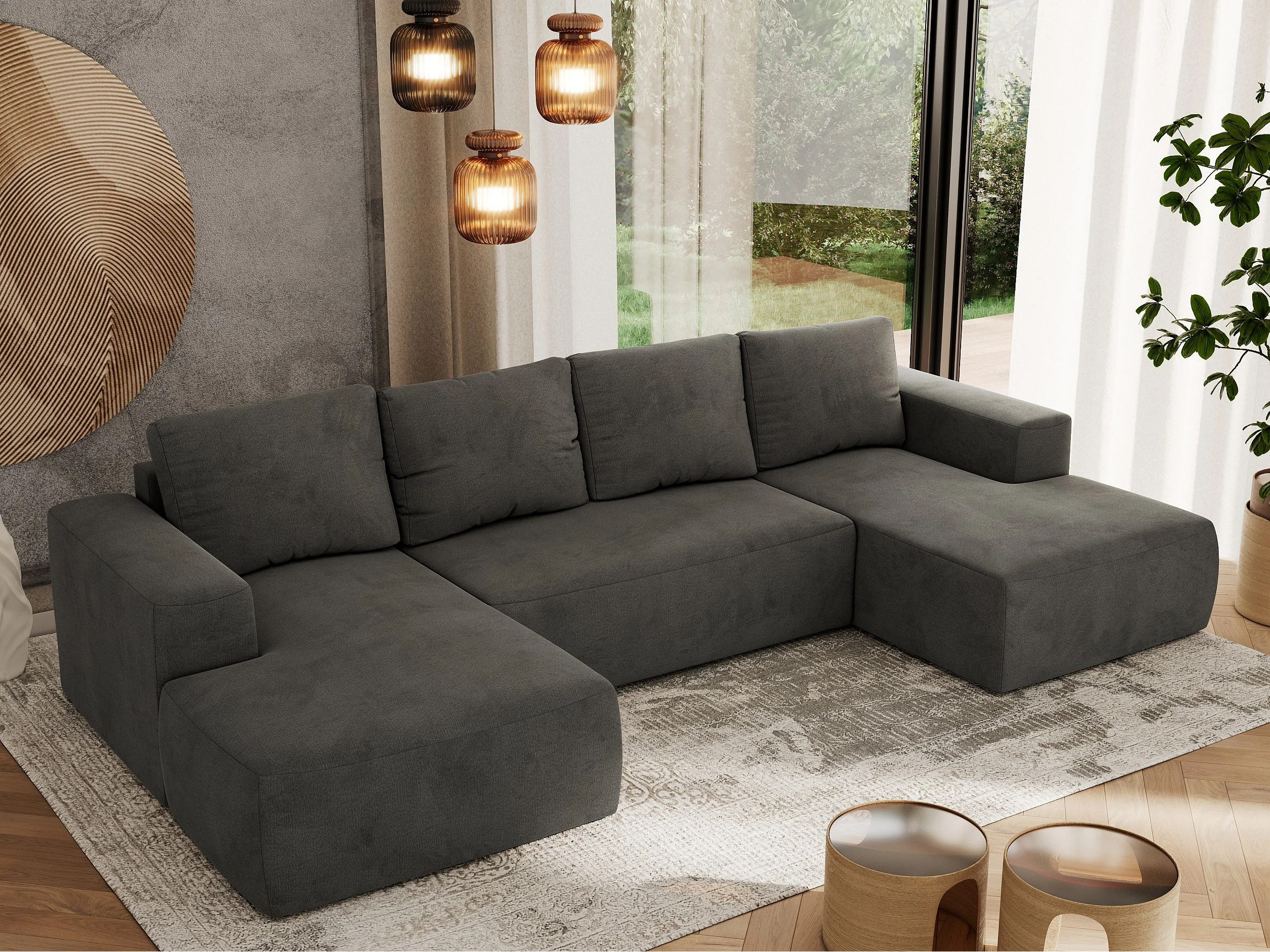 Ecksofa TRENTINO U - mit Schlaffunktion und Bettkasten, U-förmiges Wohnlandschaft, Armlehnen - Dunkelgrau Velvet
