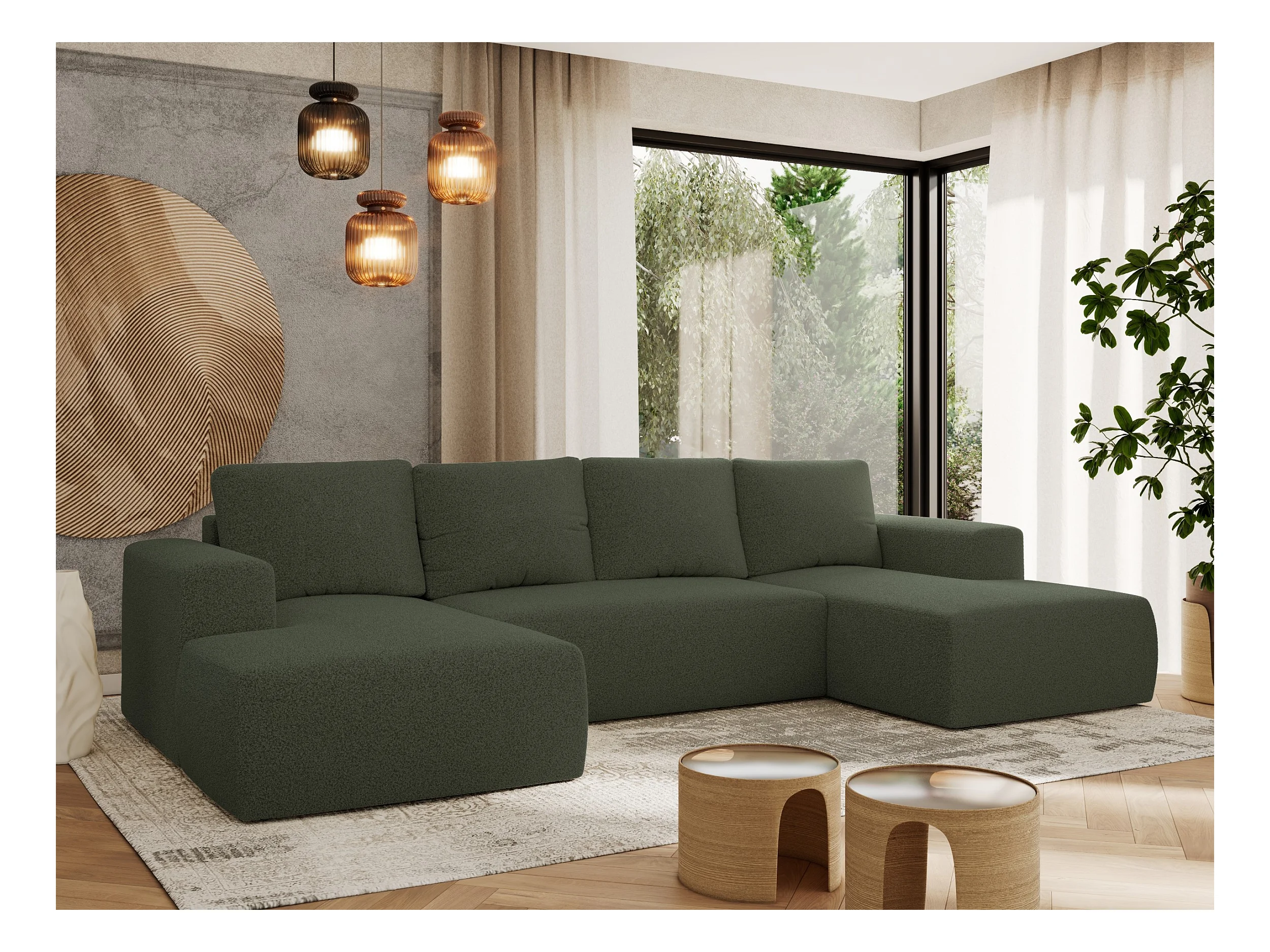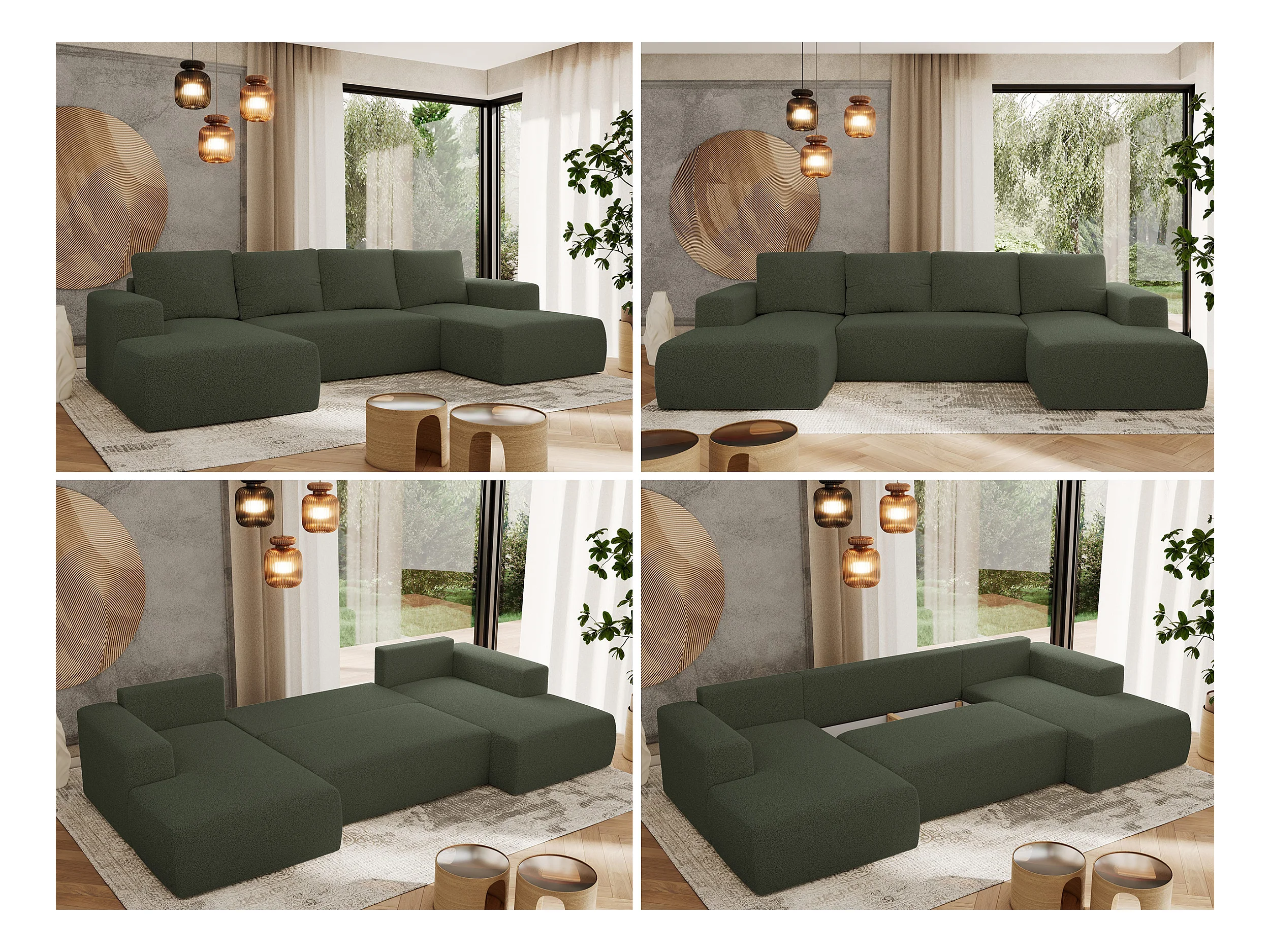 Ecksofa TRENTINO U - mit Schlaffunktion und Bettkasten, U-förmiges Wohnlandschaft, Armlehnen - Grün Boucle