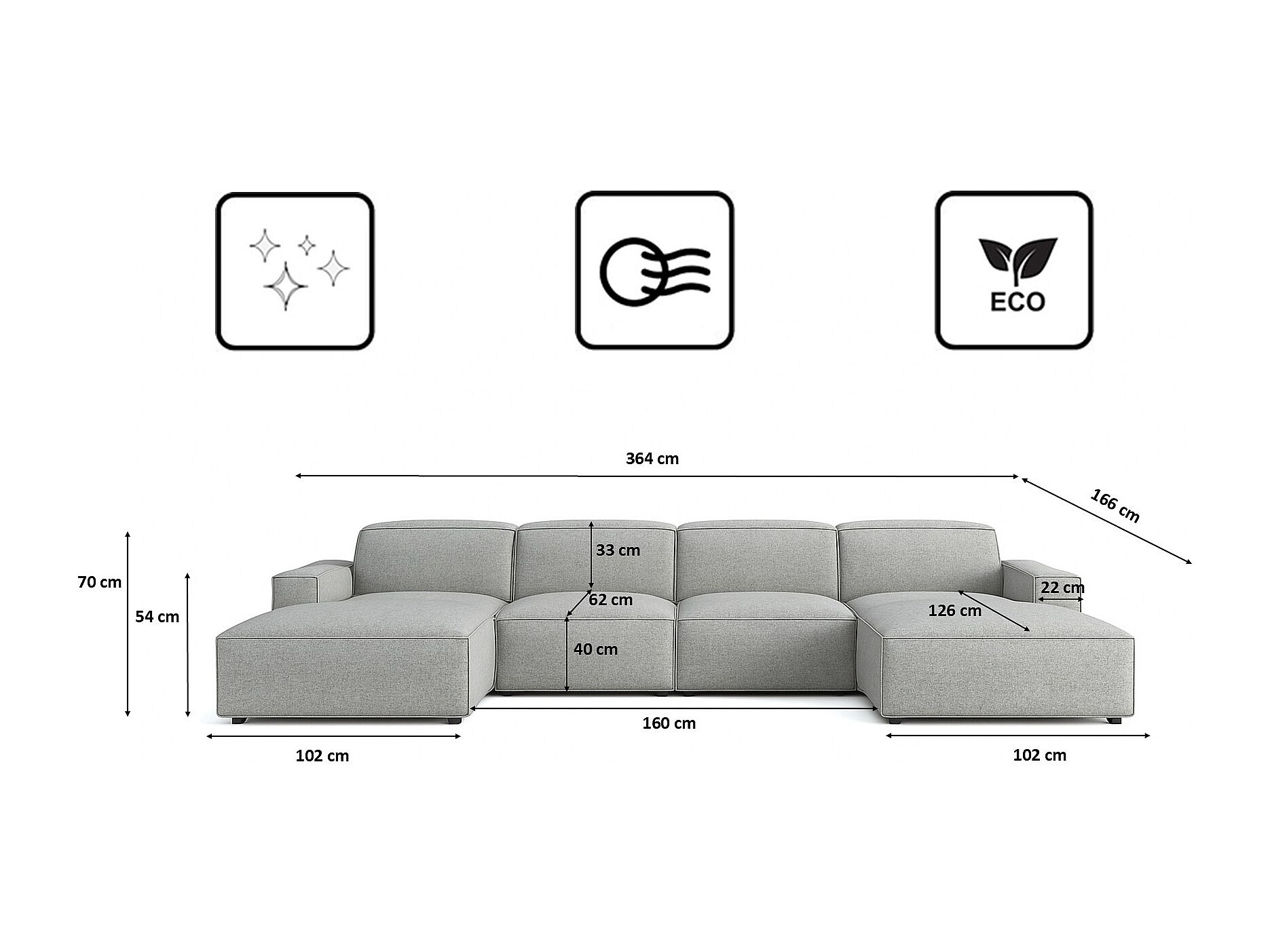 Ecksofa U-Form Cursal, Stoff Artico, Cement