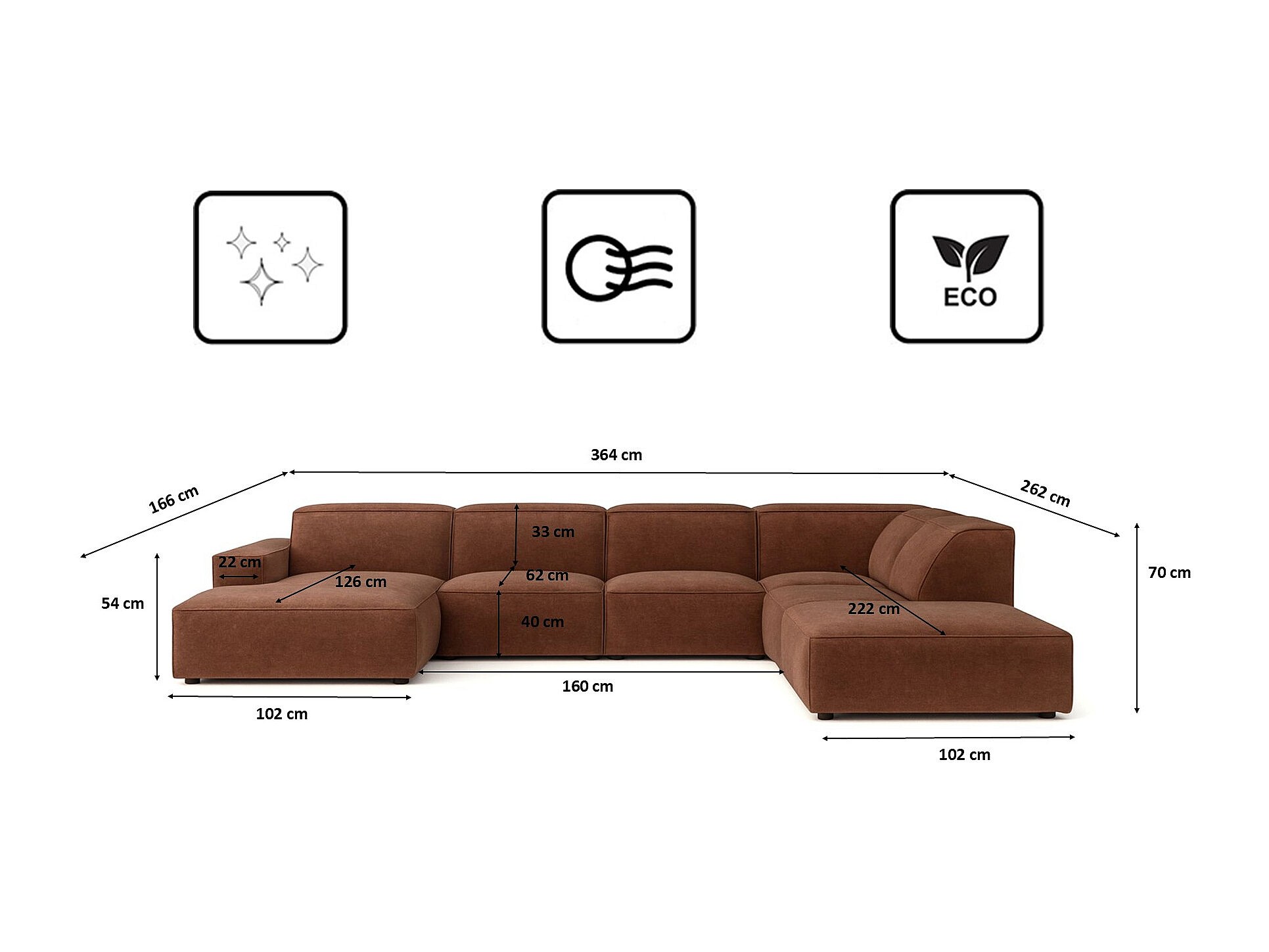 Ecksofa U-Form Cursal V, Stoff Salvador, Dunkelbraun, Rechts