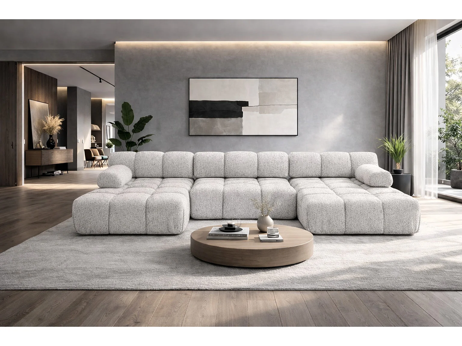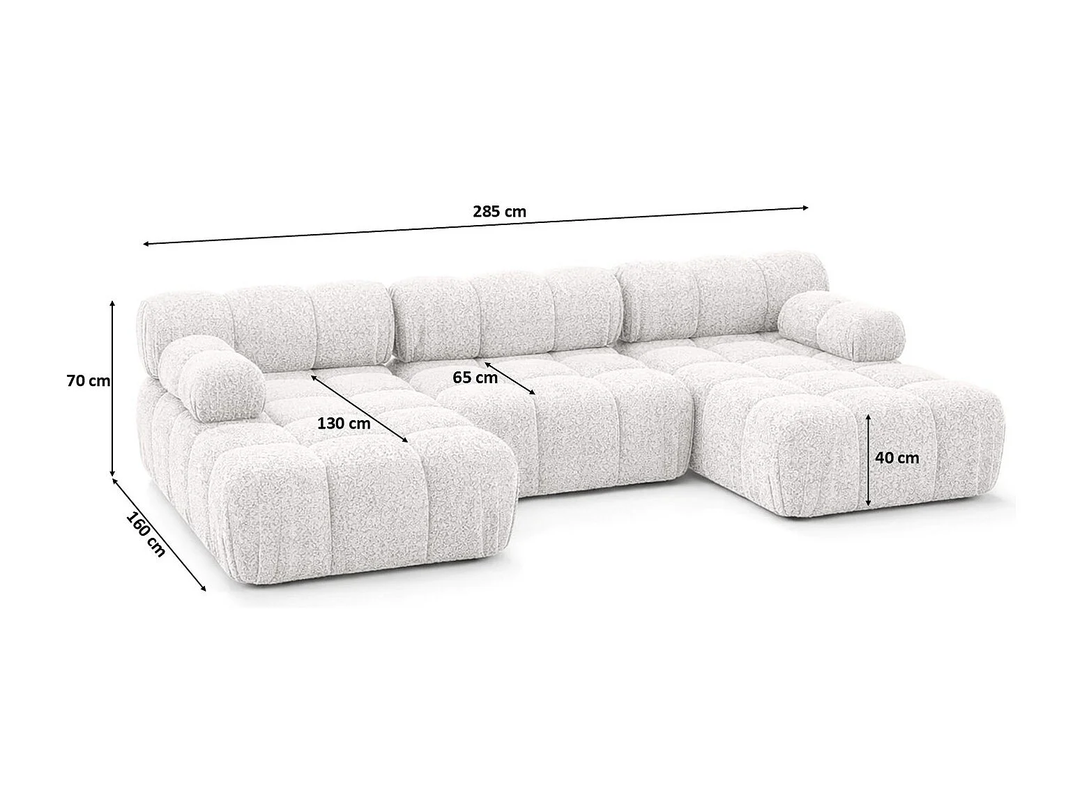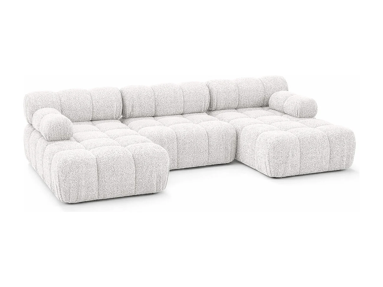 Ecksofa U-Form, Stoff Bouclé Abriamo, Ecru, Selia U
