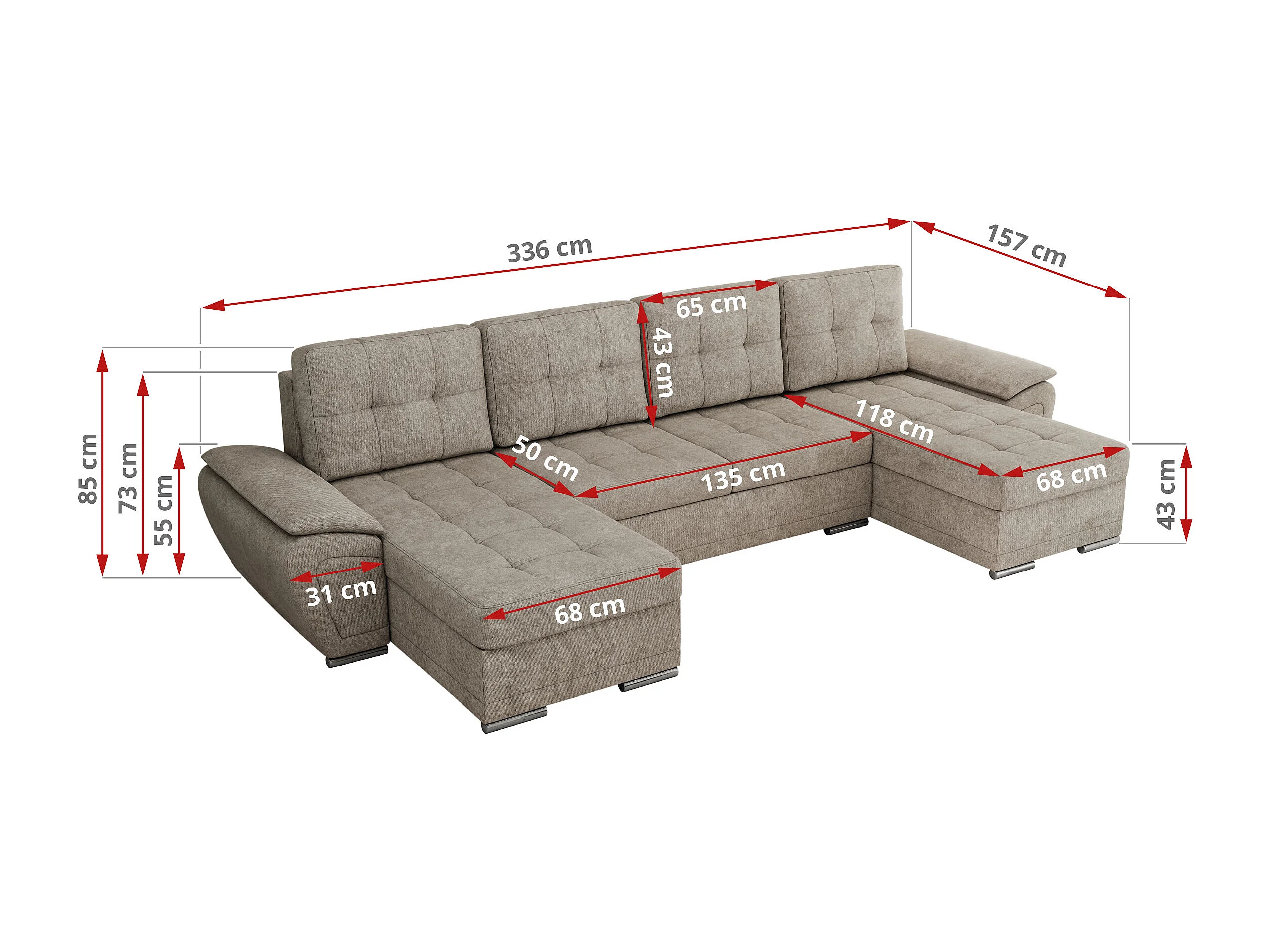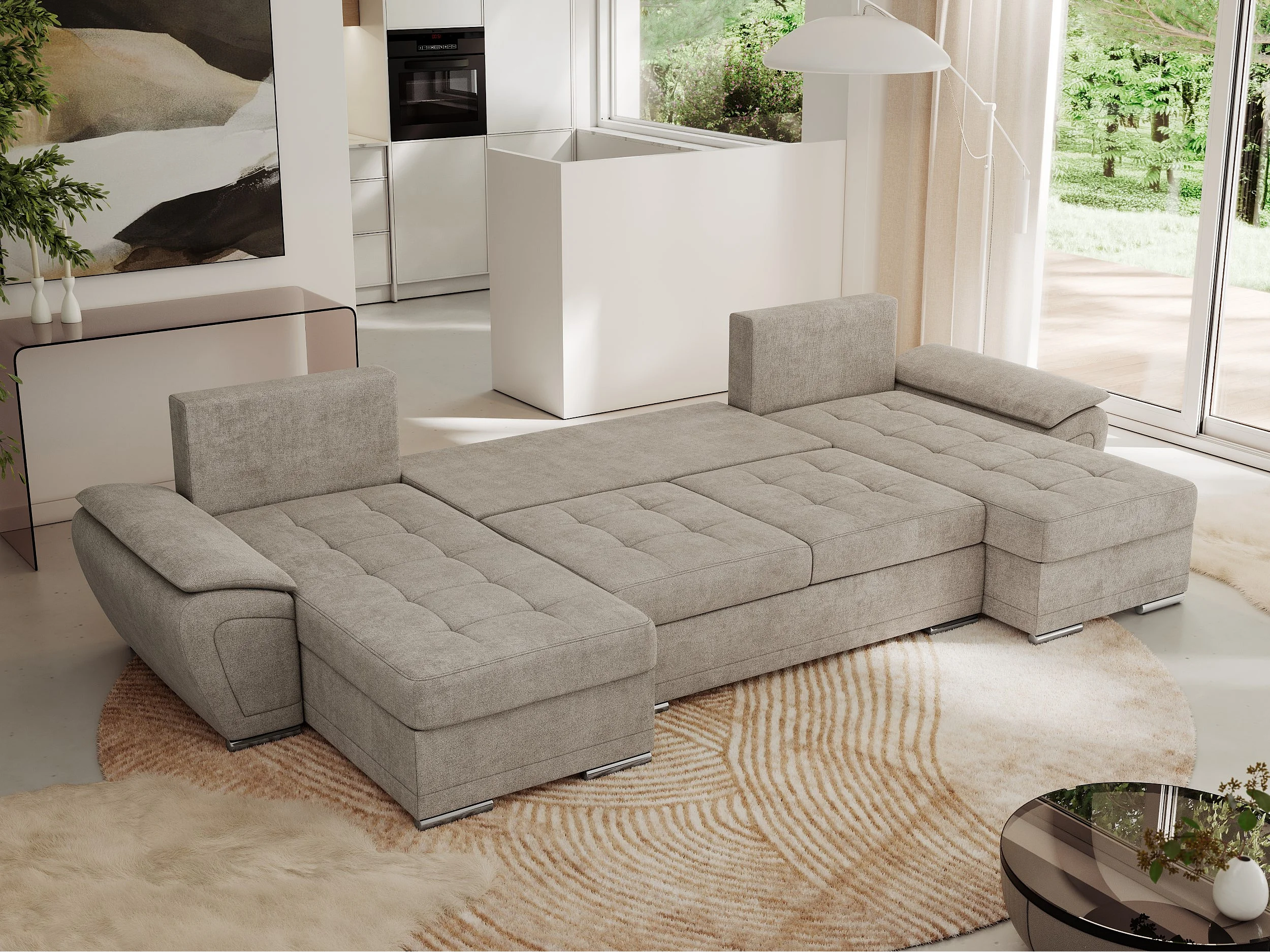 Ecksofa UMBRIA U - XXL Wohnlandschaft, mit Schlaffunktion und Bettkasten, genähte Ecke - Beige Stukture