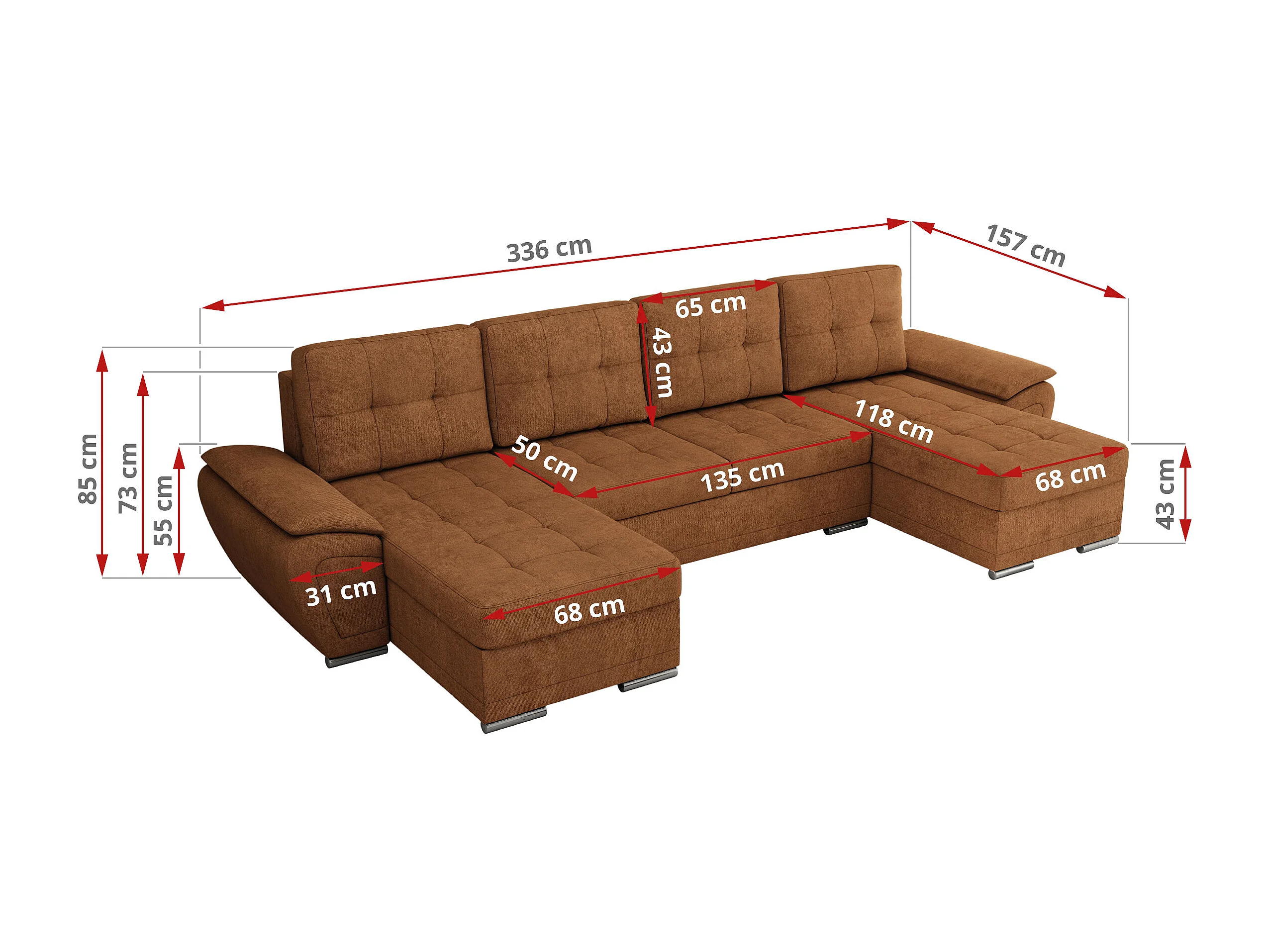Ecksofa UMBRIA U - XXL Wohnlandschaft, mit Schlaffunktion und Bettkasten, genähte Ecke - Orange Stukture