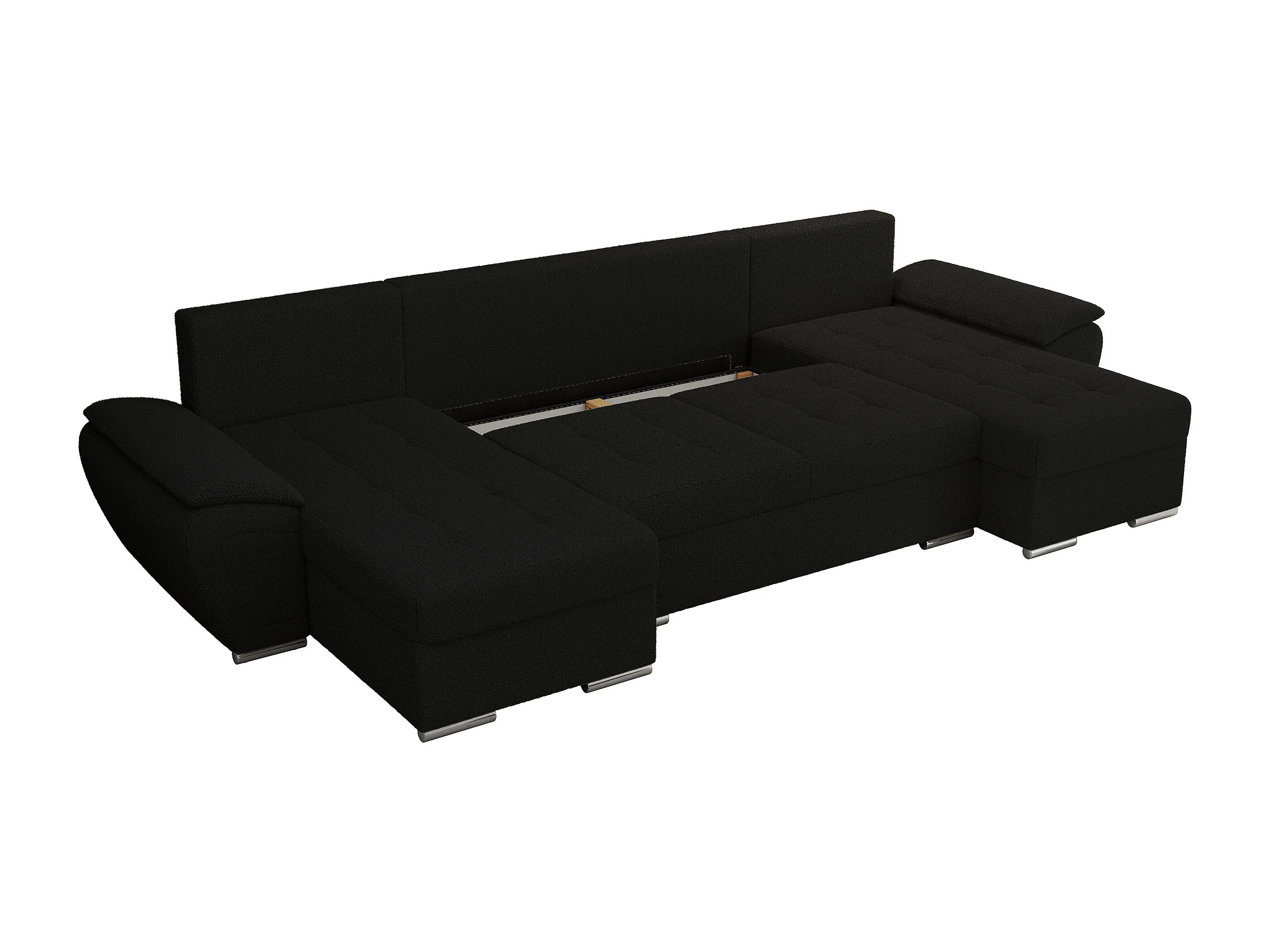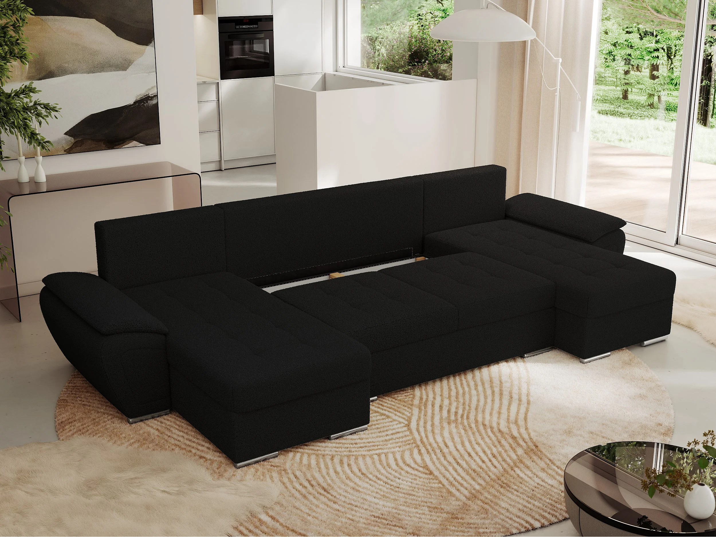 Ecksofa UMBRIA U - XXL Wohnlandschaft, mit Schlaffunktion und Bettkasten, genähte Ecke - Schwarz Boucle