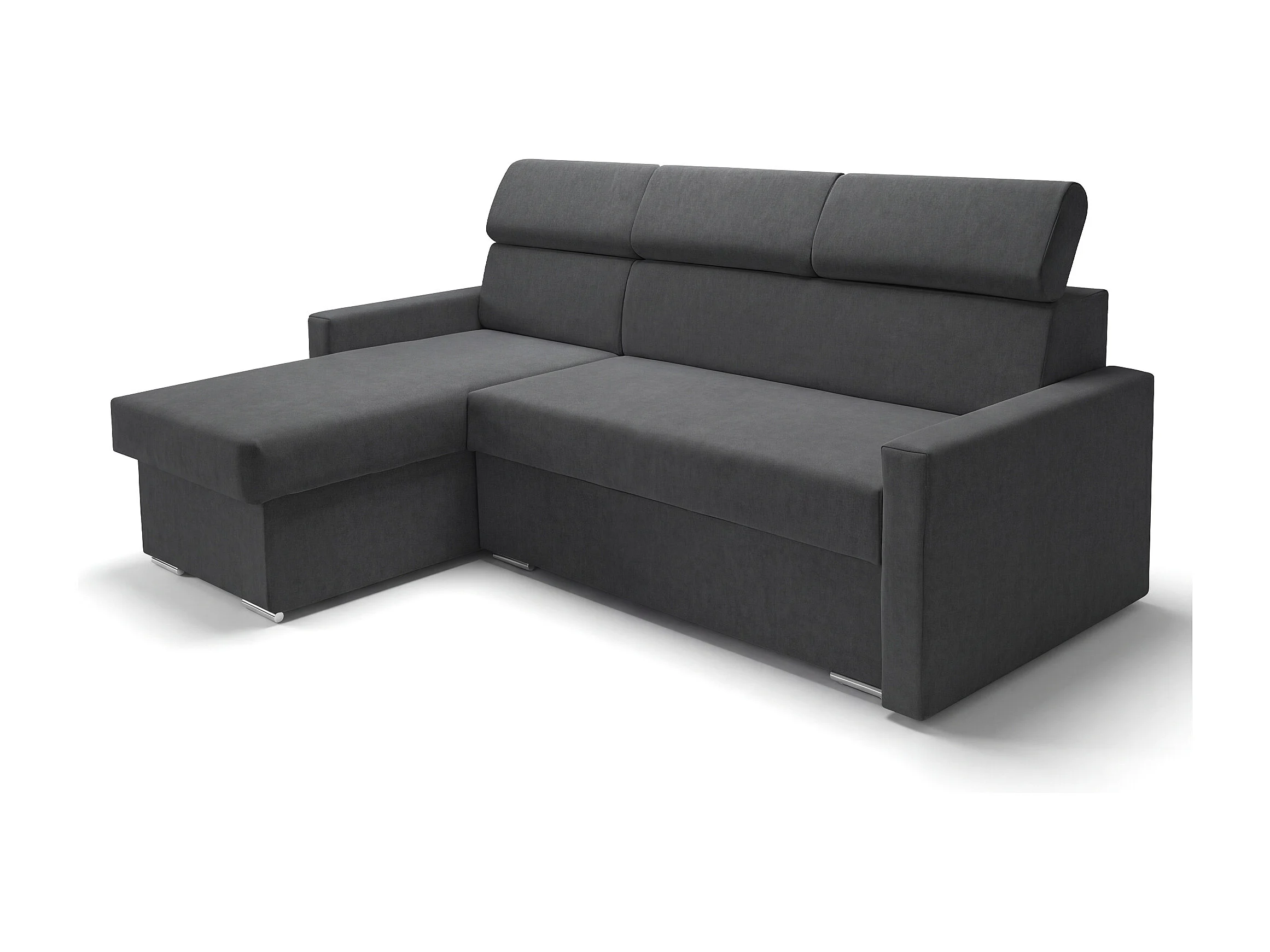 Ecksofa Vega L mit Schlaffunktion & Bettkasten – Samtstoff Best Graphit – Zero-Wall Design Wandbündig – L-Form Sofa Freistehend Graphit