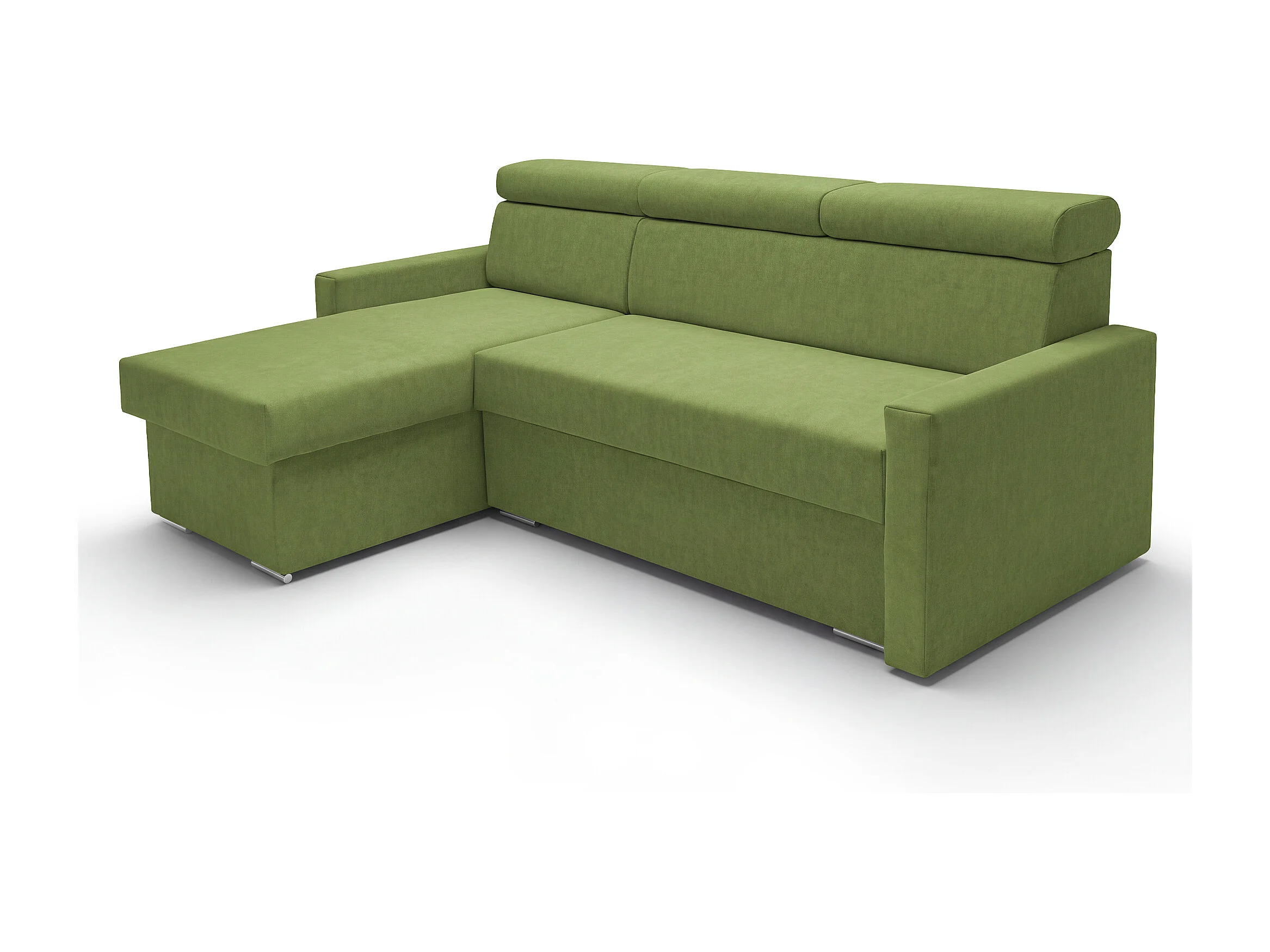 Ecksofa Vega L mit Schlaffunktion & Bettkasten – Samtstoff Best Grün– Zero-Wall Design Wandbündig – L-Form Sofa Freistehend