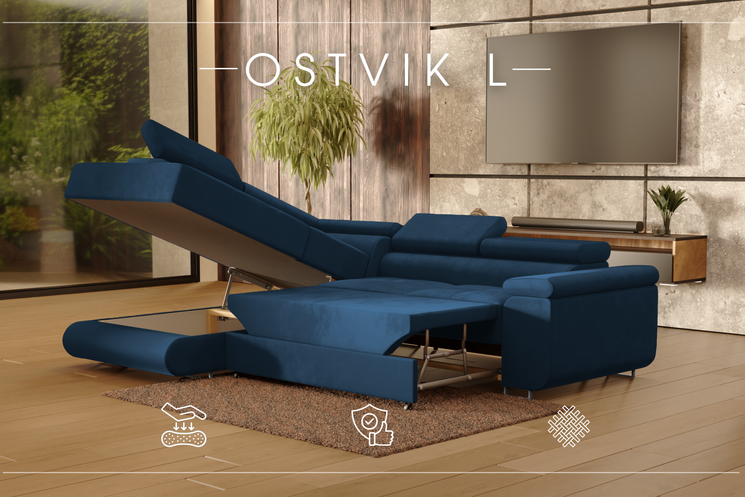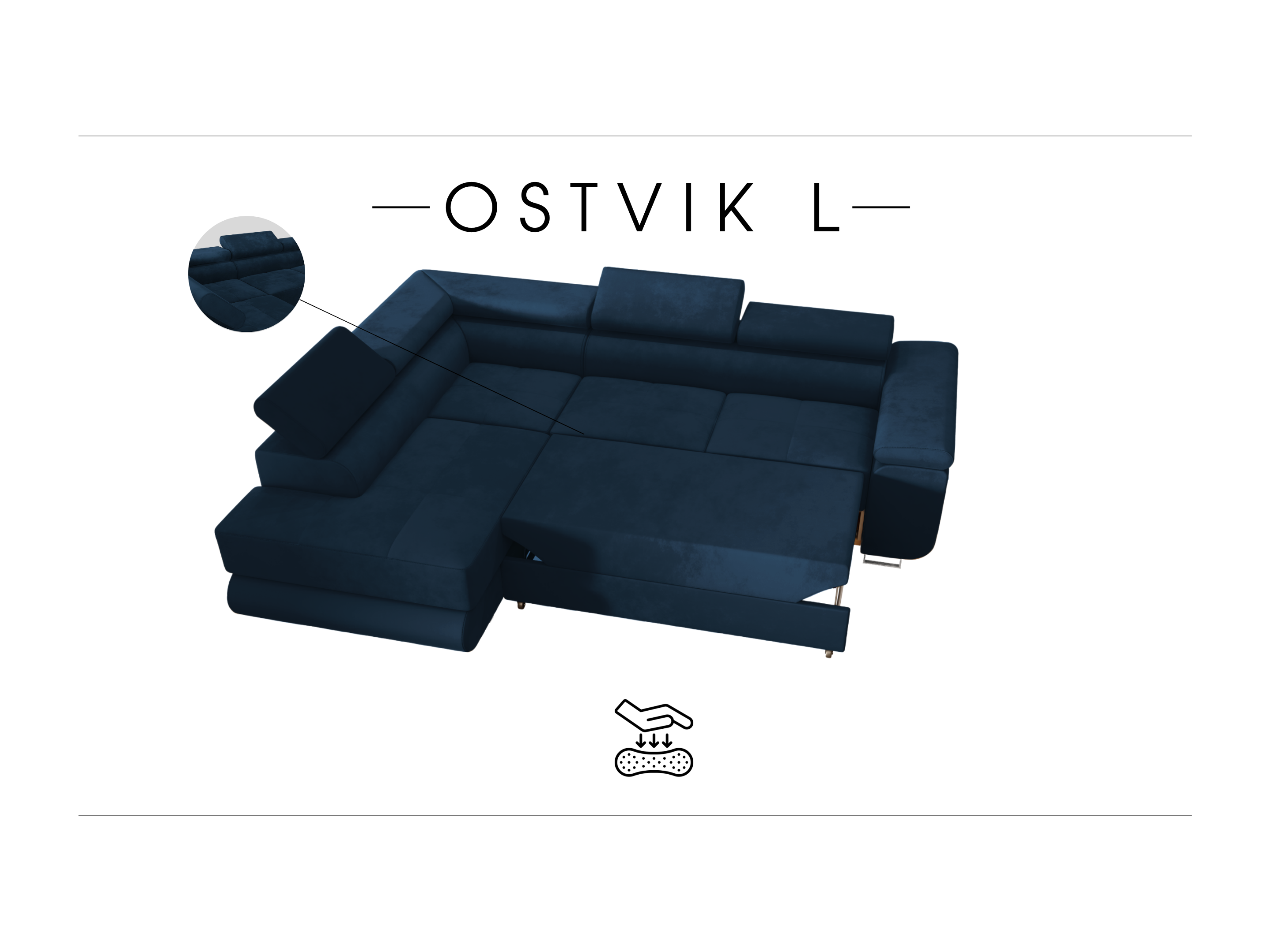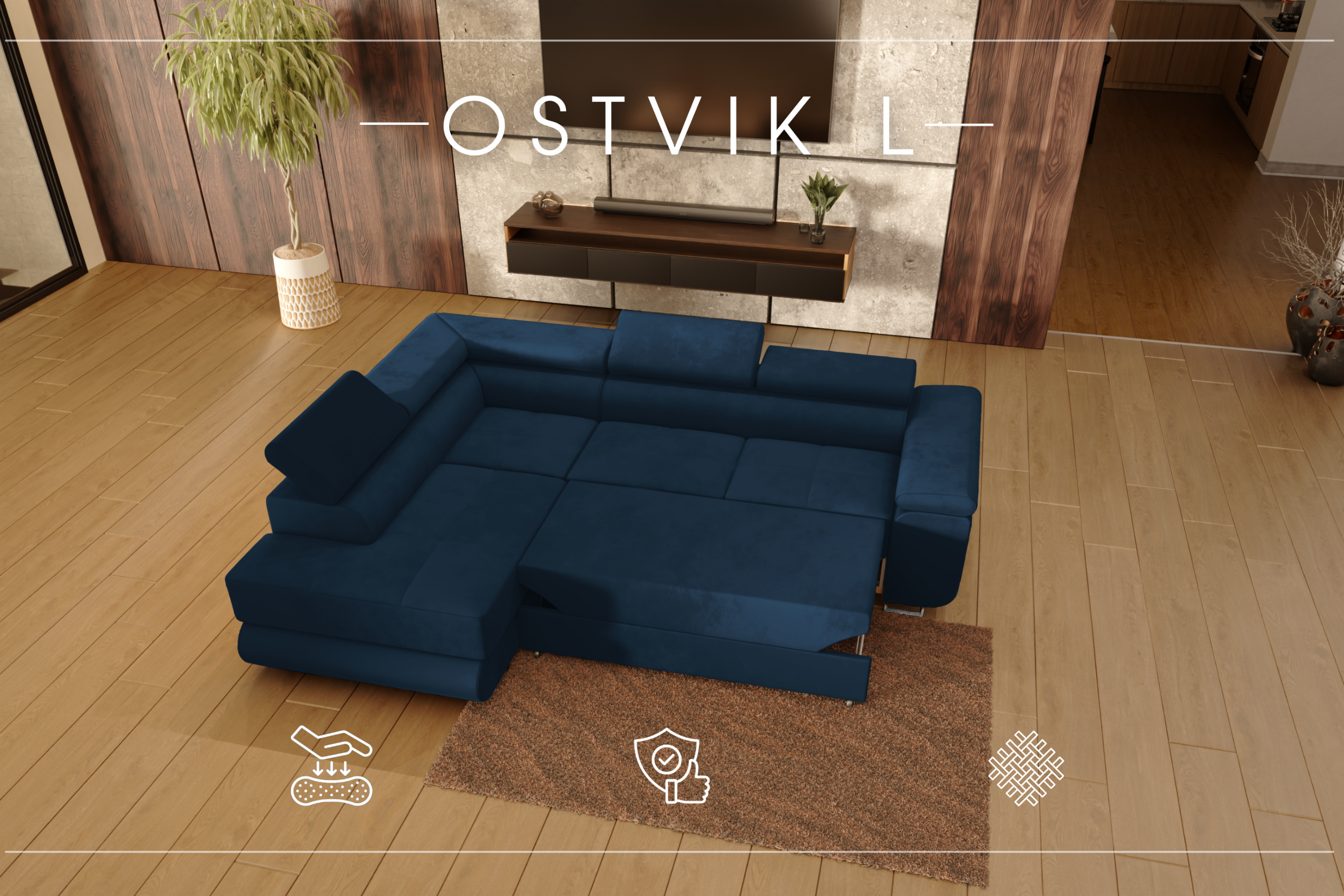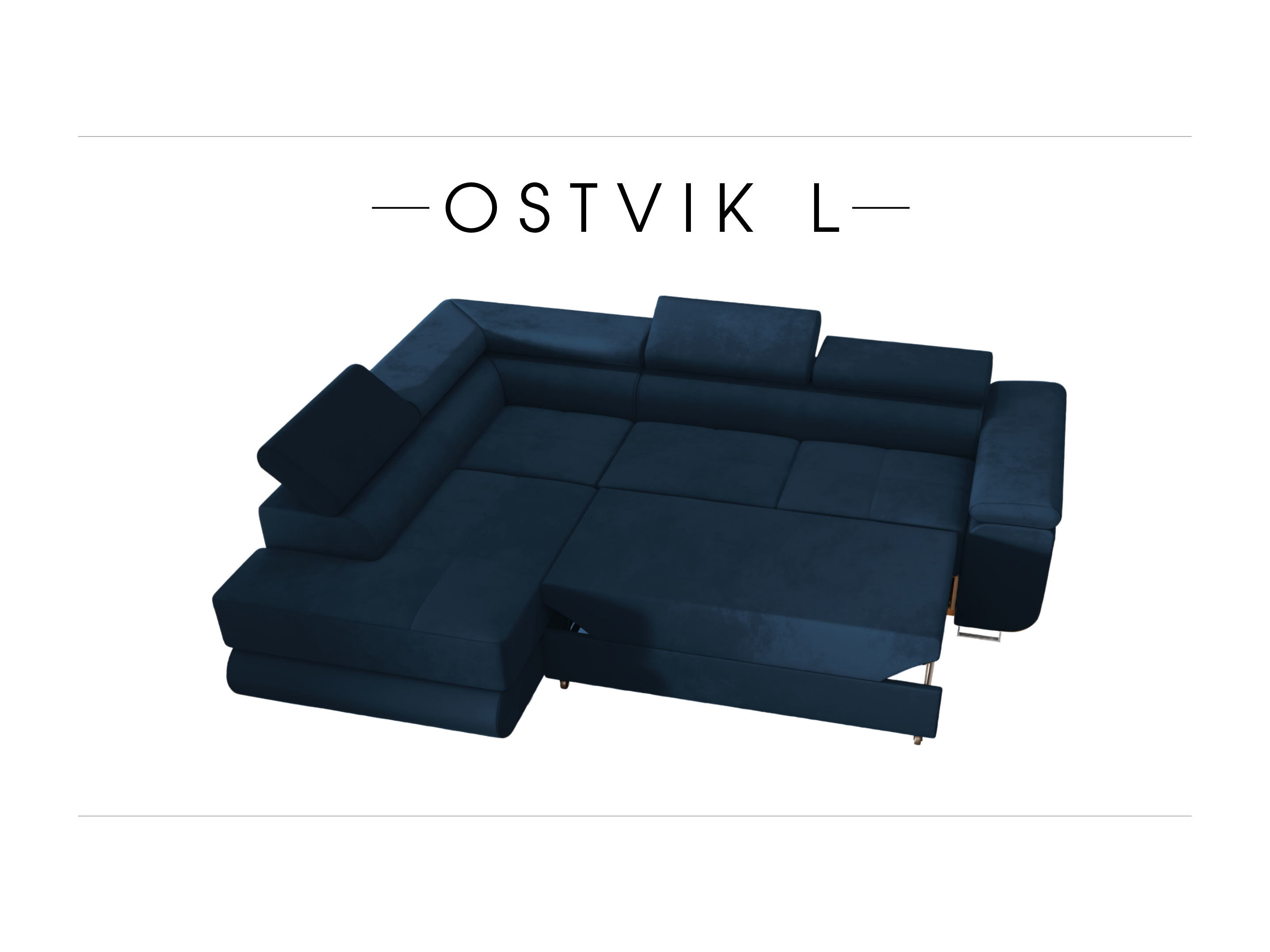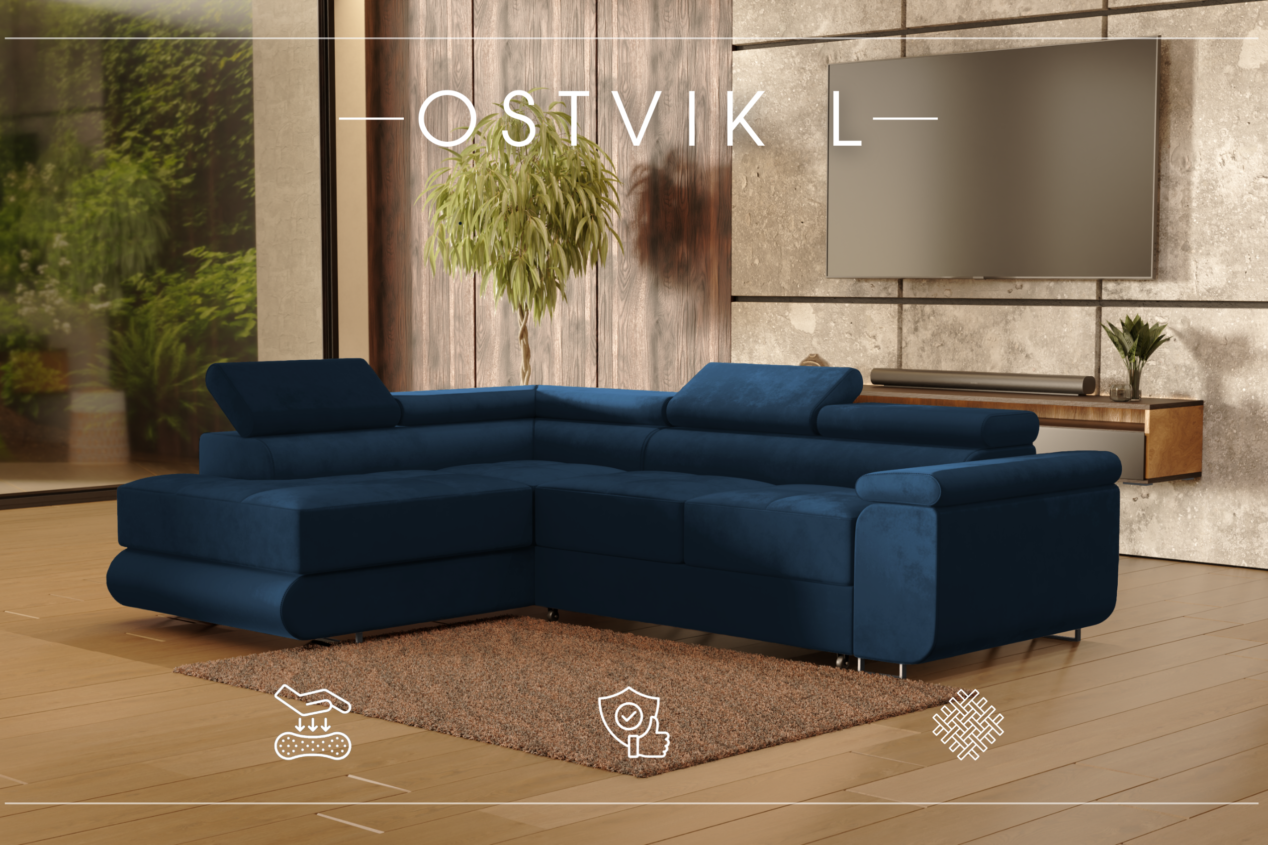 ECKSOFA Velours Ostvik L 6 Sitzer Links, Monolith 77 – Dunkelblau