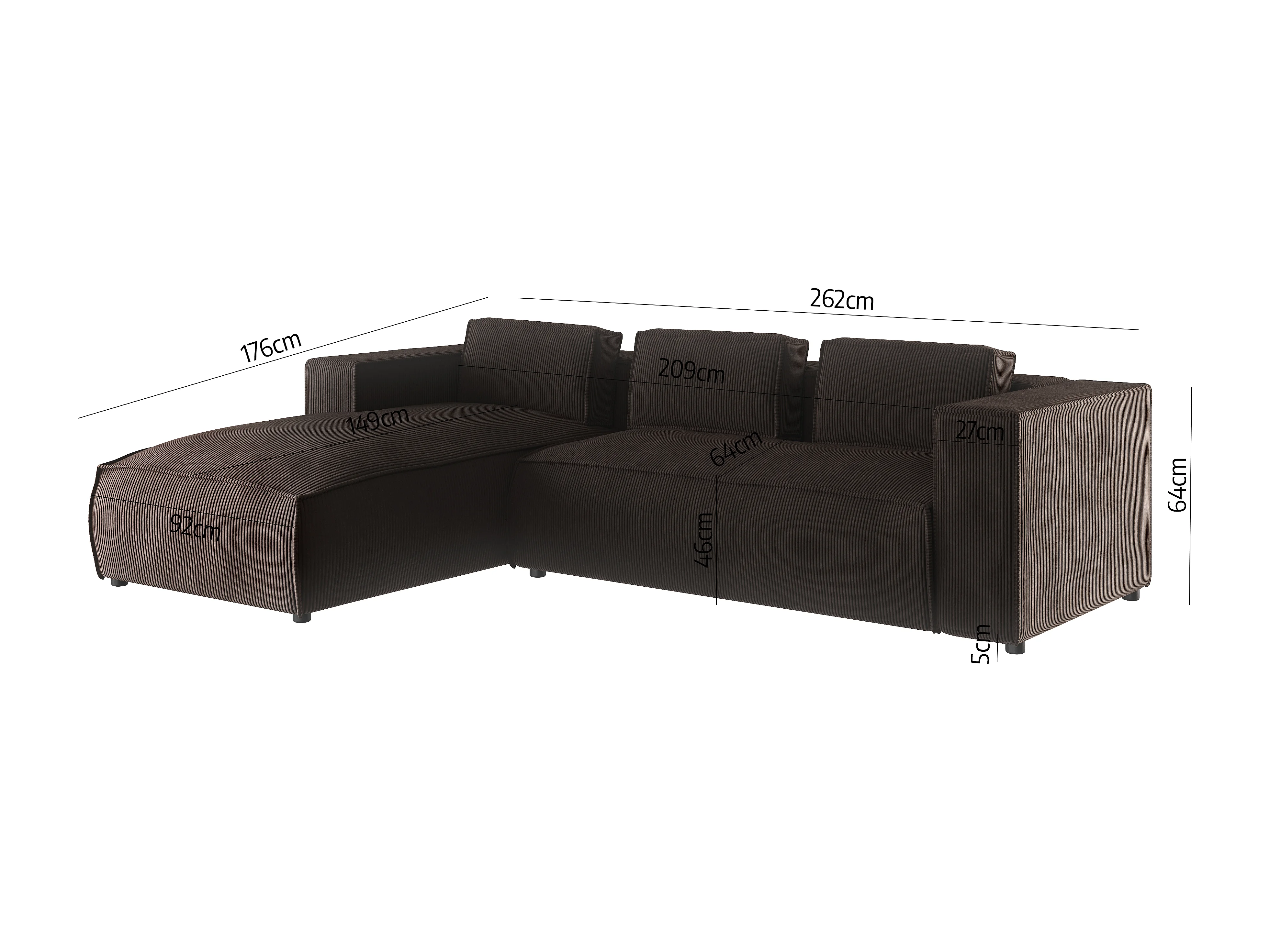 Ecksofa Vera mit Cord-Bezug und Moderne Optik