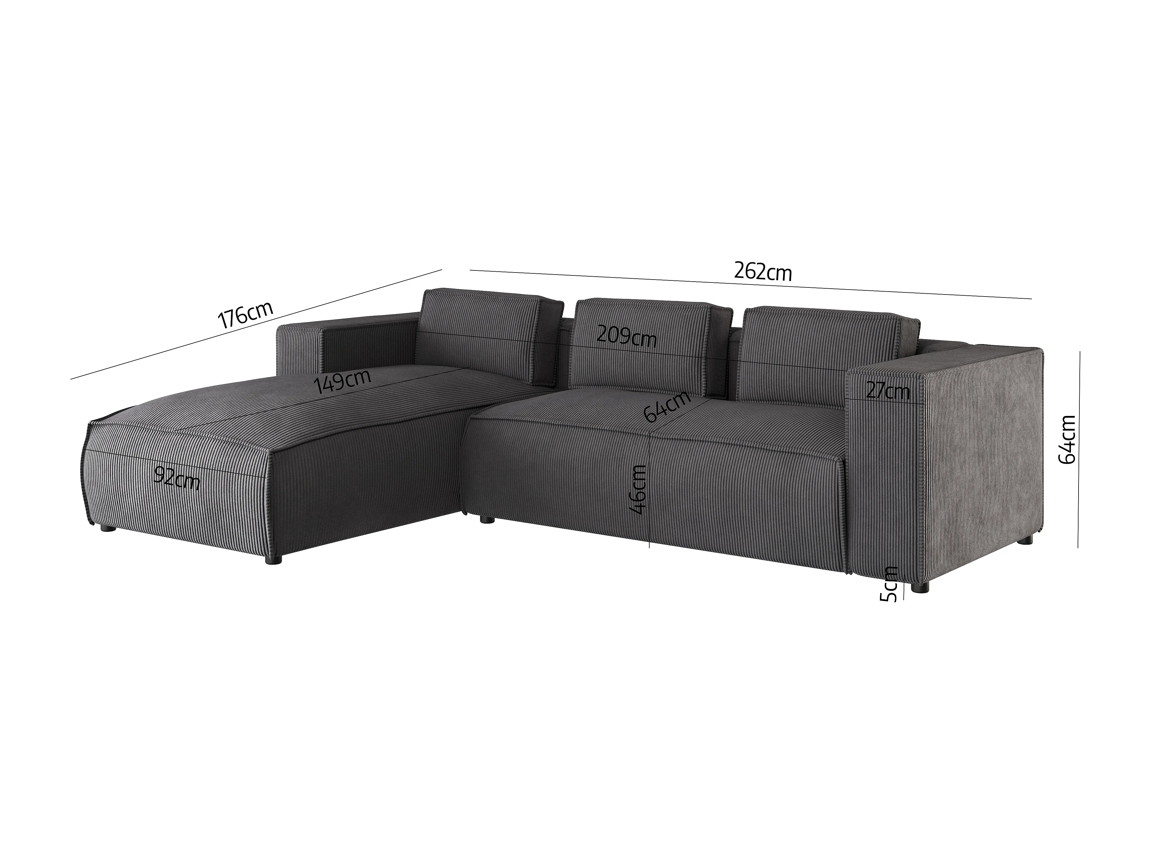 Ecksofa Vera mit Cord-Bezug und Moderne Optik
