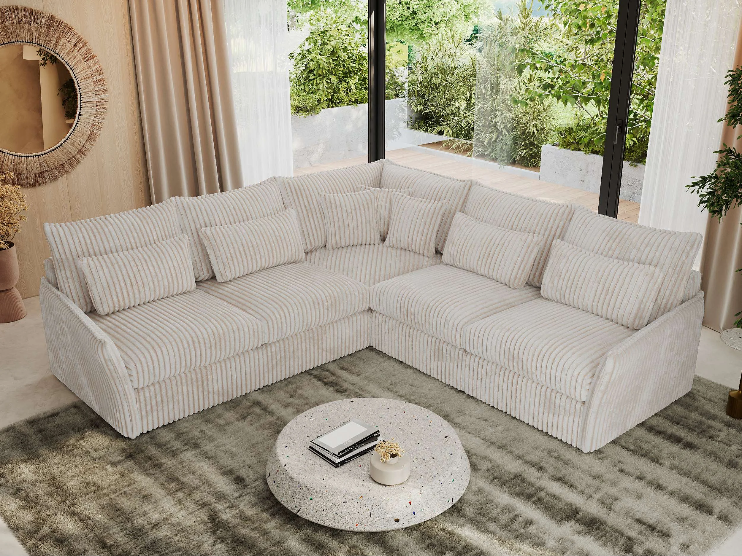 Ecksofa VERSO - modulare L-förmige Ecke, lose Kissen, Wohnlandschaft - Beige Cord