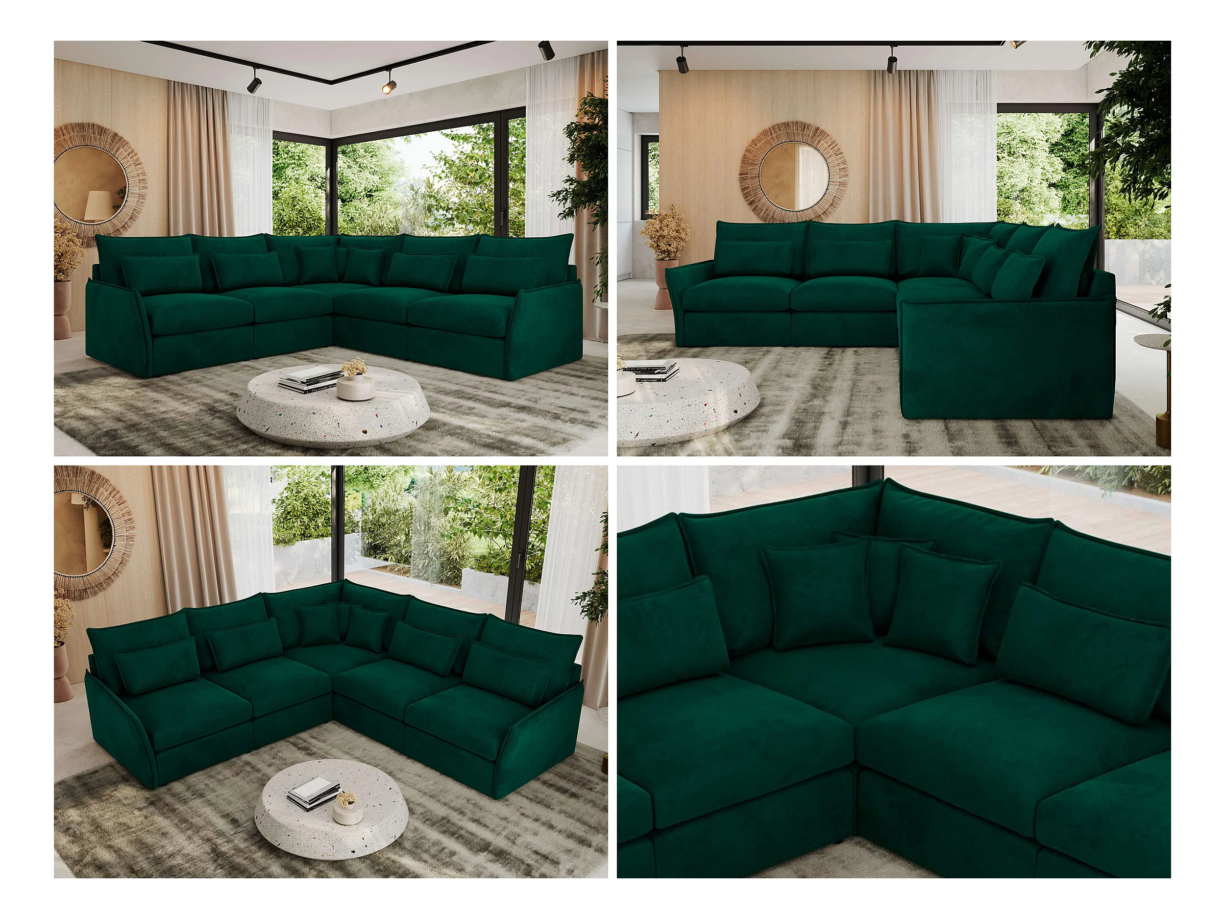 Ecksofa VERSO - modulare L-förmige Ecke, lose Kissen, Wohnlandschaft - Dunkelgrün Velvet