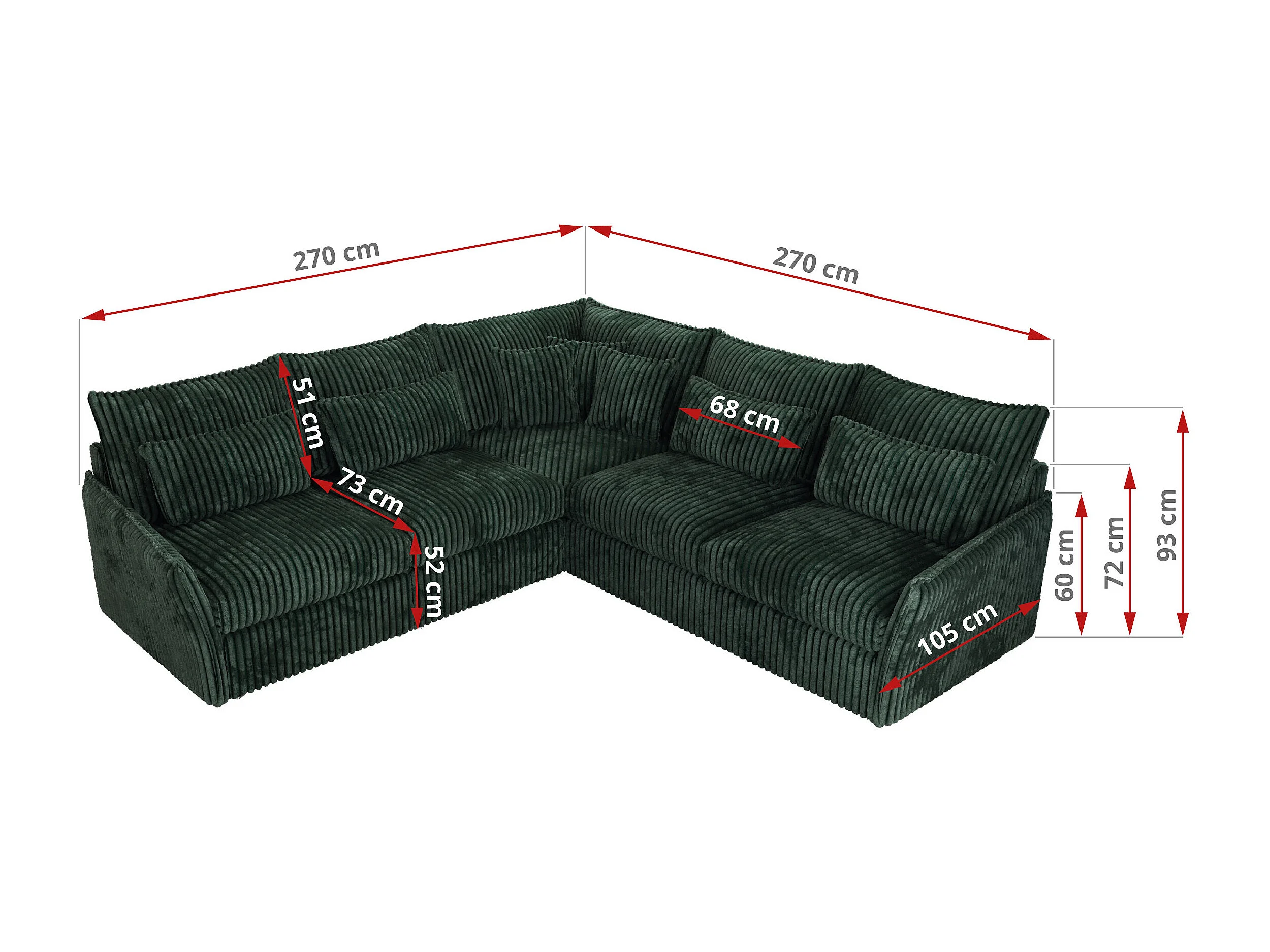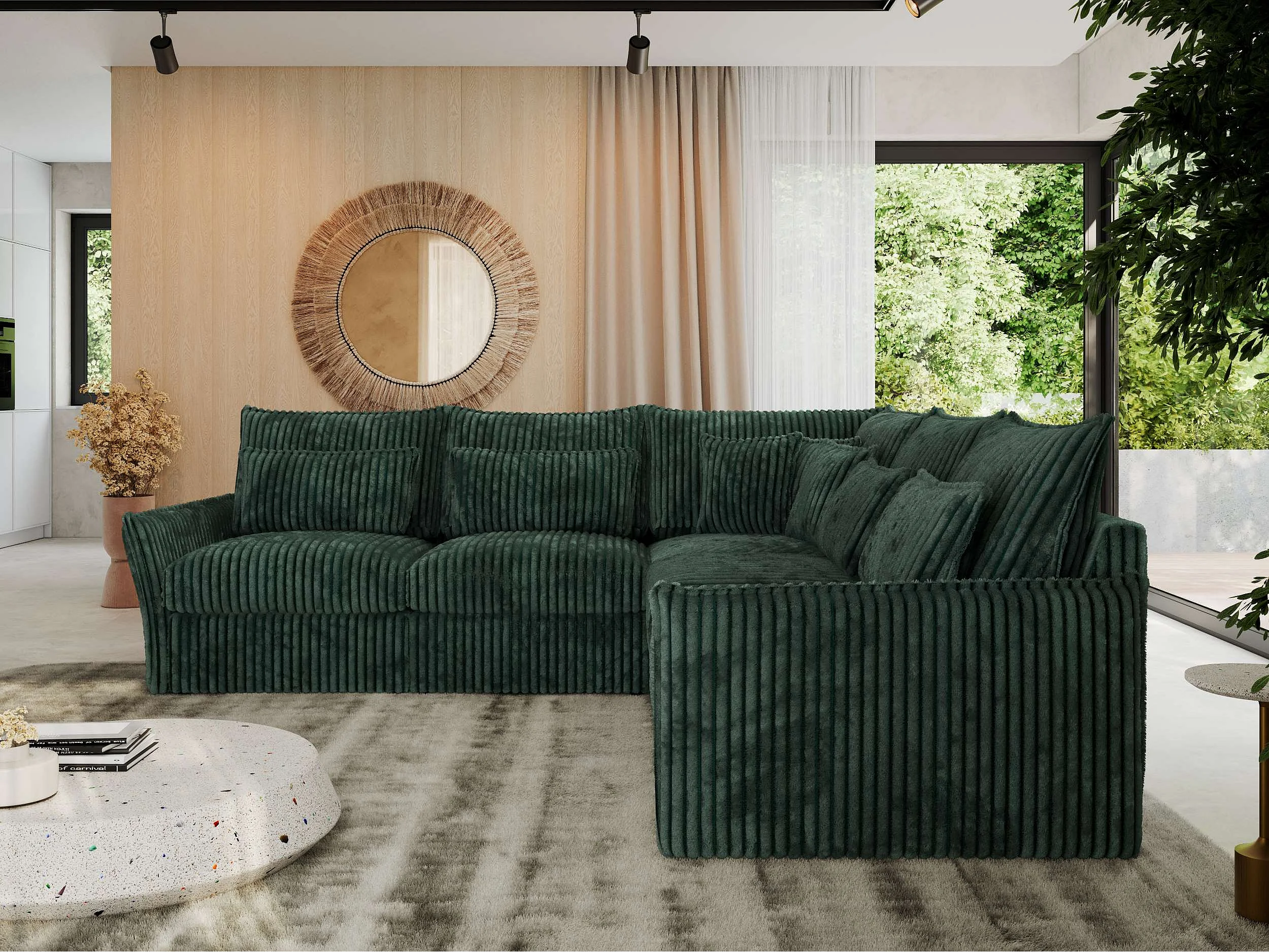 Ecksofa VERSO - modulare L-förmige Ecke, lose Kissen, Wohnlandschaft - Grün Cord