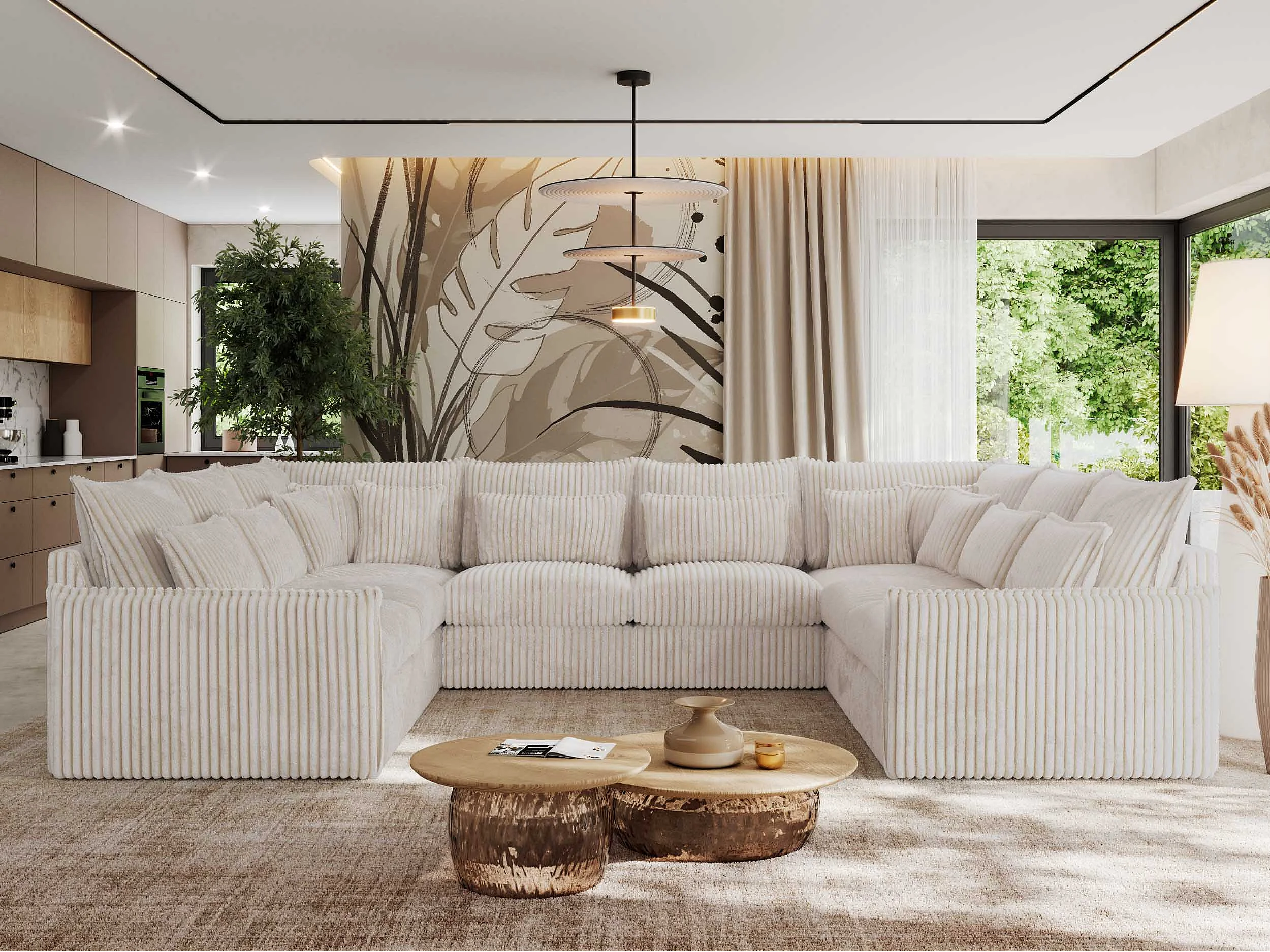 Ecksofa VERSO U8M - modulare U-förmige Ecke mit Armlehnen, Wohnlandschaft, Ecksofa XXL, lose Kissen - Beige Cord