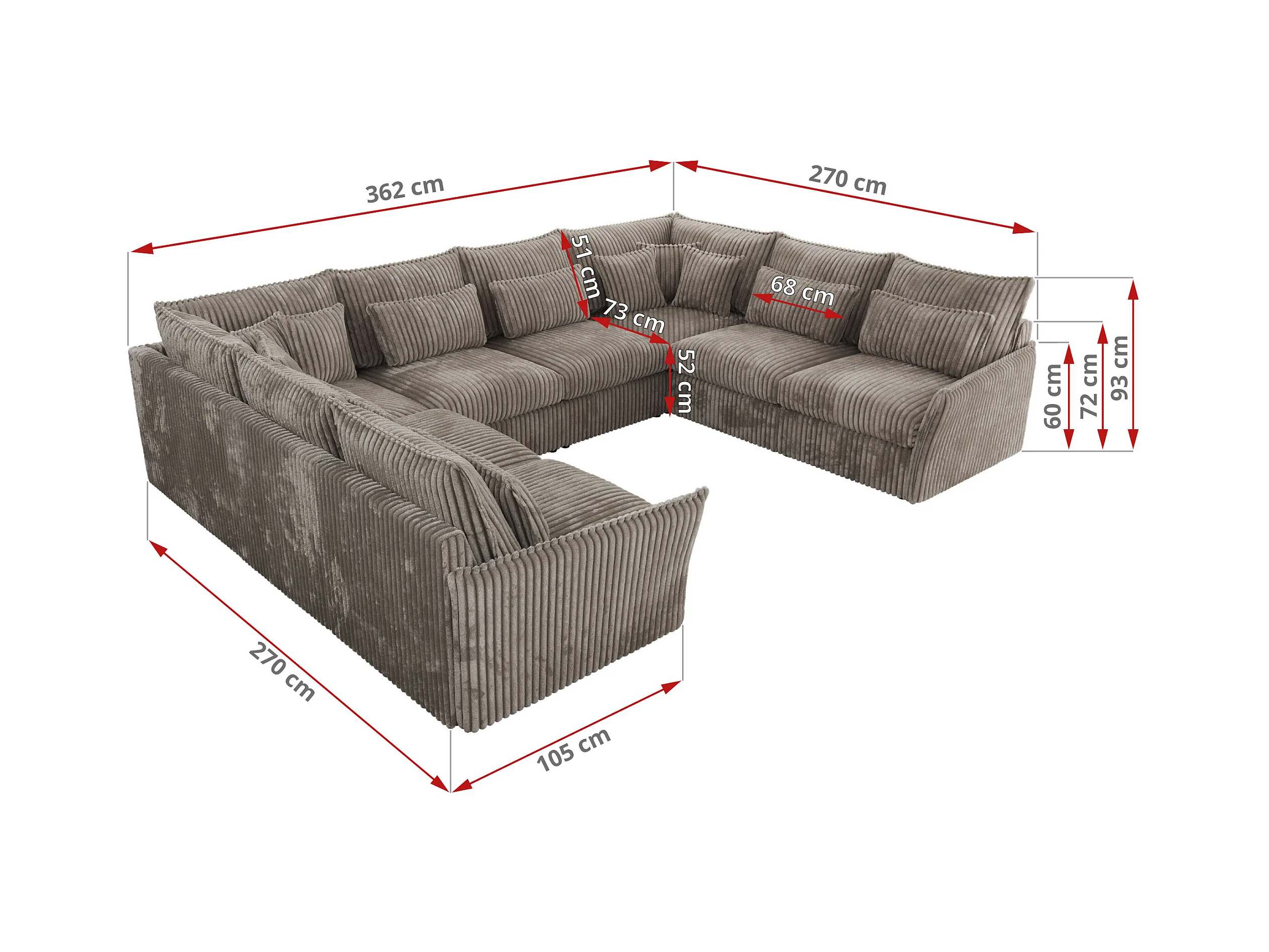 Ecksofa VERSO U8M - modulare U-förmige Ecke mit Armlehnen, Wohnlandschaft, Ecksofa XXL, lose Kissen - Hellbraun Cord