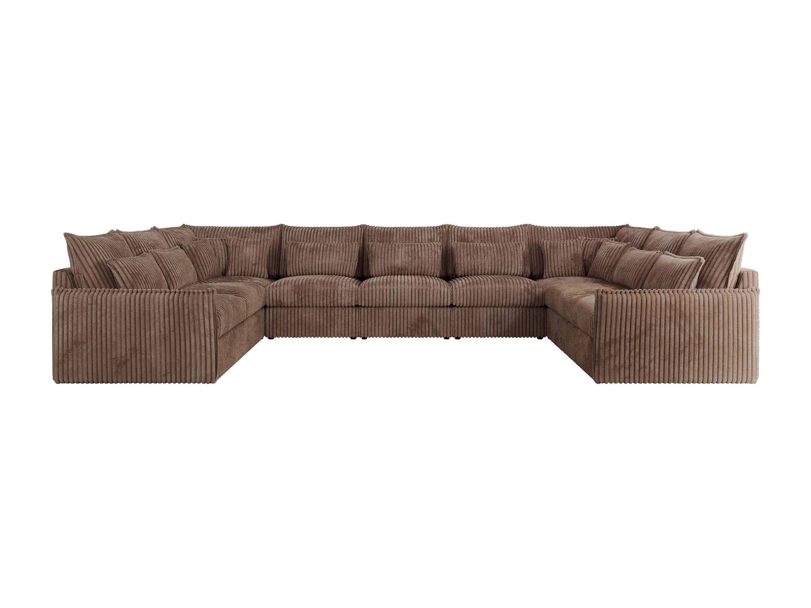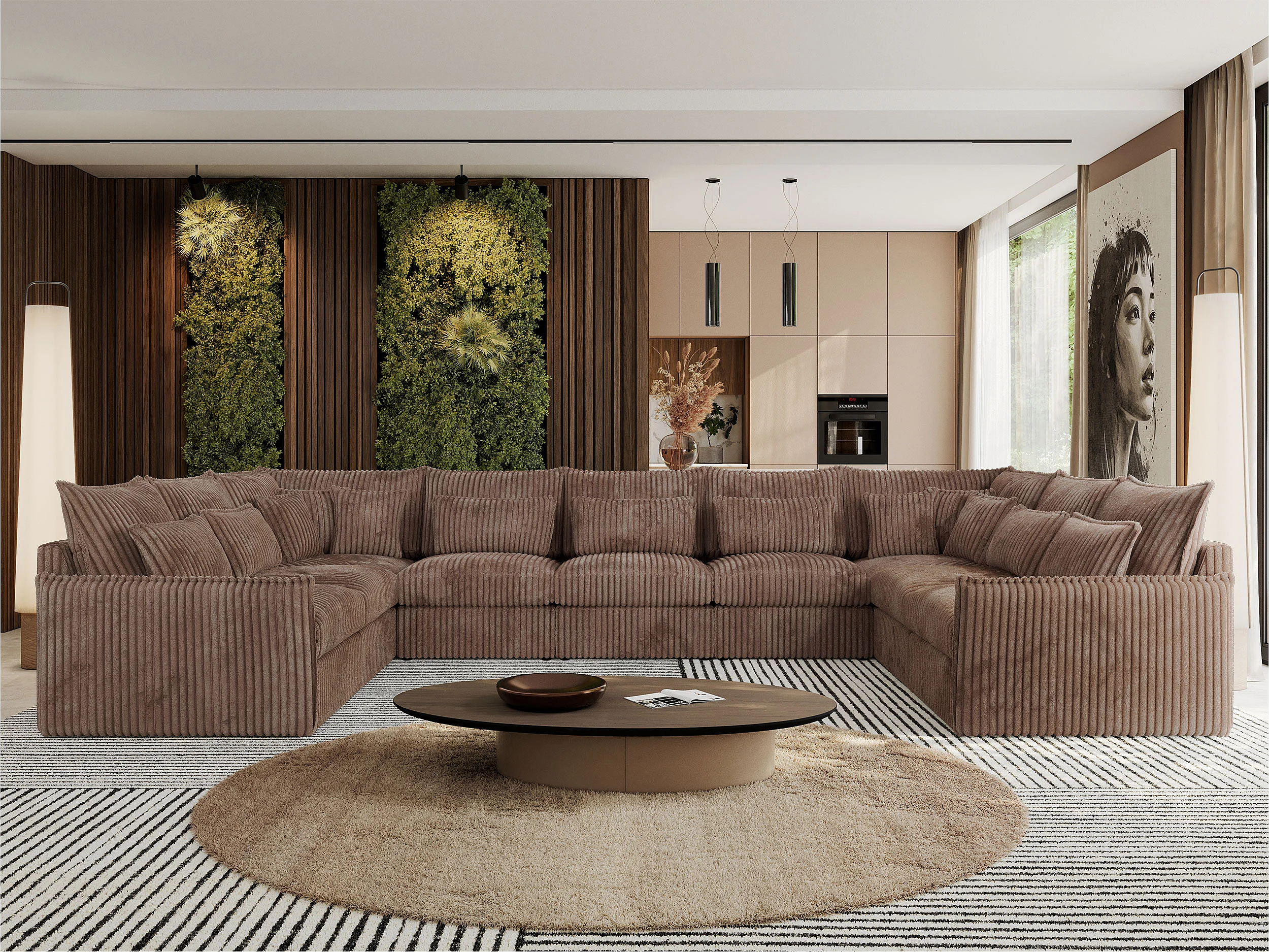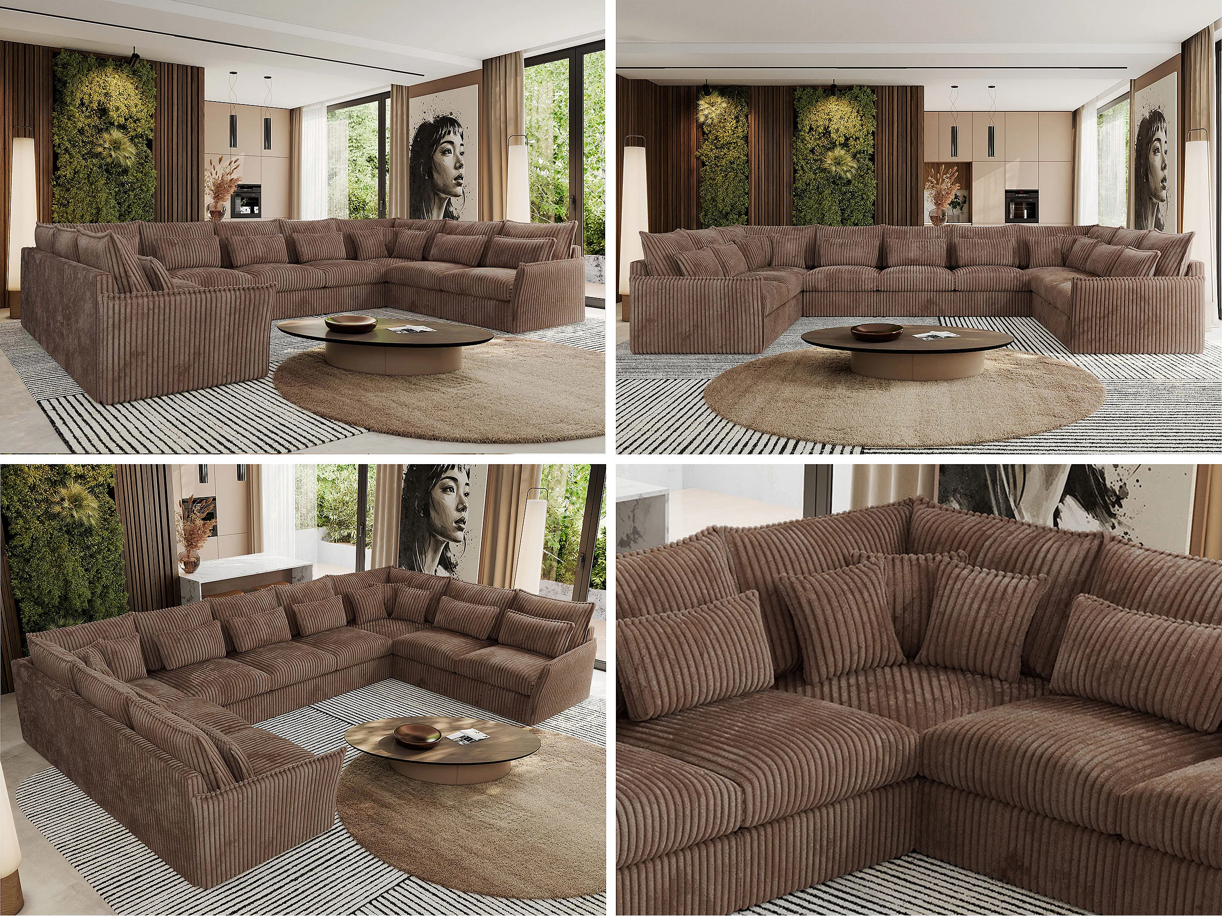 Ecksofa VERSO U9M - XXL Wohnlandschaft Ecke, modulare, Armlehnen und lose Kissen - Braun Cord