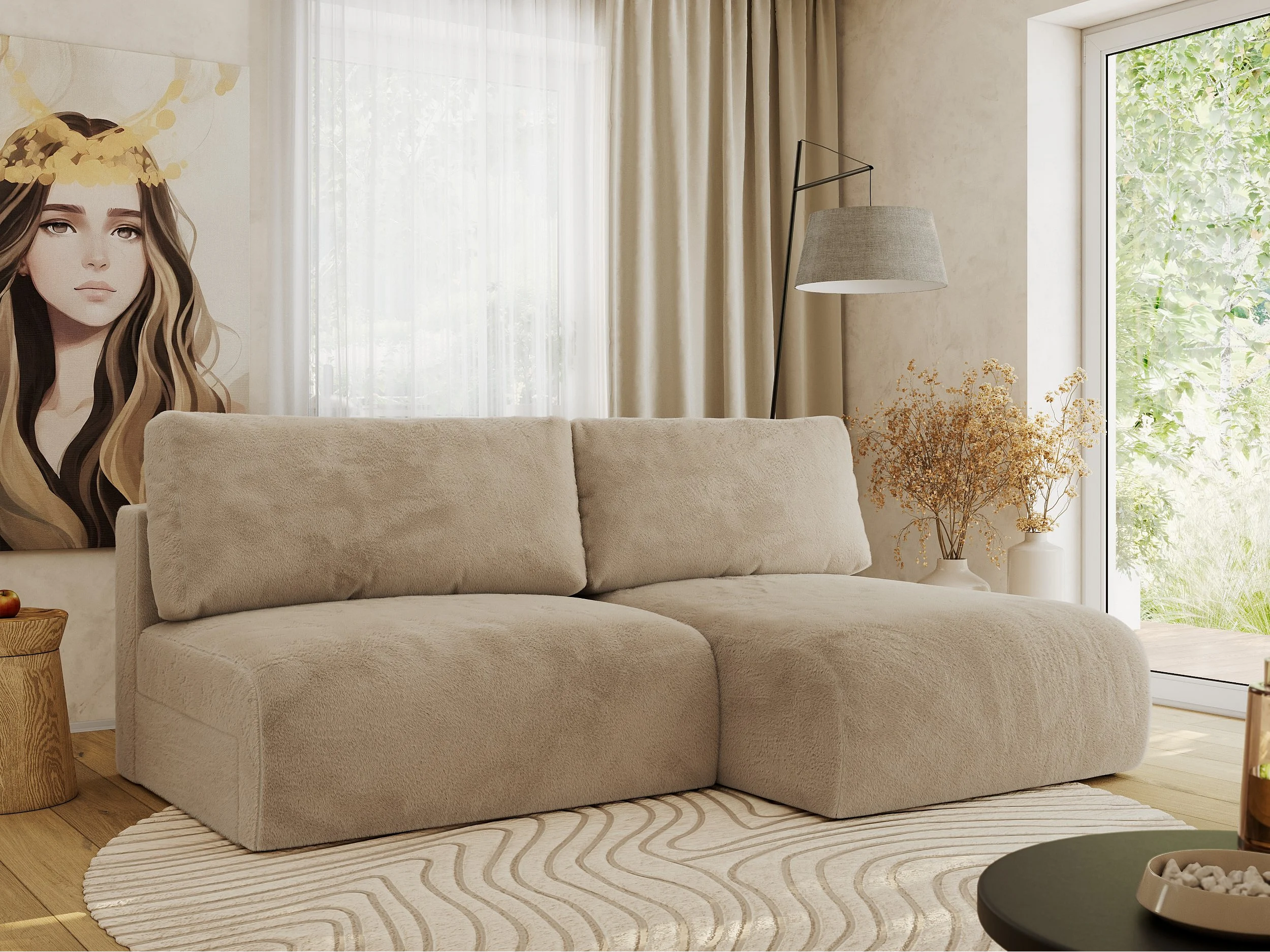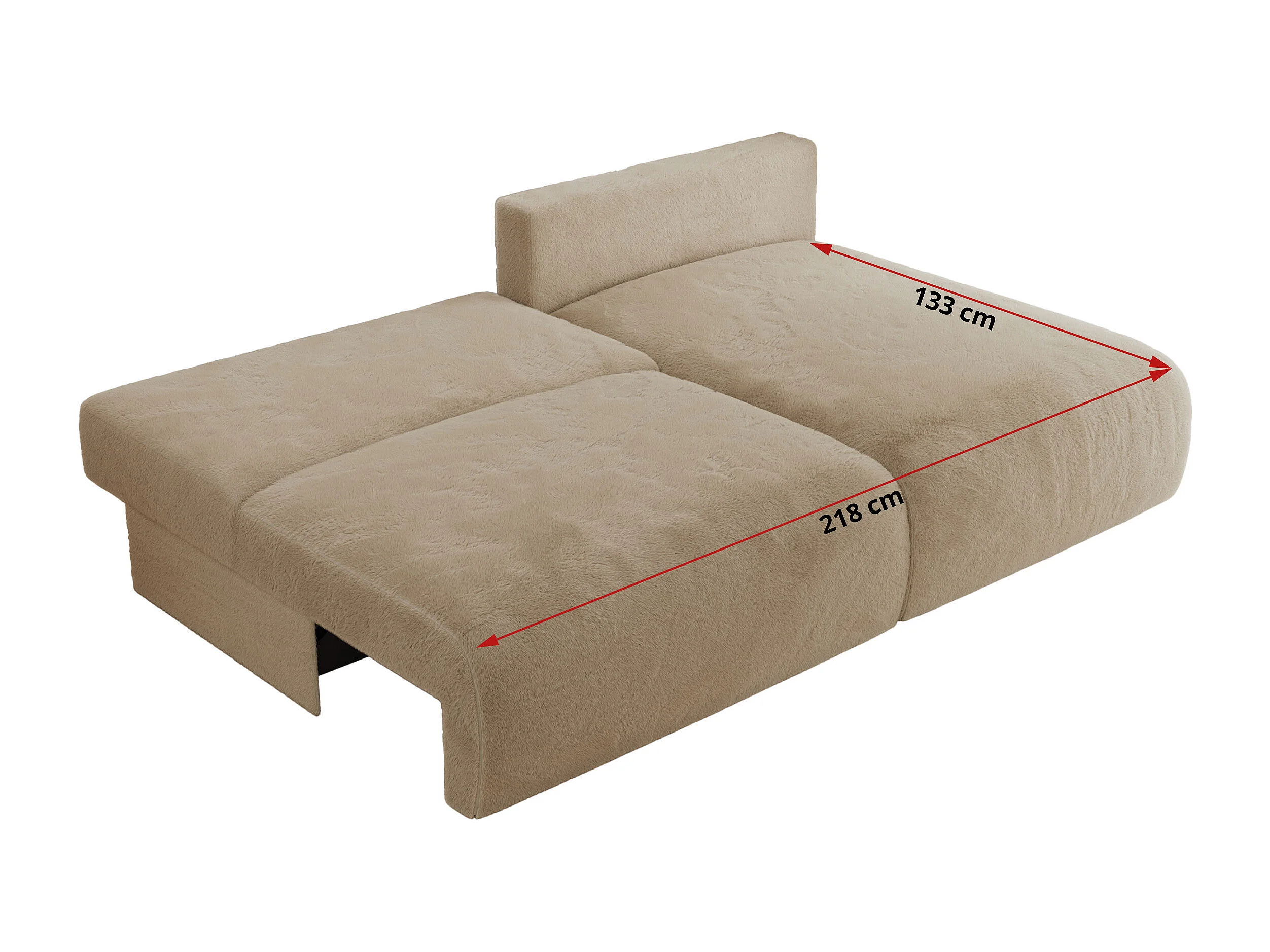 Ecksofa VIVO - L-form Couch mit Schlaffunktion und Bettkasten, Wellenfeder - Beige Plüsch - Ecke Rechts