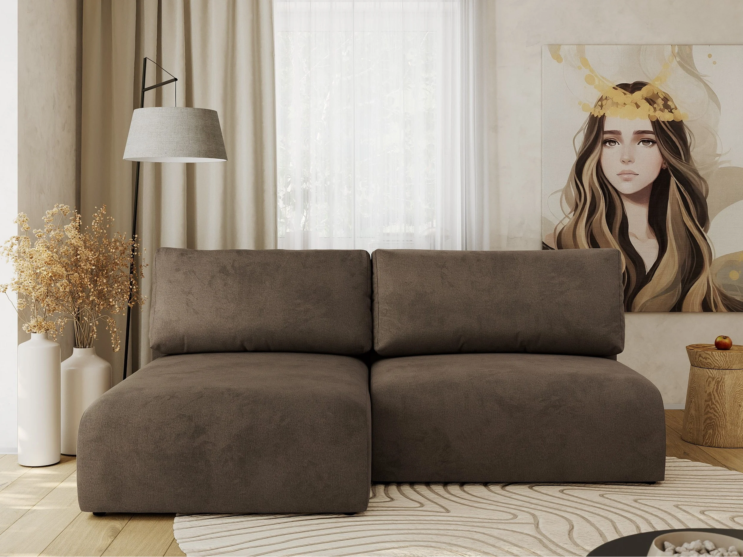 Ecksofa VIVO - L-form Couch mit Schlaffunktion und Bettkasten, Wellenfeder - Braun Velvet - Ecke Links