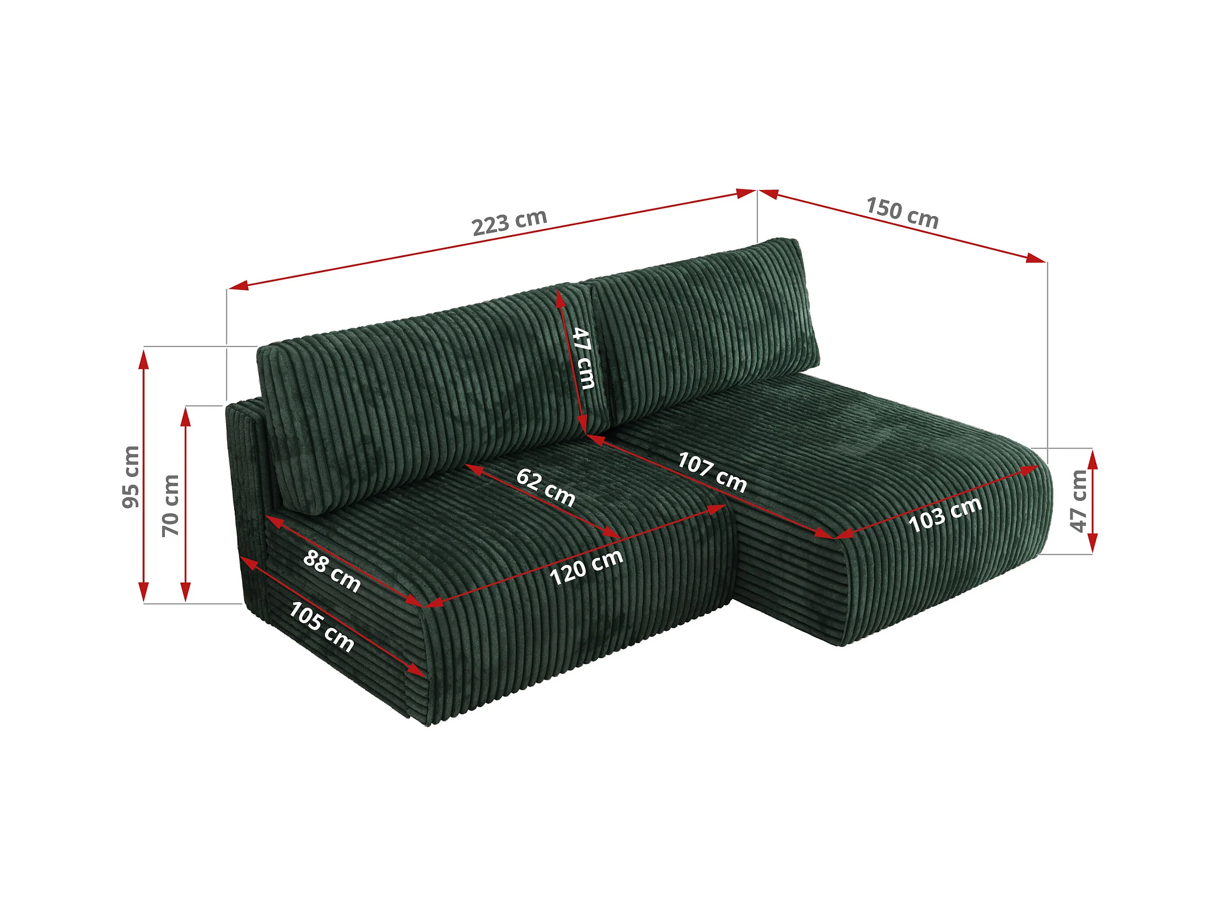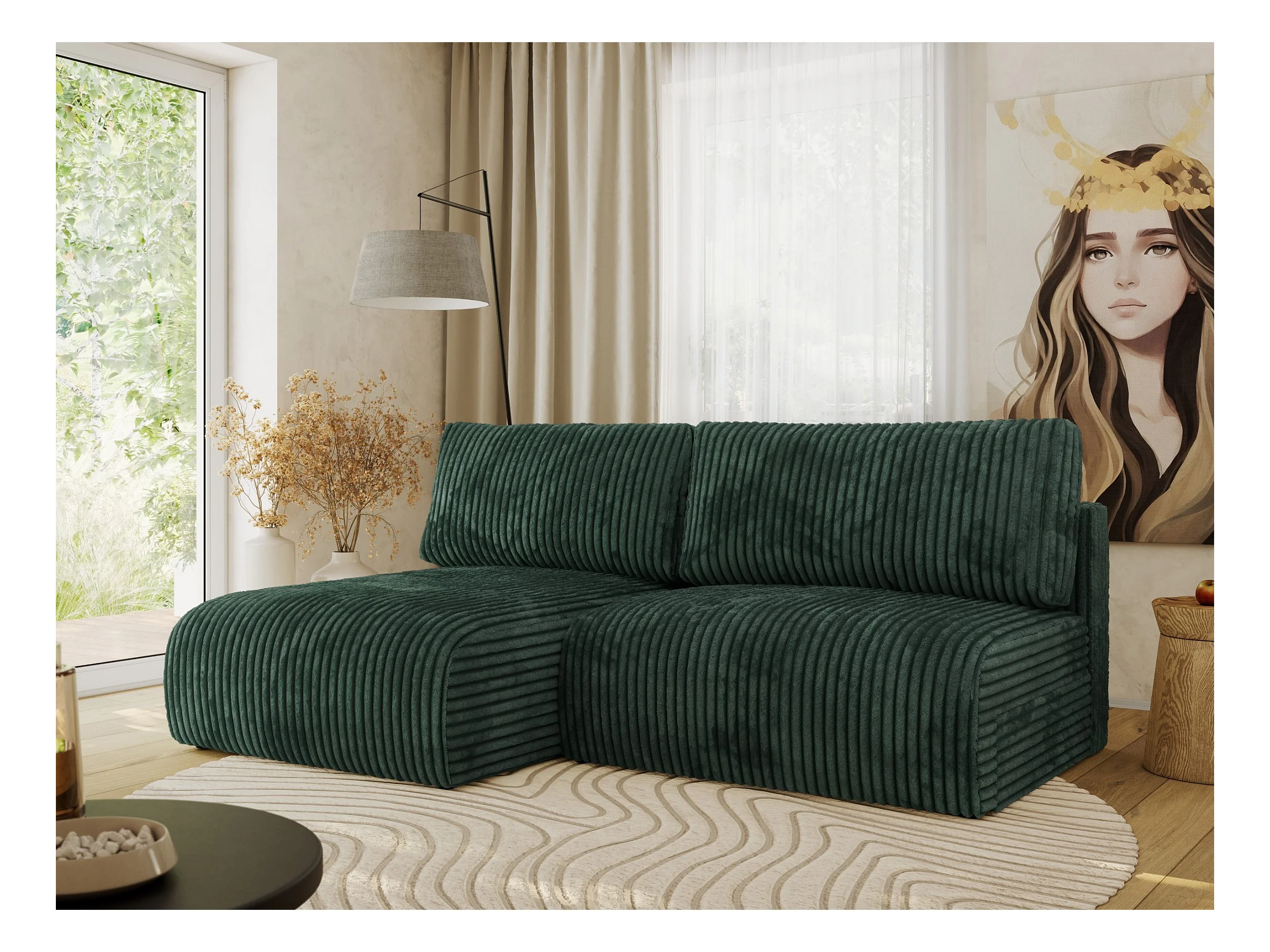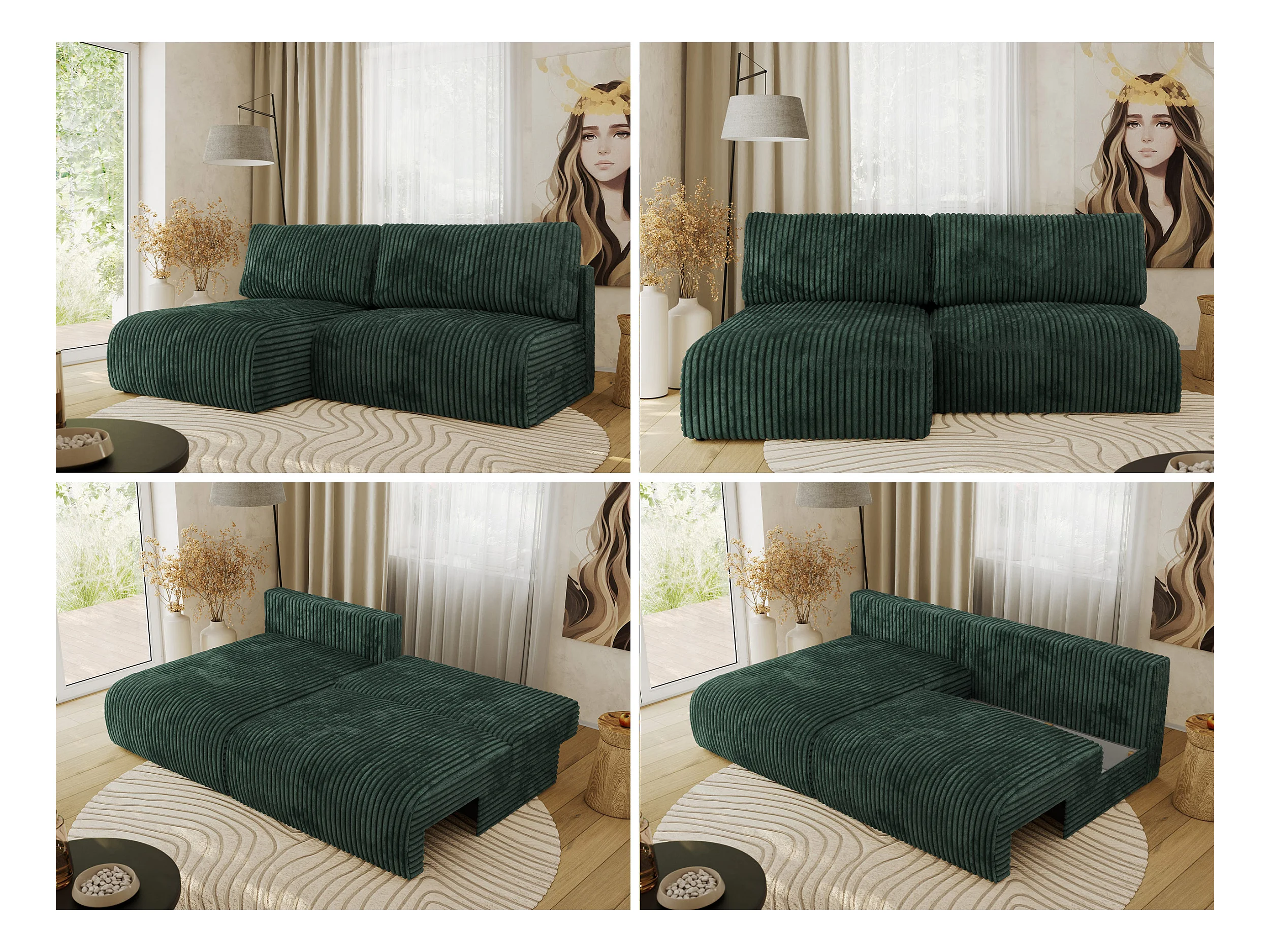 Ecksofa VIVO - L-form Couch mit Schlaffunktion und Bettkasten, Wellenfeder - Grün Cord - Ecke Links