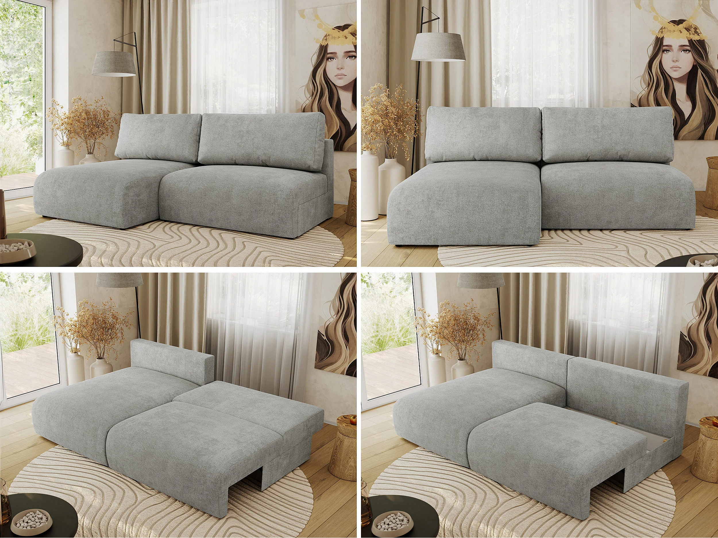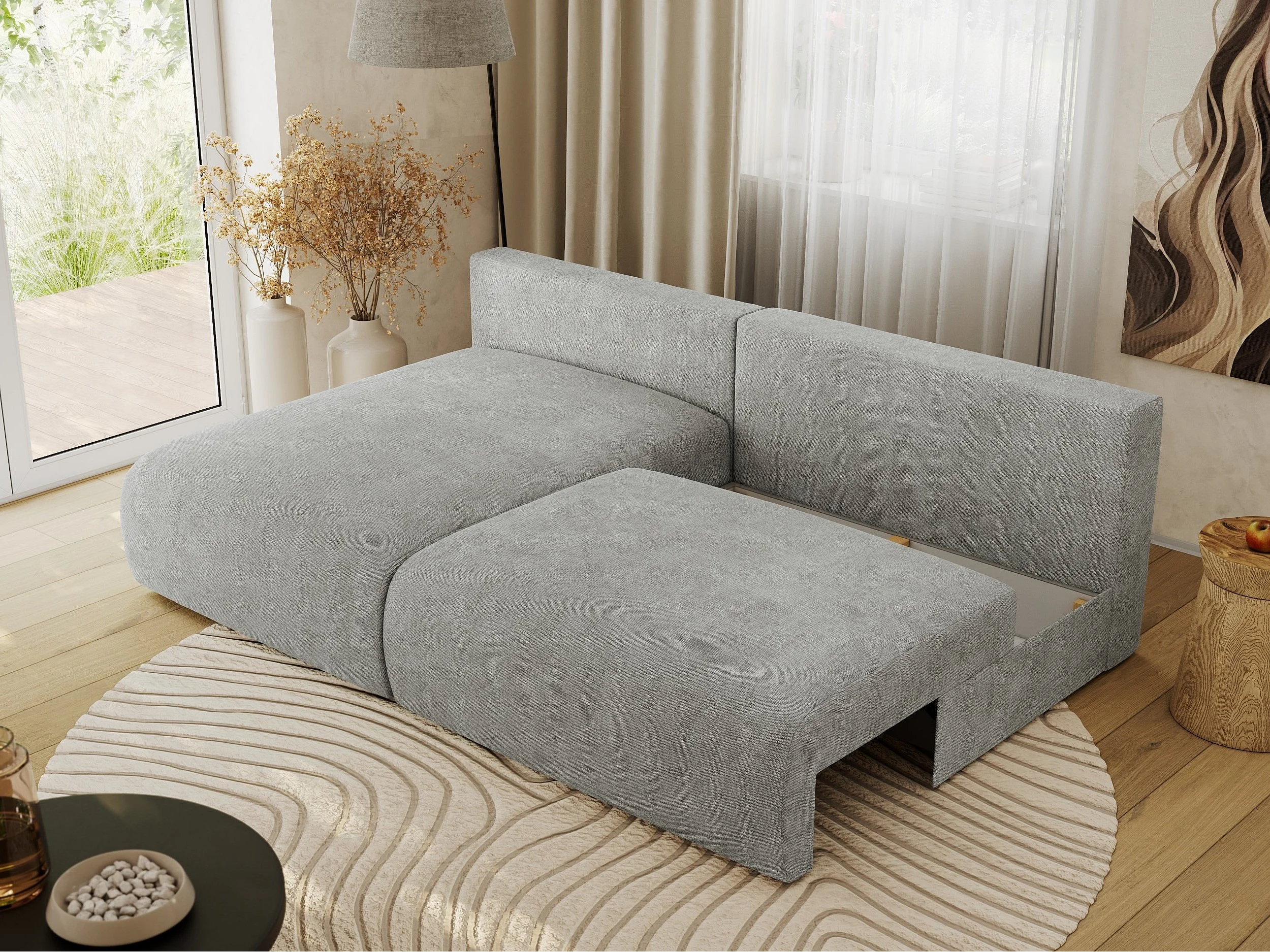 Ecksofa VIVO - L-form Couch mit Schlaffunktion und Bettkasten, Wellenfeder - Hellgrau Struktur - Ecke Links