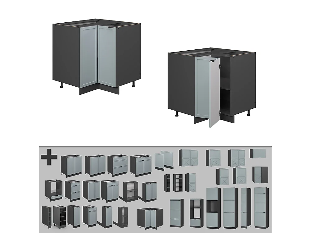 Eckunterschrank hellblau-grau 80.5x51.6x82 fame-line