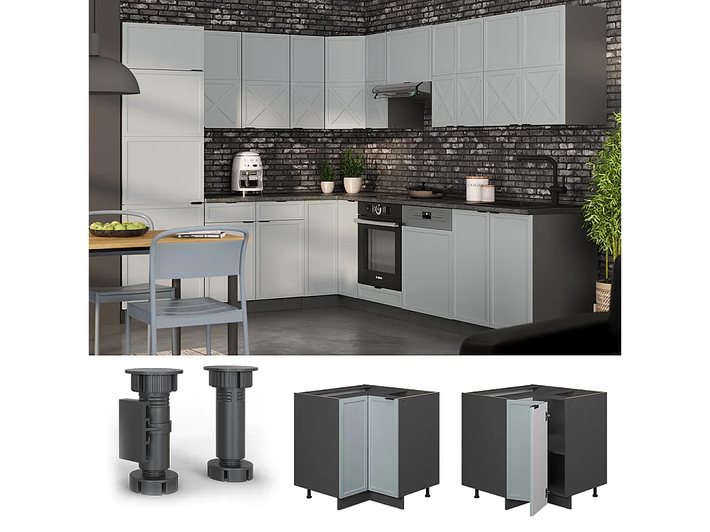 Eckunterschrank hellblau-grau 80.5x60x82 fame-line