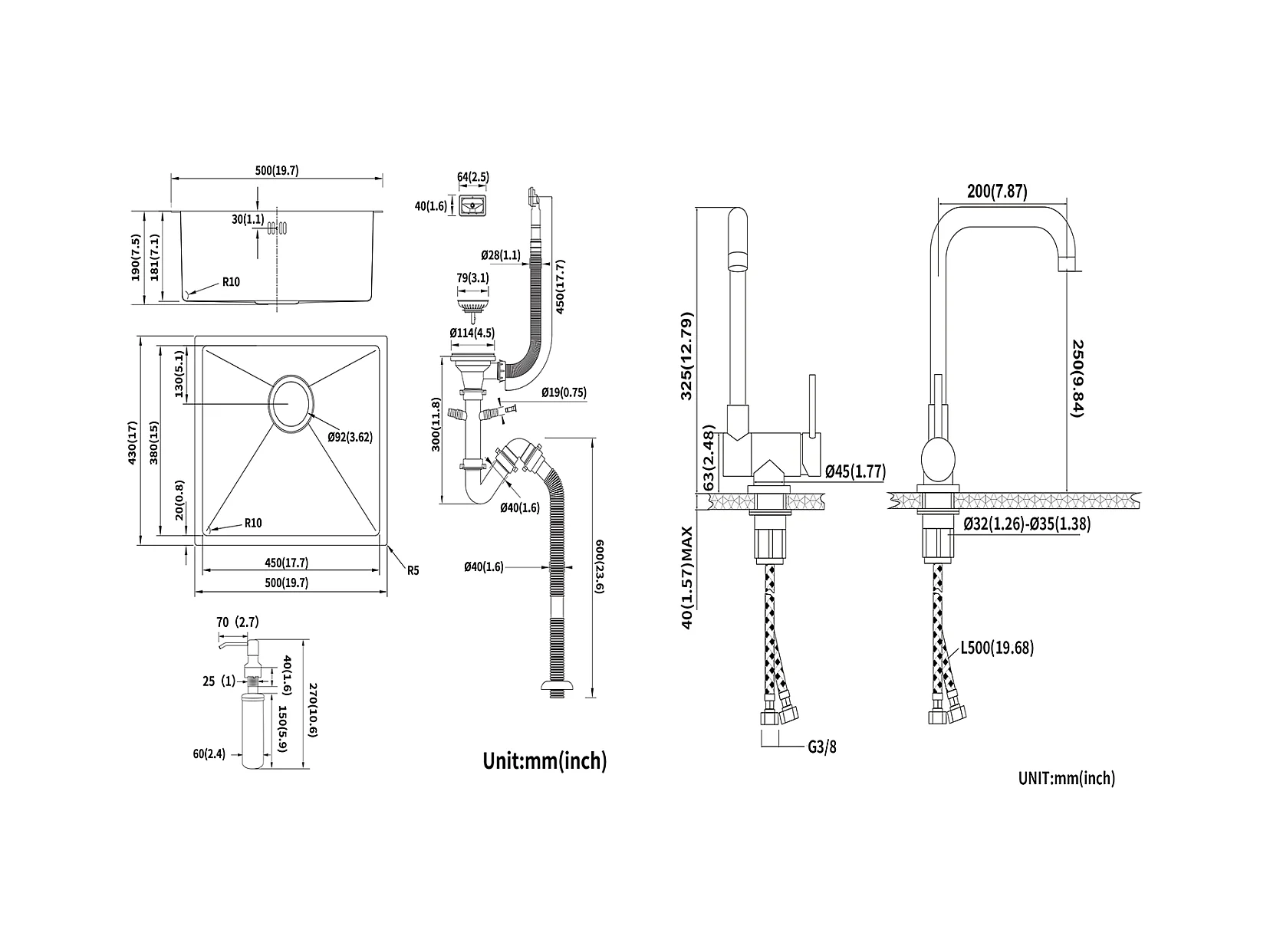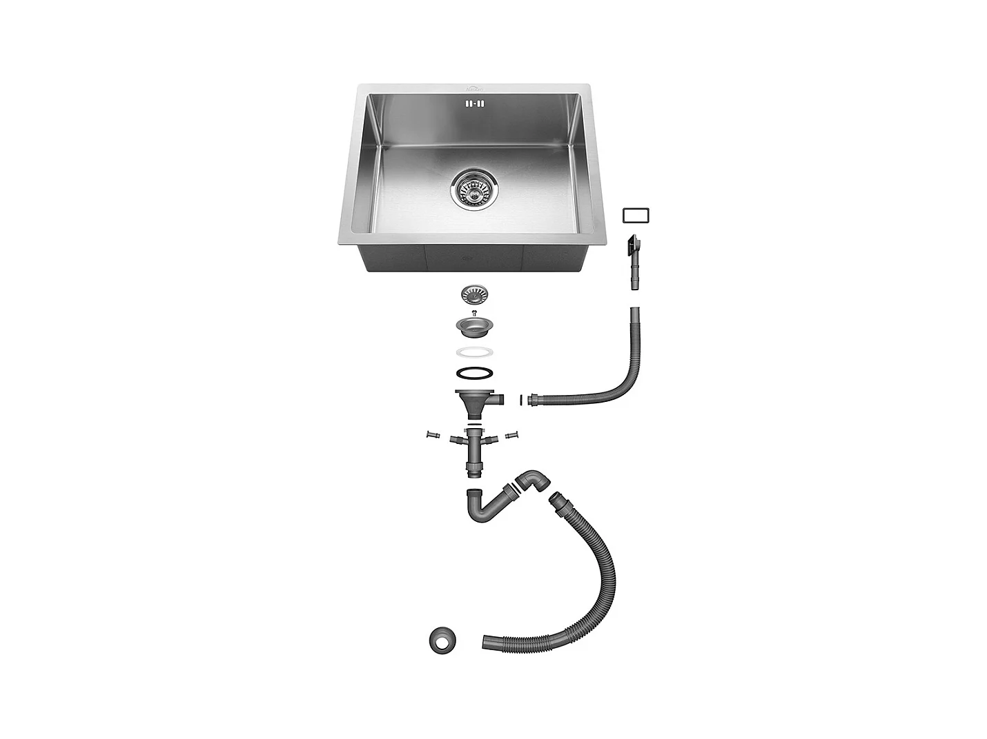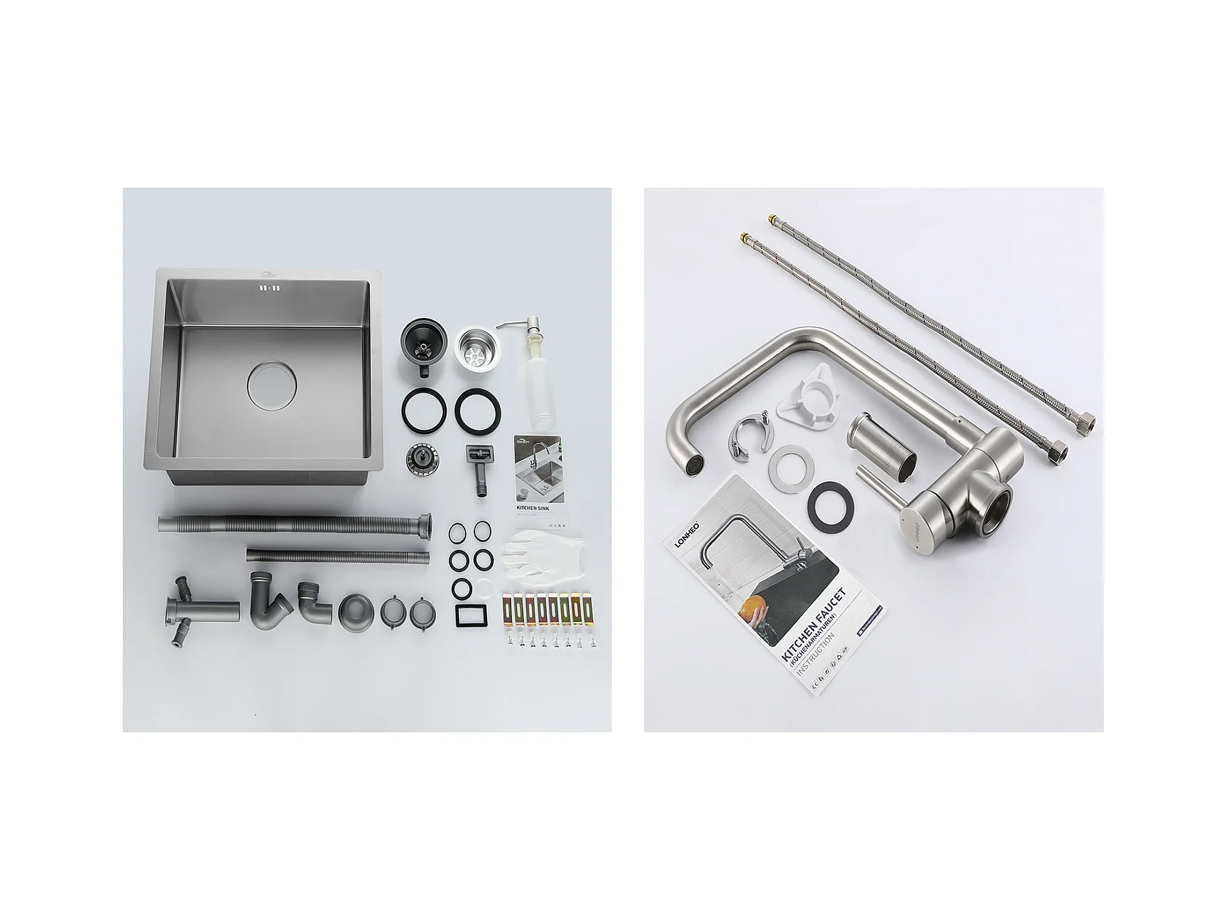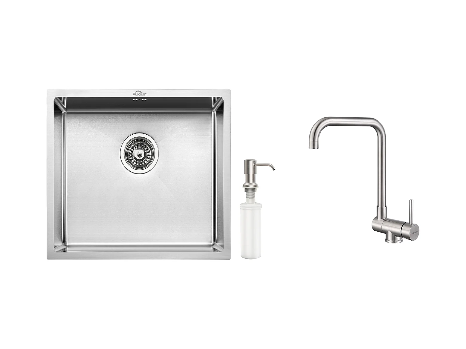 Edelstahl Küchenspüle 1 Becken 50*43*18CM mit Seifenspender + 360° schwenkbarer Klapp-Küchenmischer Kalt-Warmwasser