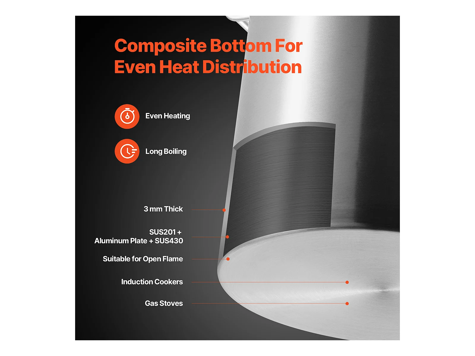 Edelstahlkochtopf SucceBuy, 50,1 l, mit Deckel und Griff