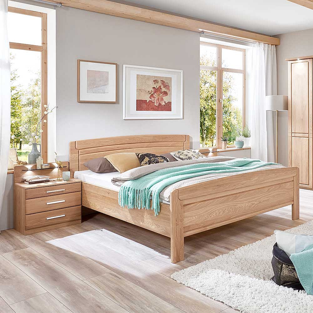 Ehebett aus Eiche teilmassiv Nachtkonsolen (dreiteilig)
